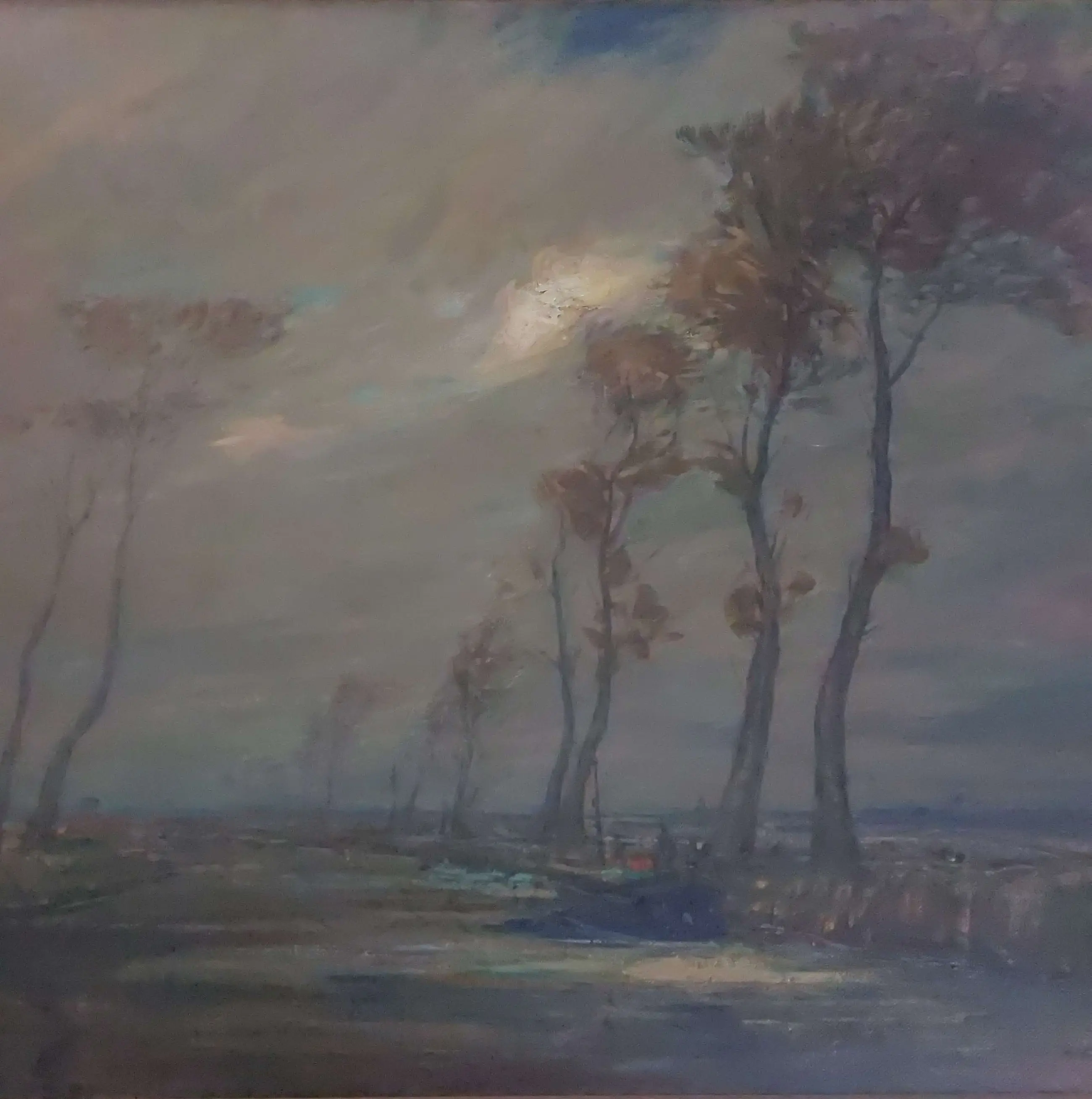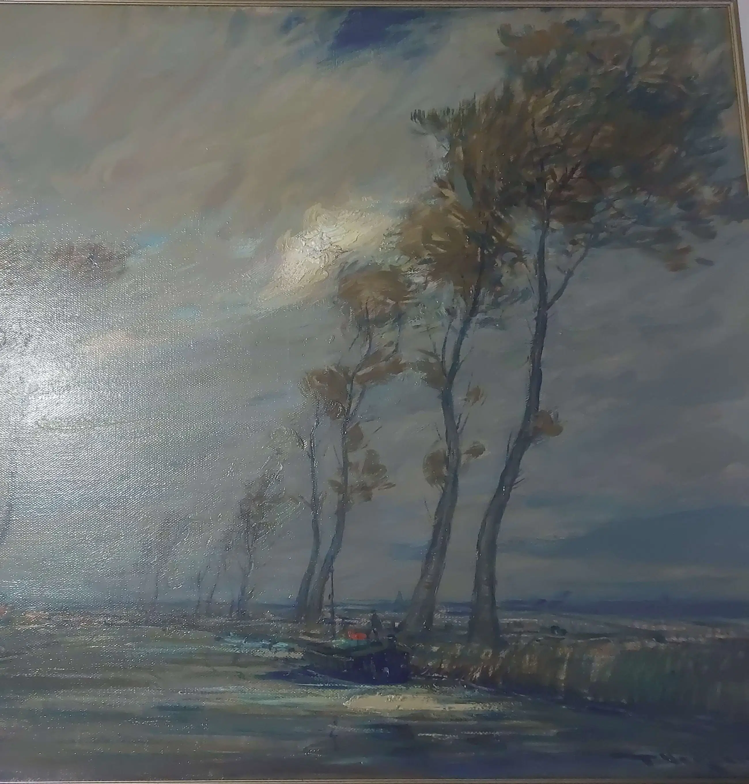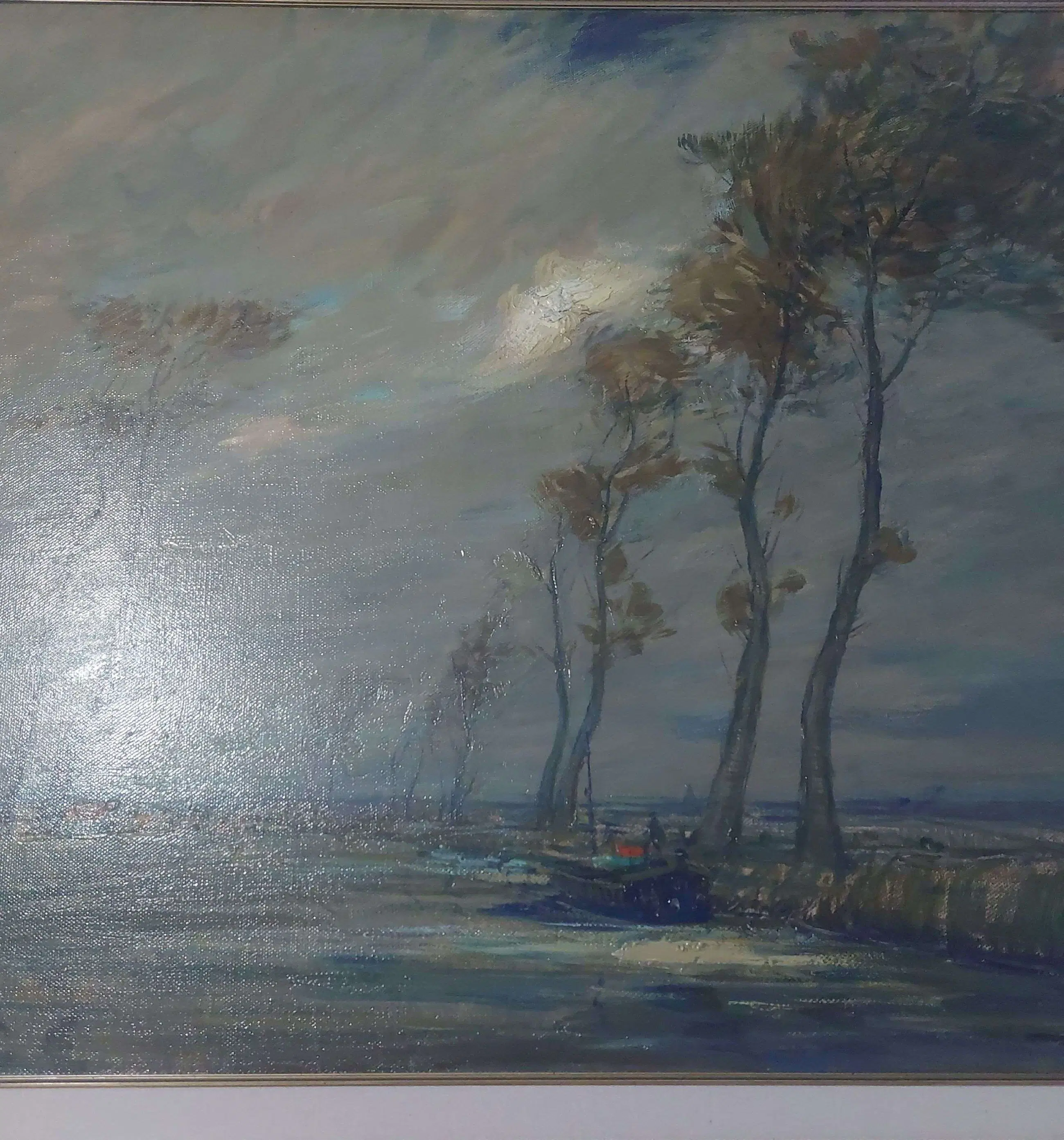 Pierre verbeke een schilder die vooral met zijn vissertaferelen bekendheid heeft verworven in de Belgische kunstwerken hij was van Oostende hij stond bekend om zijn visserkoppen en landschappen in modern. Figuratieve. Of impressionisme. Realistische stijl verbeke studeerde in de academies van Brugge en Antwerpen. Hij was leerling van onder meer Henri permeke het is een middelgroot werk van verbeke in zeer goede toestand