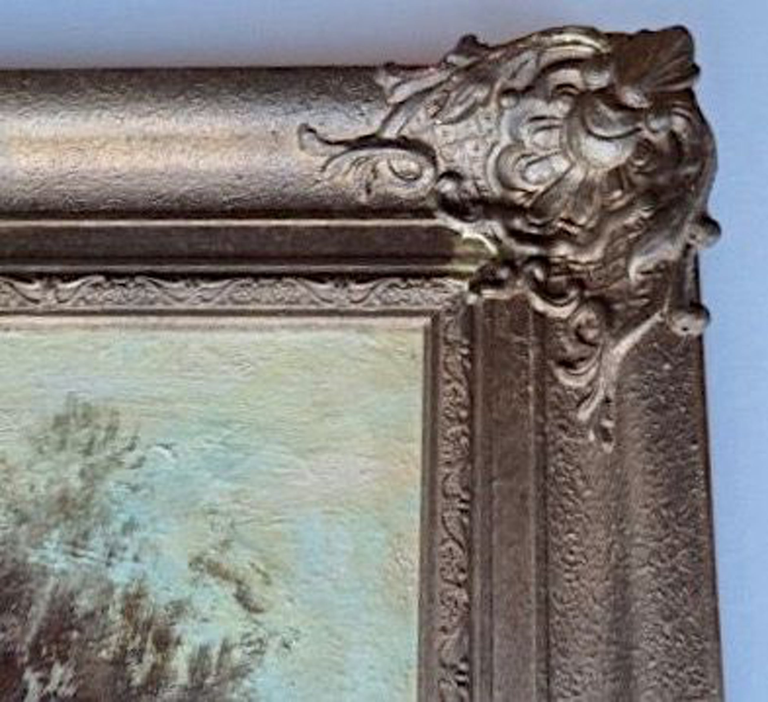 Groot formaat in de originele antieke sierlijst (hout met pleisterwerk).