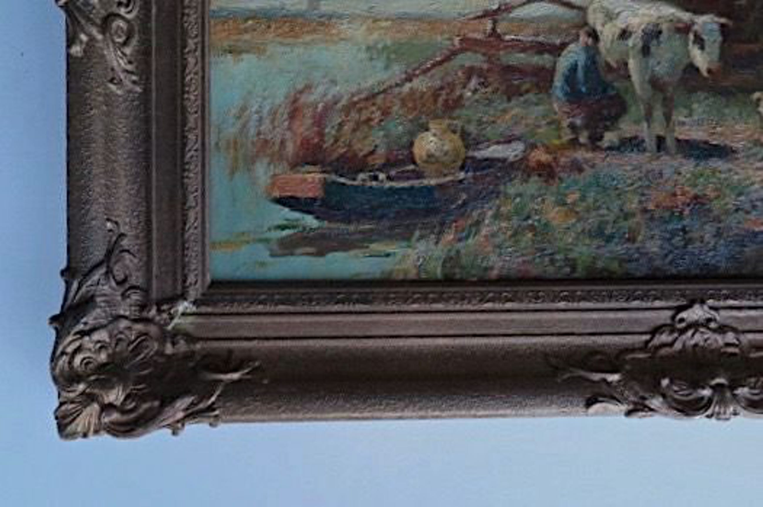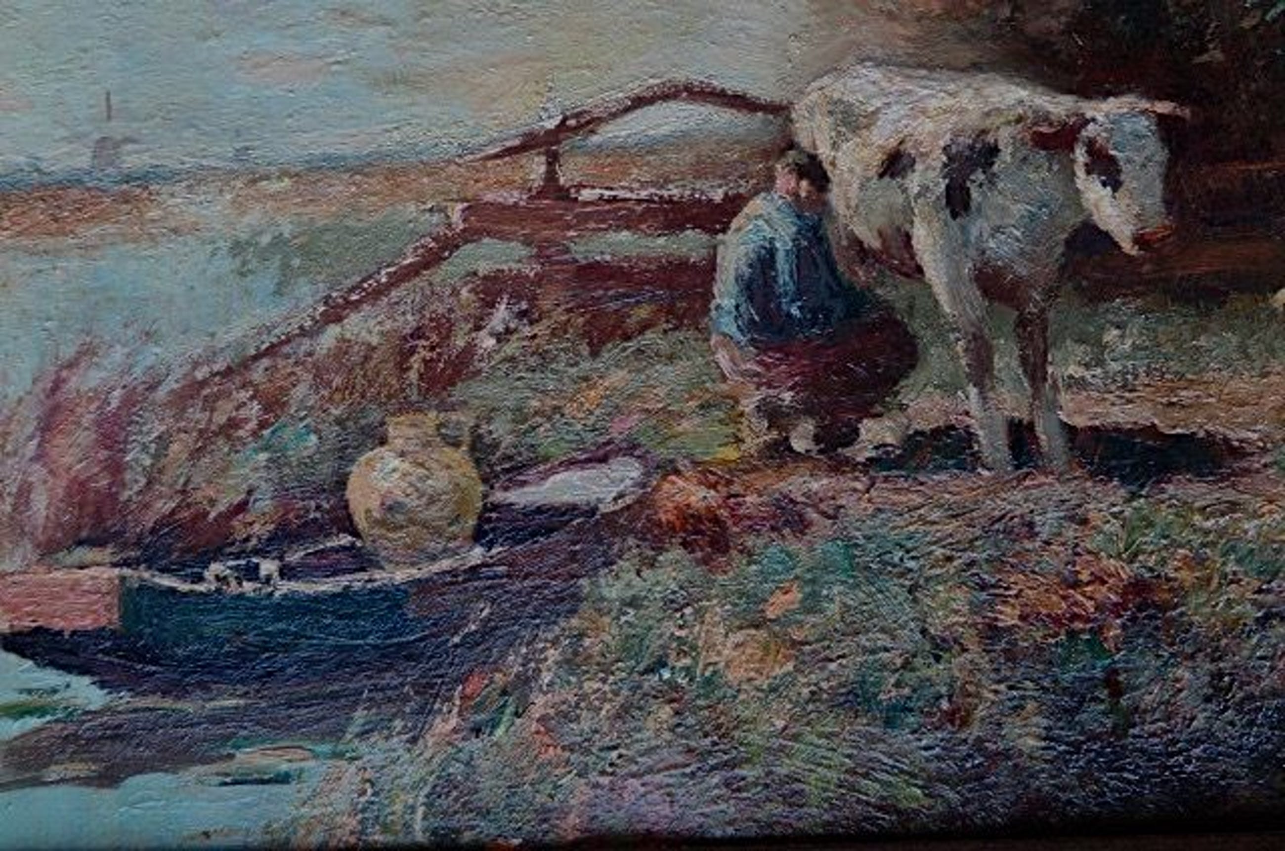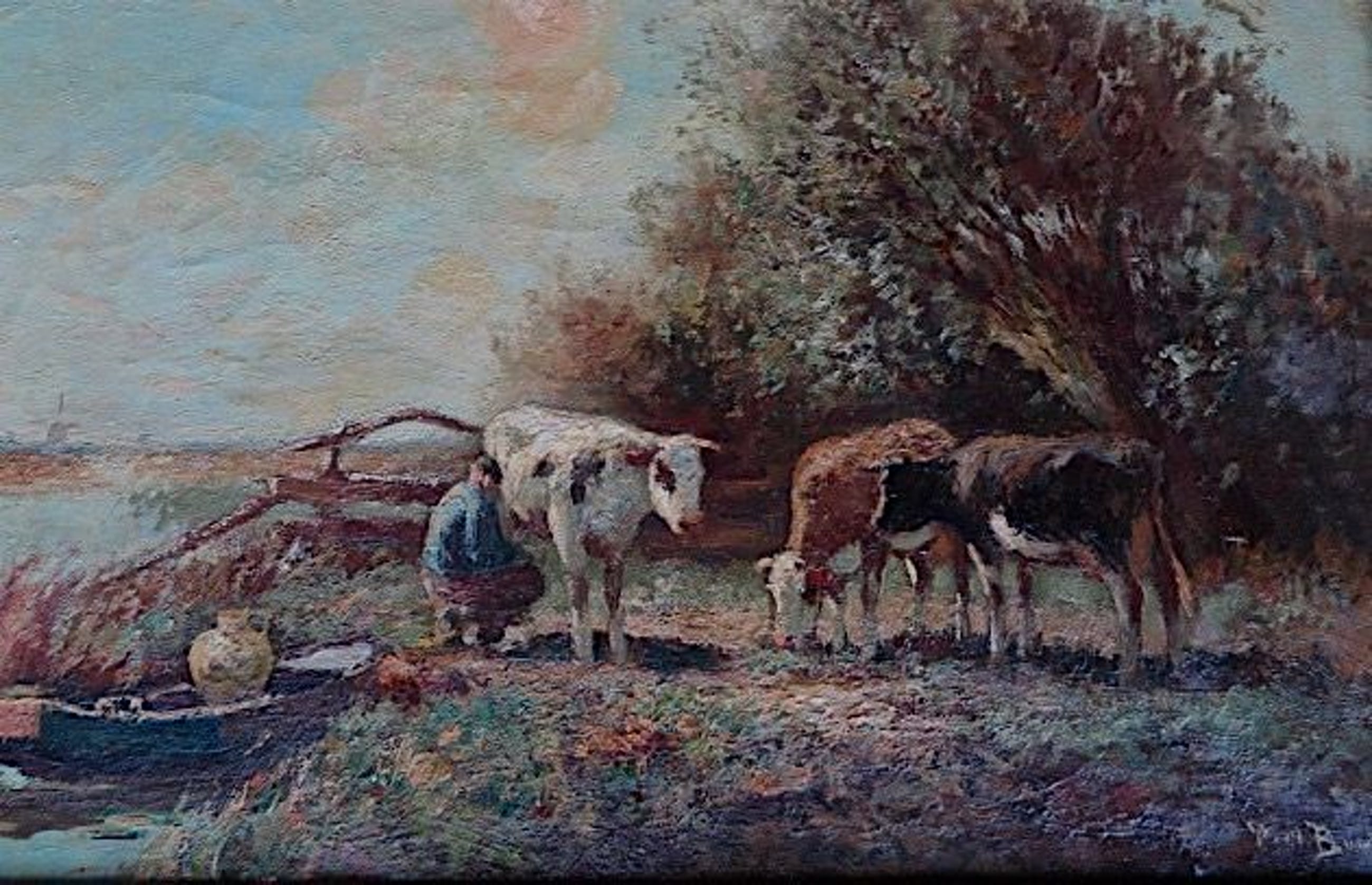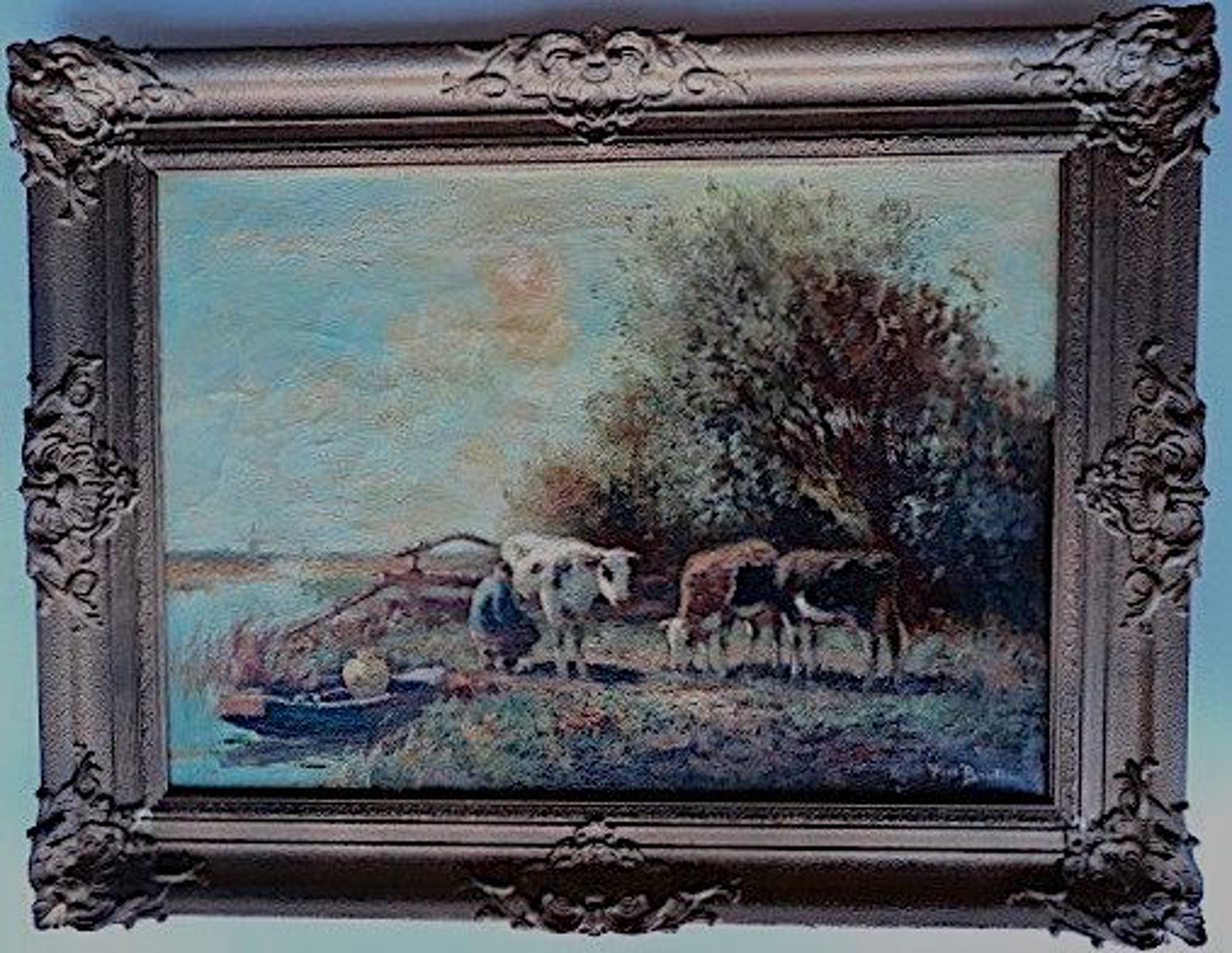 Vooral zijn landschappen met koeien zijn zeer gewild. Let ook op het fraai weergegeven geboomte.