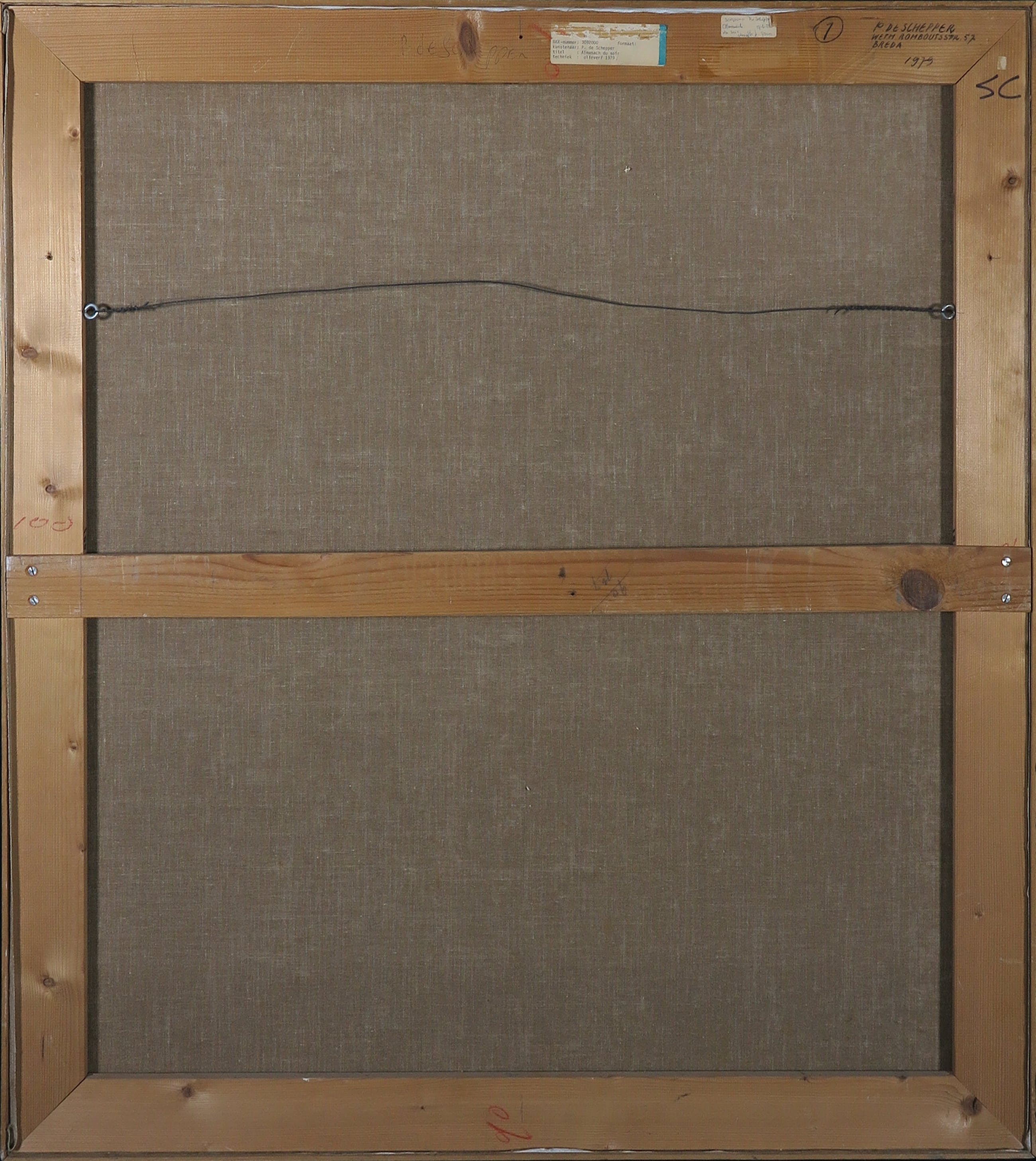 Op achterzijde spieraam voorzien van naam kunstenaar.
