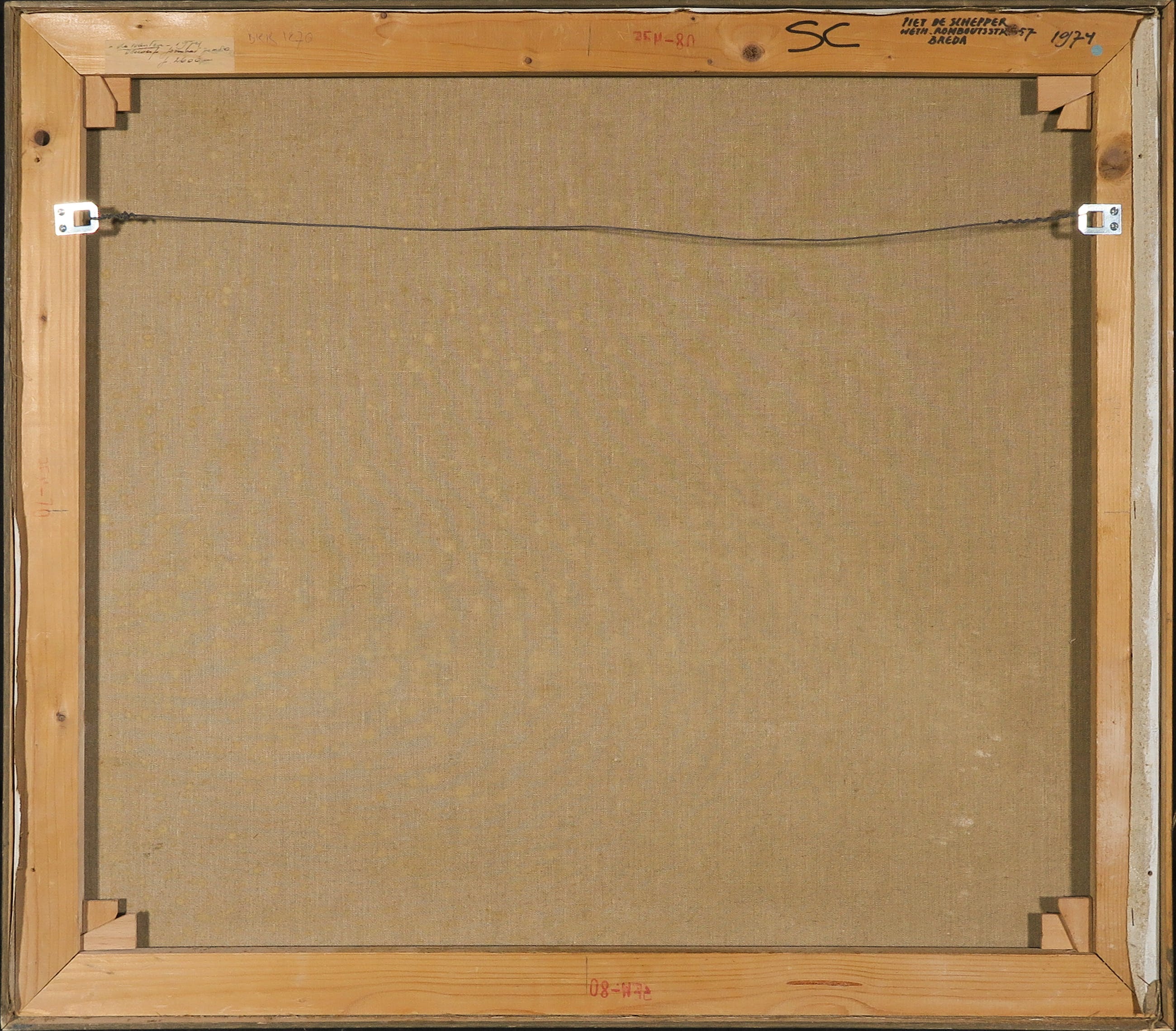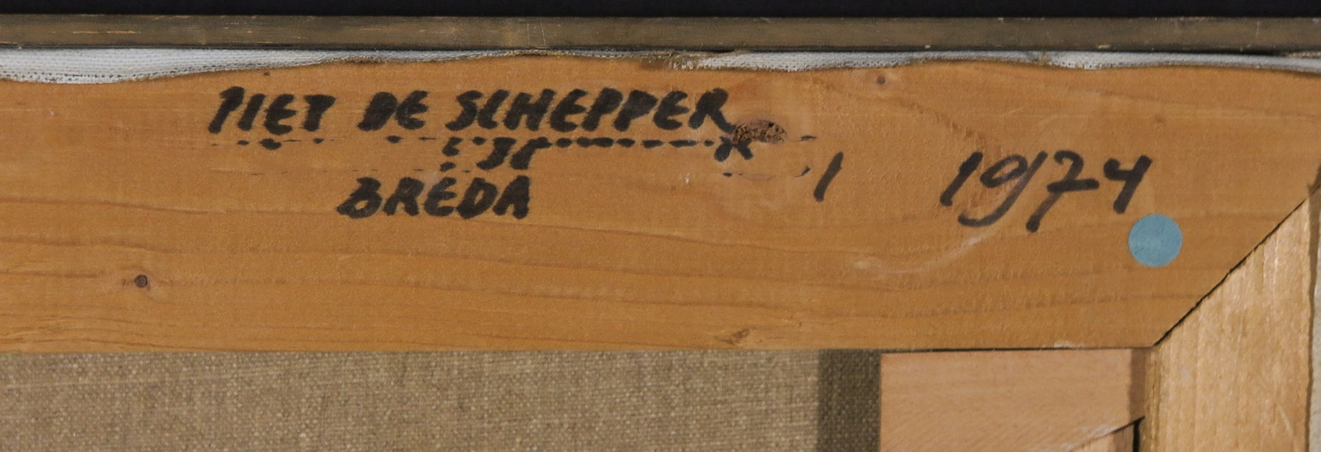Op achterzijde spieraam voorzien van naam kunstenaar.