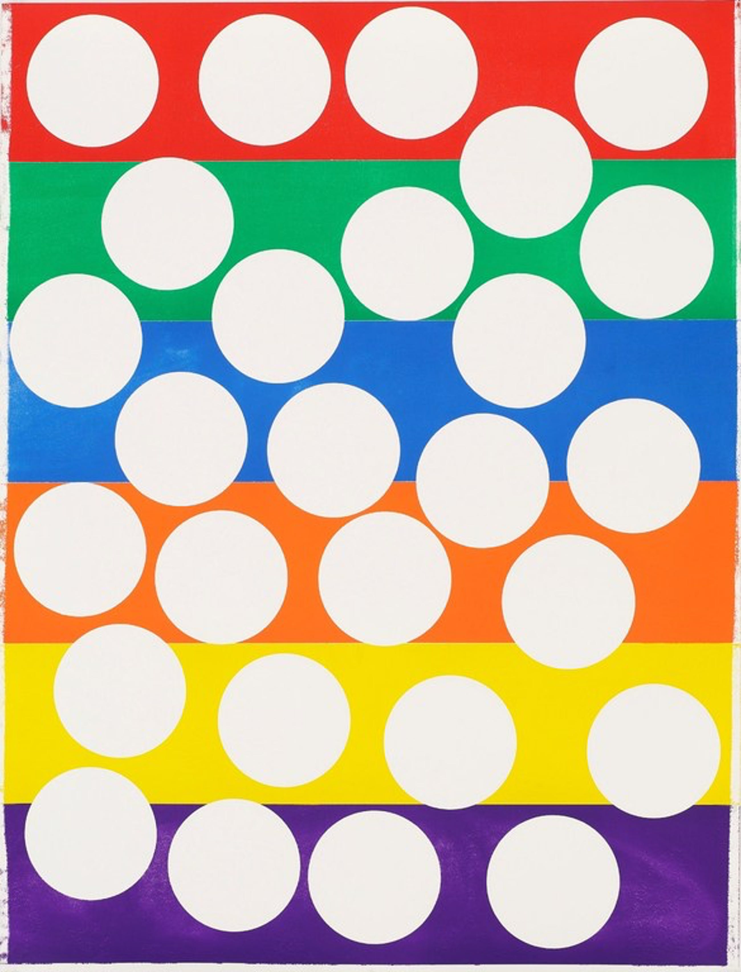 Door de kleuren en de cirkels krijgt de prent een bijzondere dynamiek!