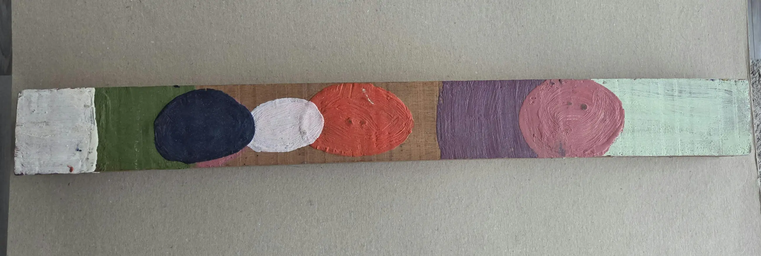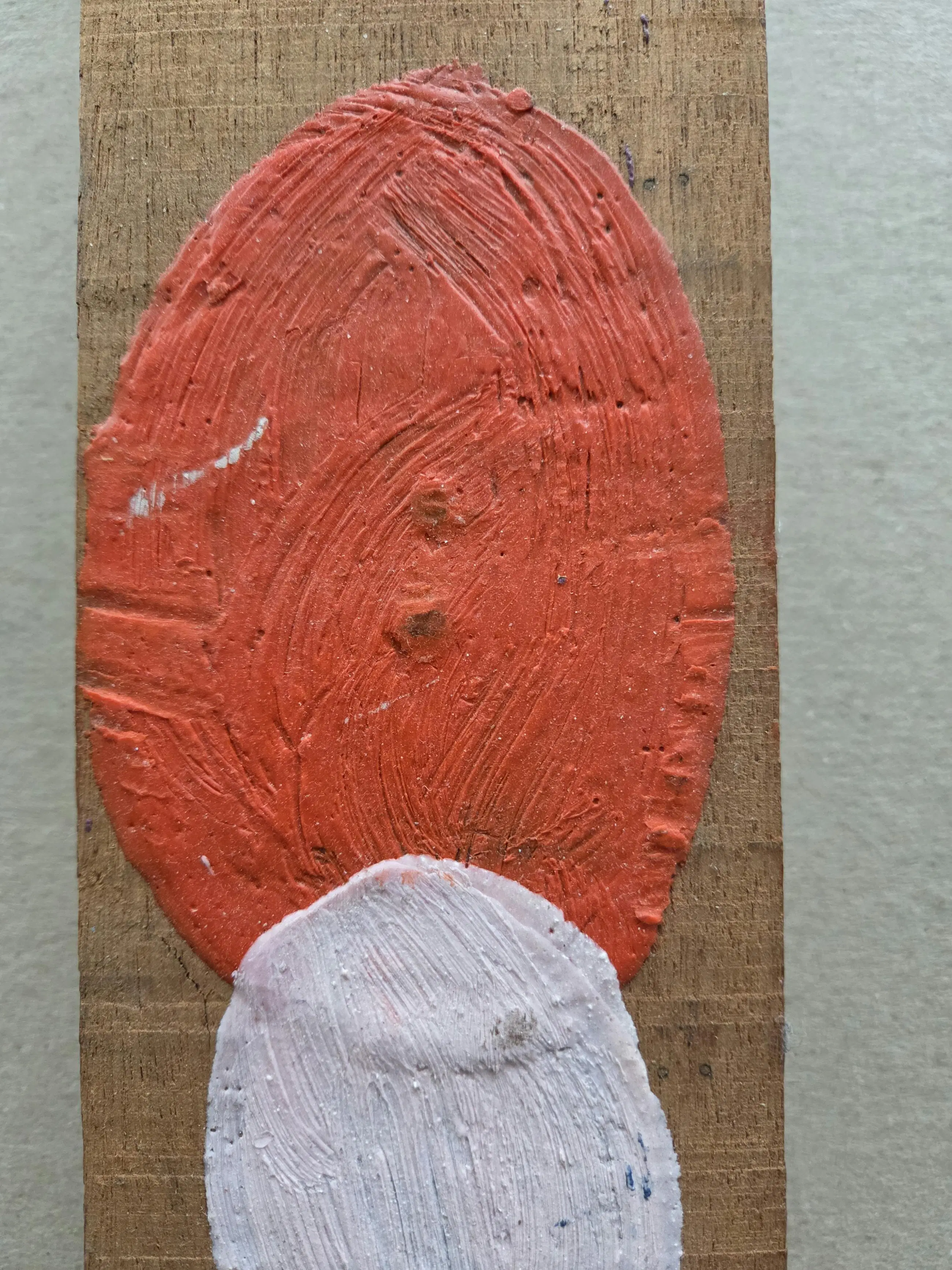 Piet Dirkx - Encaustiek. Gekleurde was op houten balk.