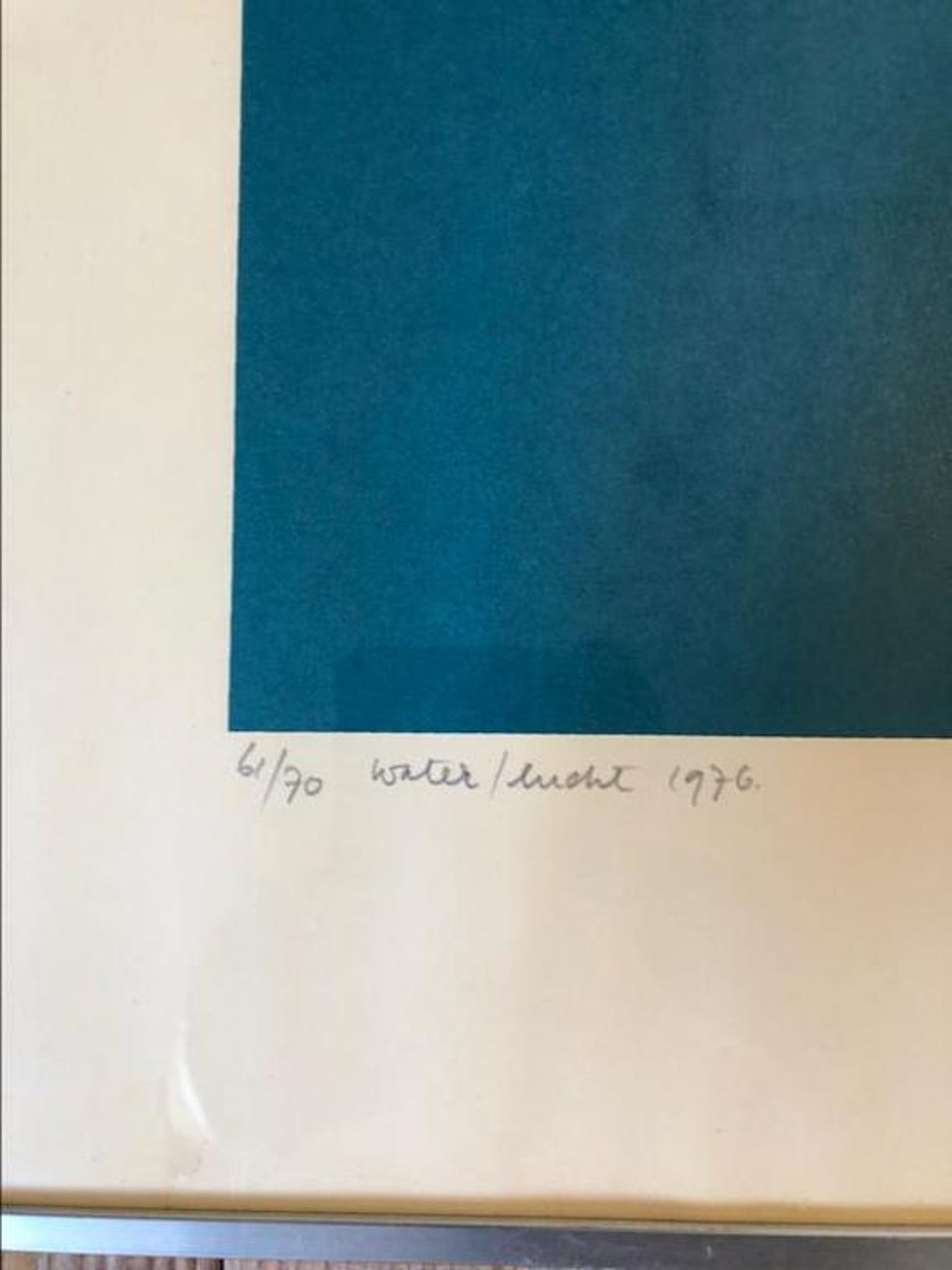 Algemeen: Het kunstwerk is ingelijst met een zilverkleurige lijst.