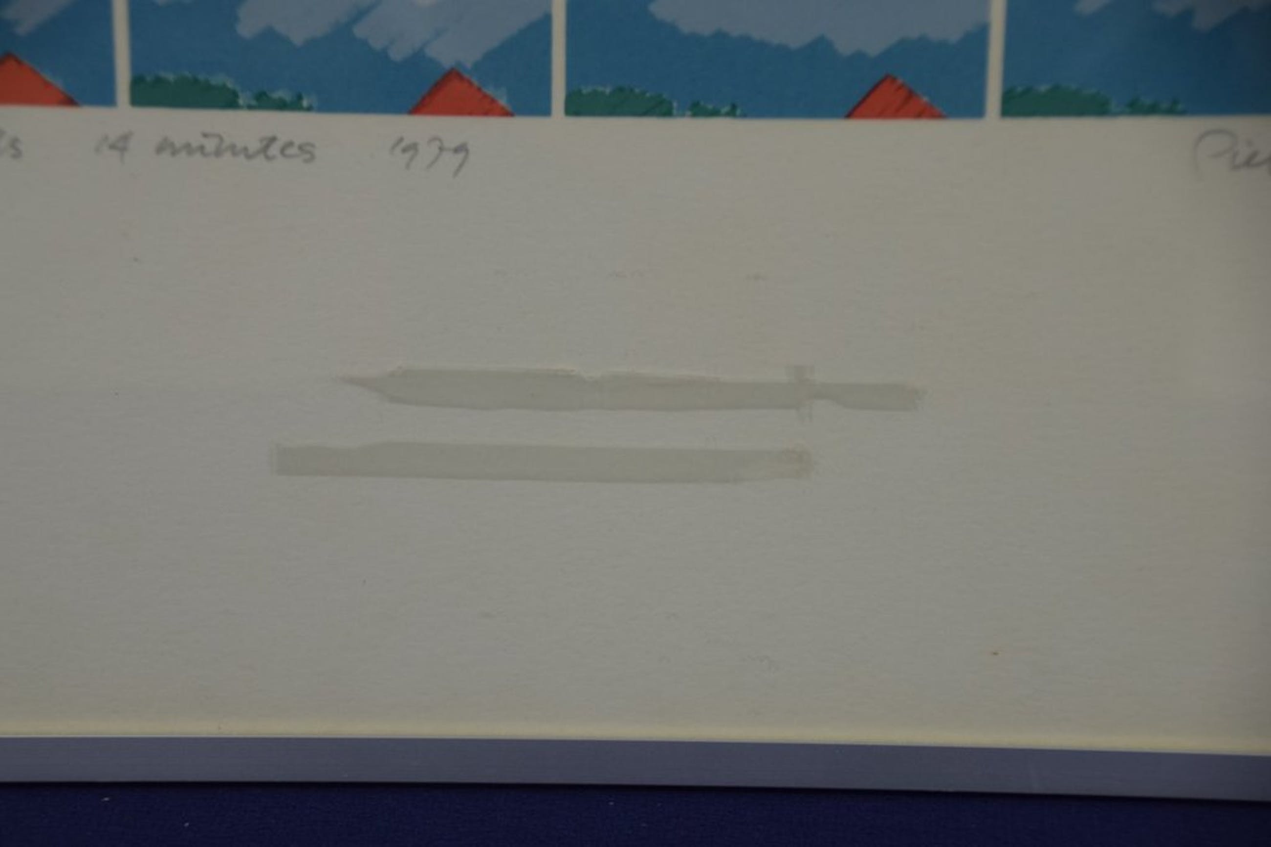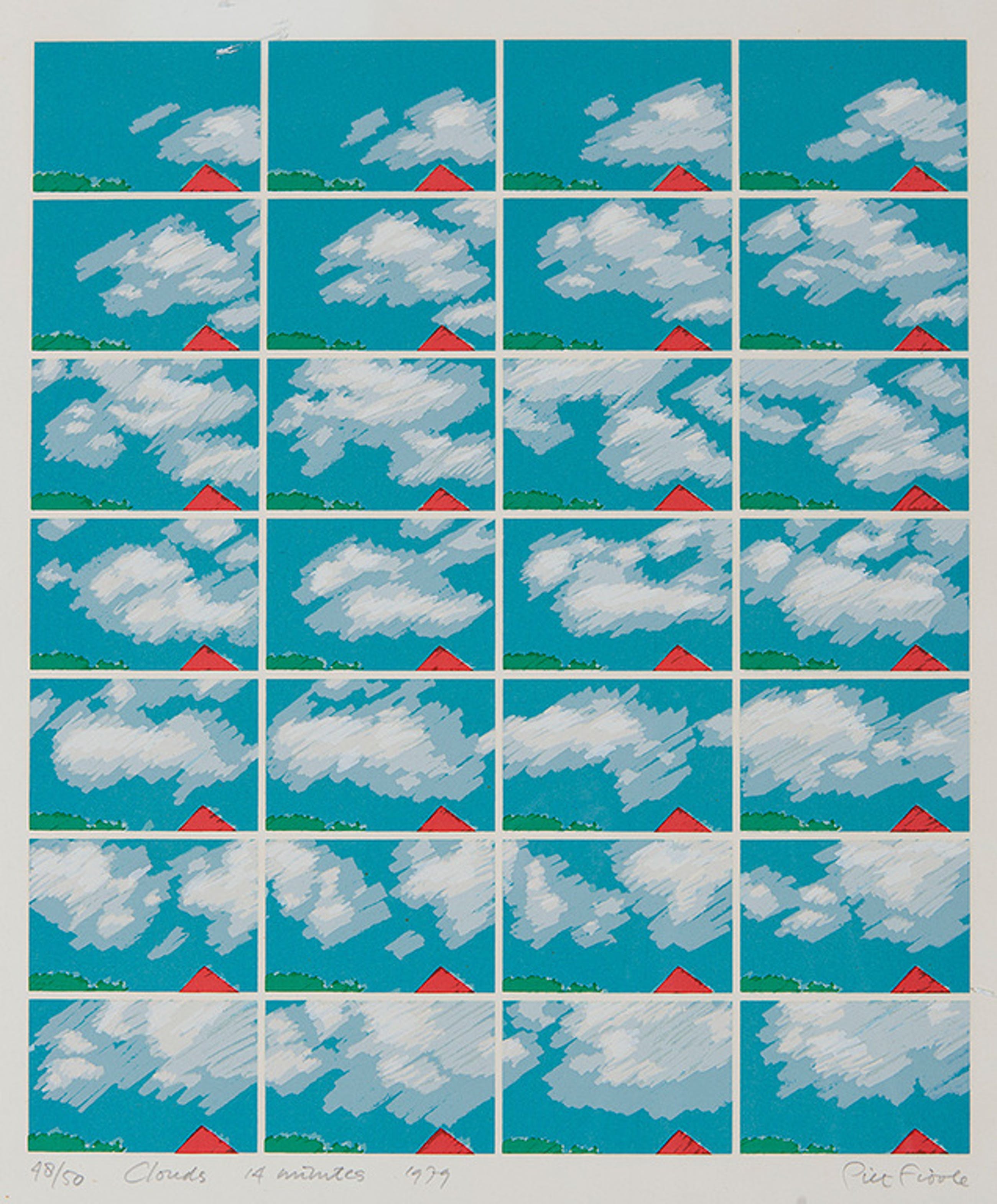 Werk in redelijk tot goede staat van Piet Fioole uit 1979. Blad is uniform licht vergeeld over gehele oppervlakte. Lijst heeft verschillende kleine krasjes, barstjes en stickerresten. Op achterzijde lijst bevinden zich enkele labels met betrekking tot de herkomst.