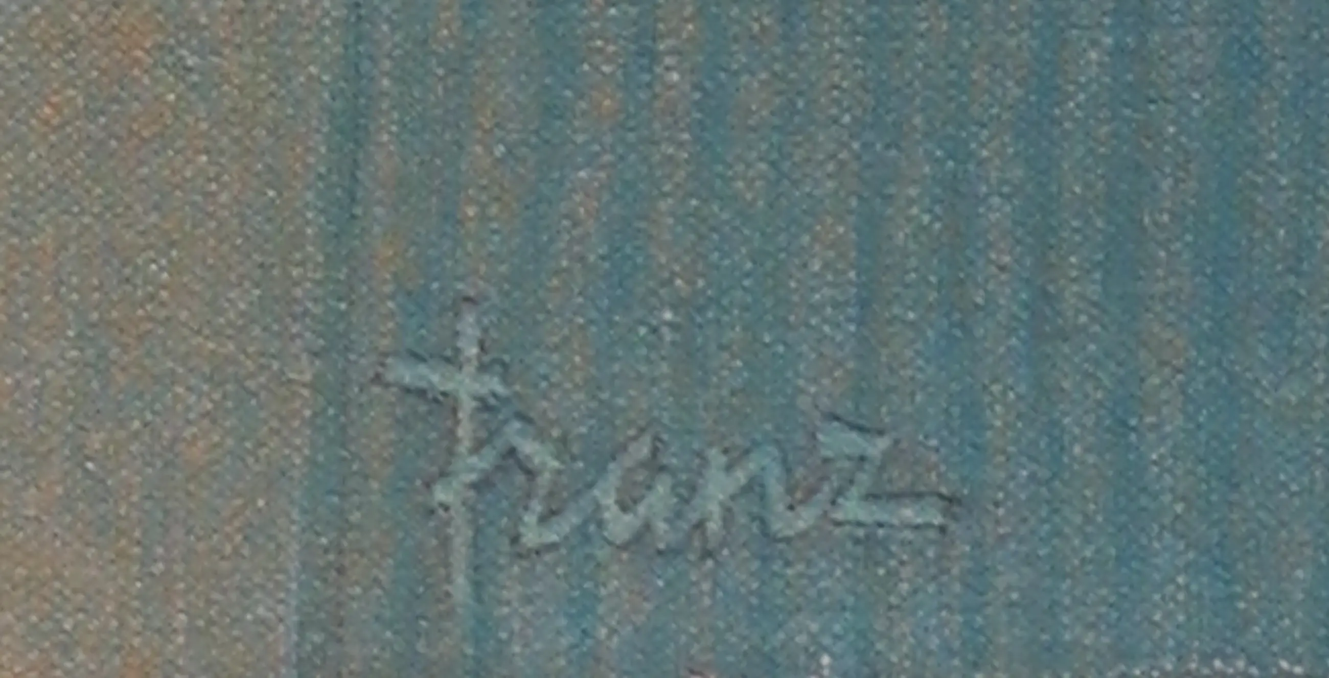 | Wat lichte krassen zichtbaar. Linksboven lijkt het canvas wat gedeukt tegen het spieraam te zitten, ook is er wat licht schade aan die linkerhoek. | |