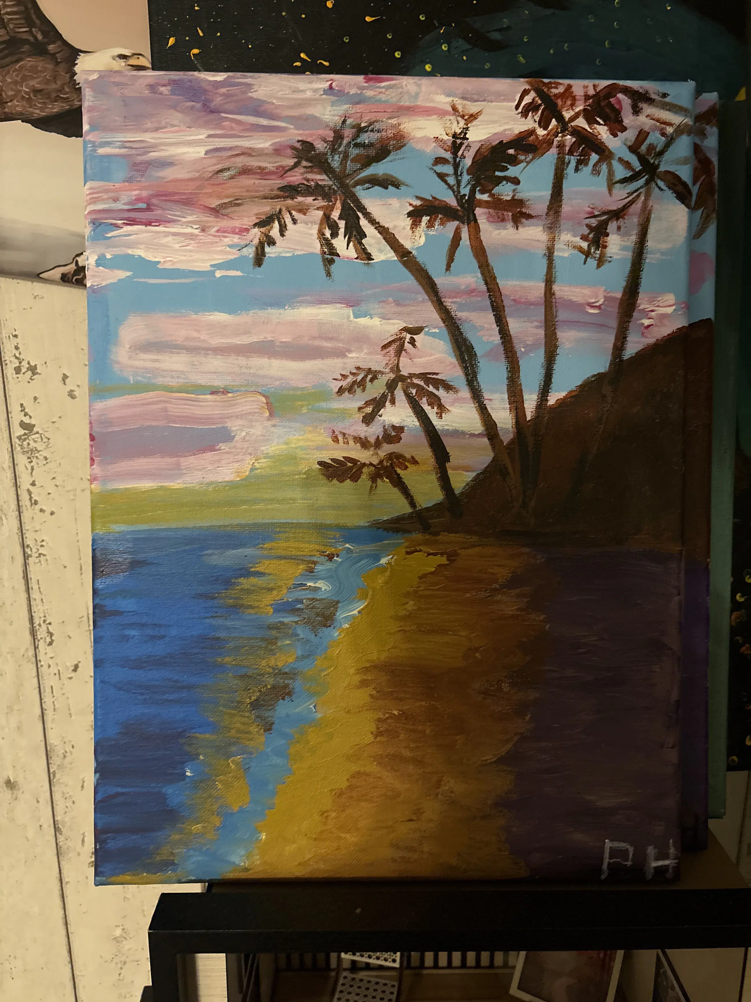 Te koop aangeboden, Canvas Schilderij met bomen en zee /zon landschap lengte 40 cm breed 39 cm lang Schilderij is voorzien van een blanke lak laag Dus ook ideaal voor overkapping of in vochtige ruimte. Schitterend voor in uw woonkamer of overkapping.