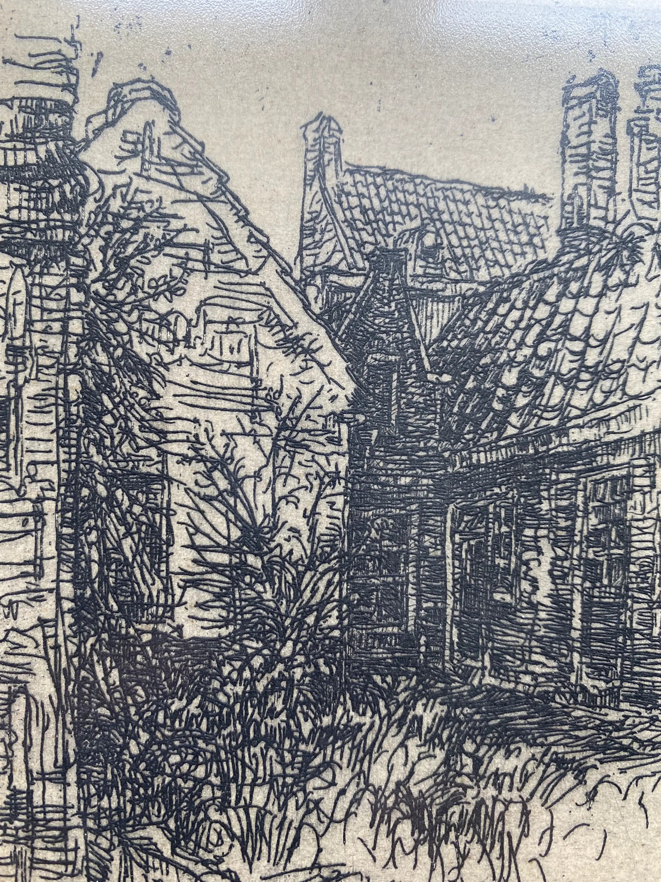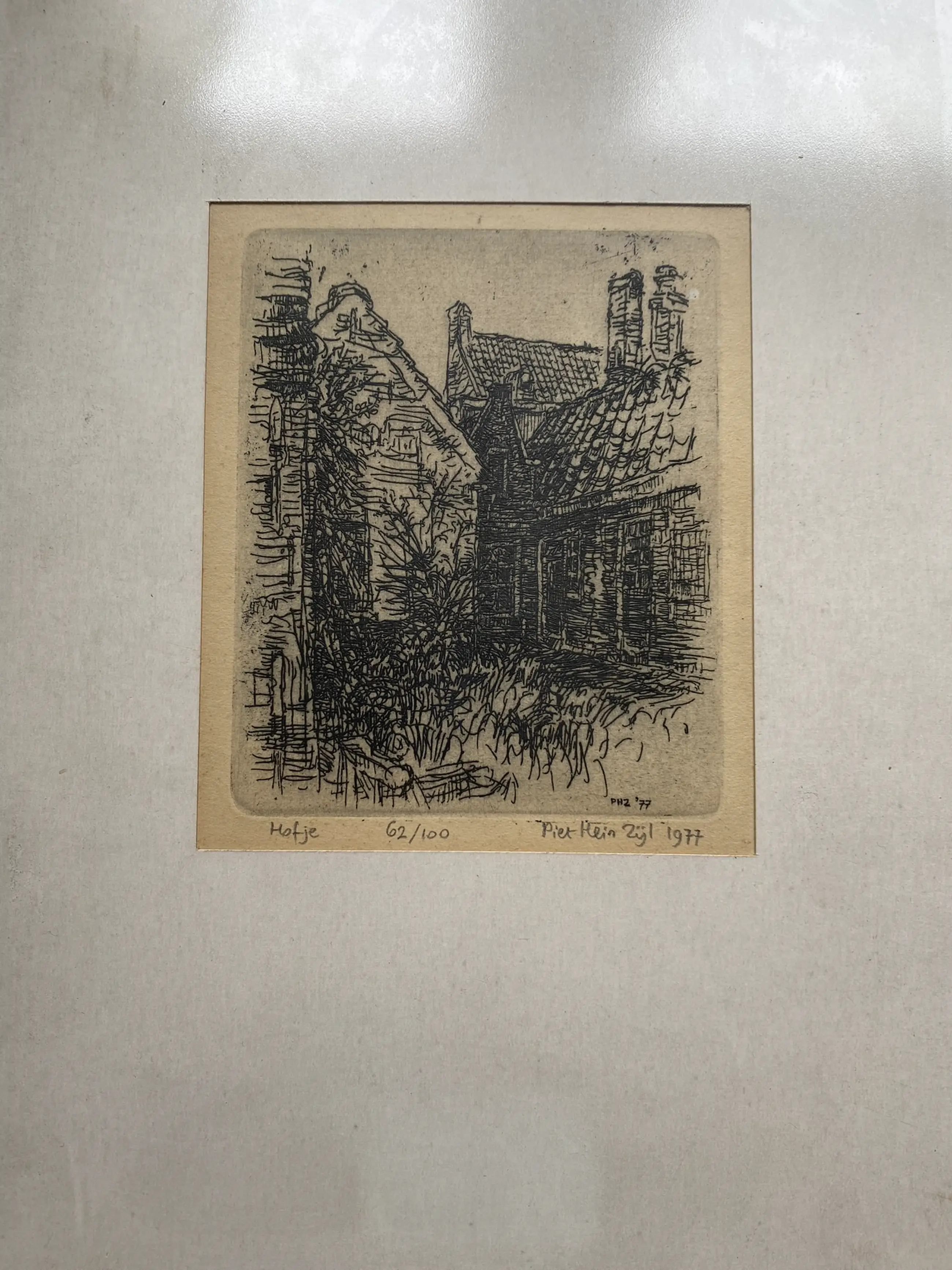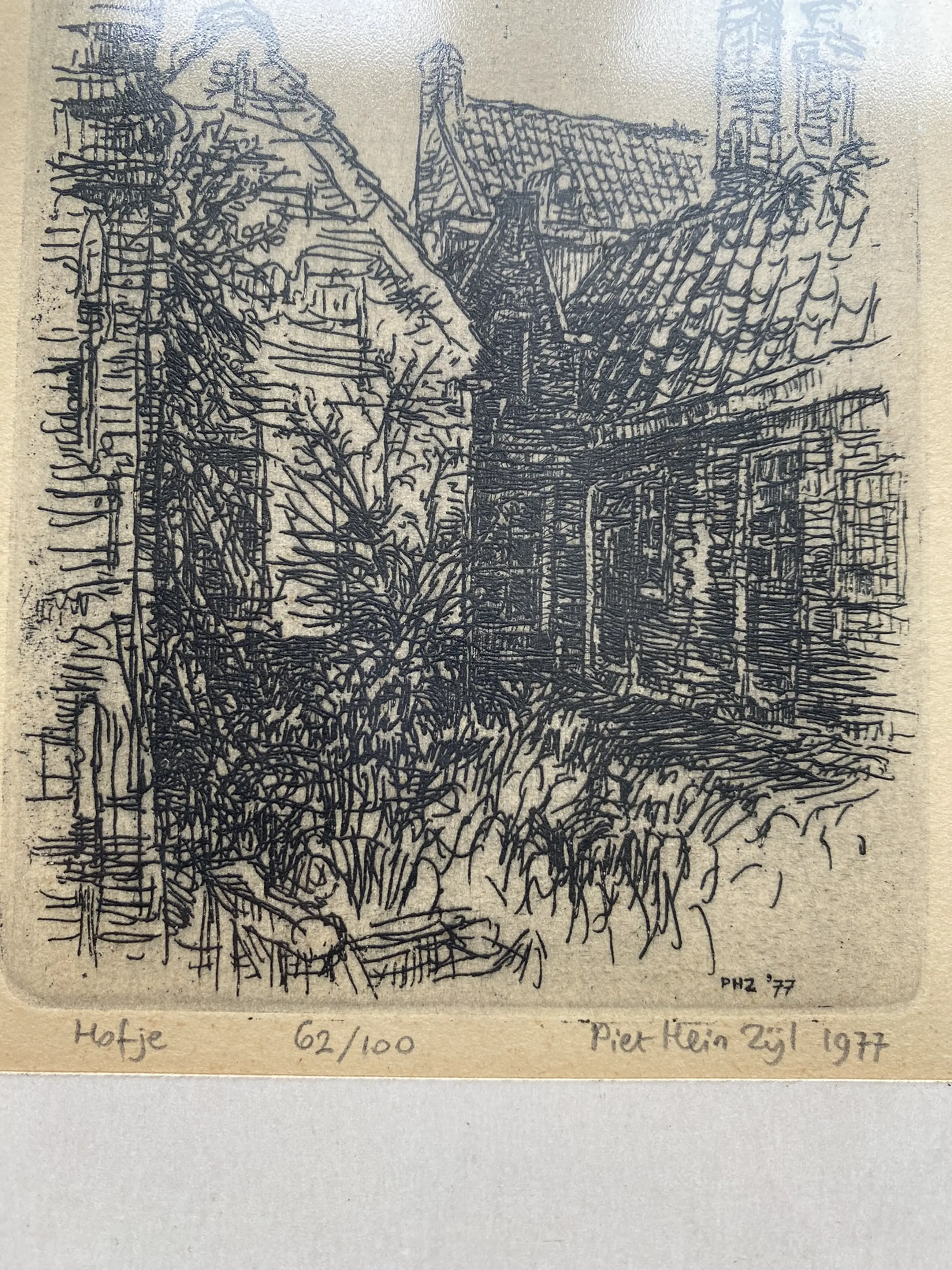 Een hofje van Piet Hein Zijl, gesigneerd met potlood onder de ets, en monogram PHZ ‘77 meegedrukt.