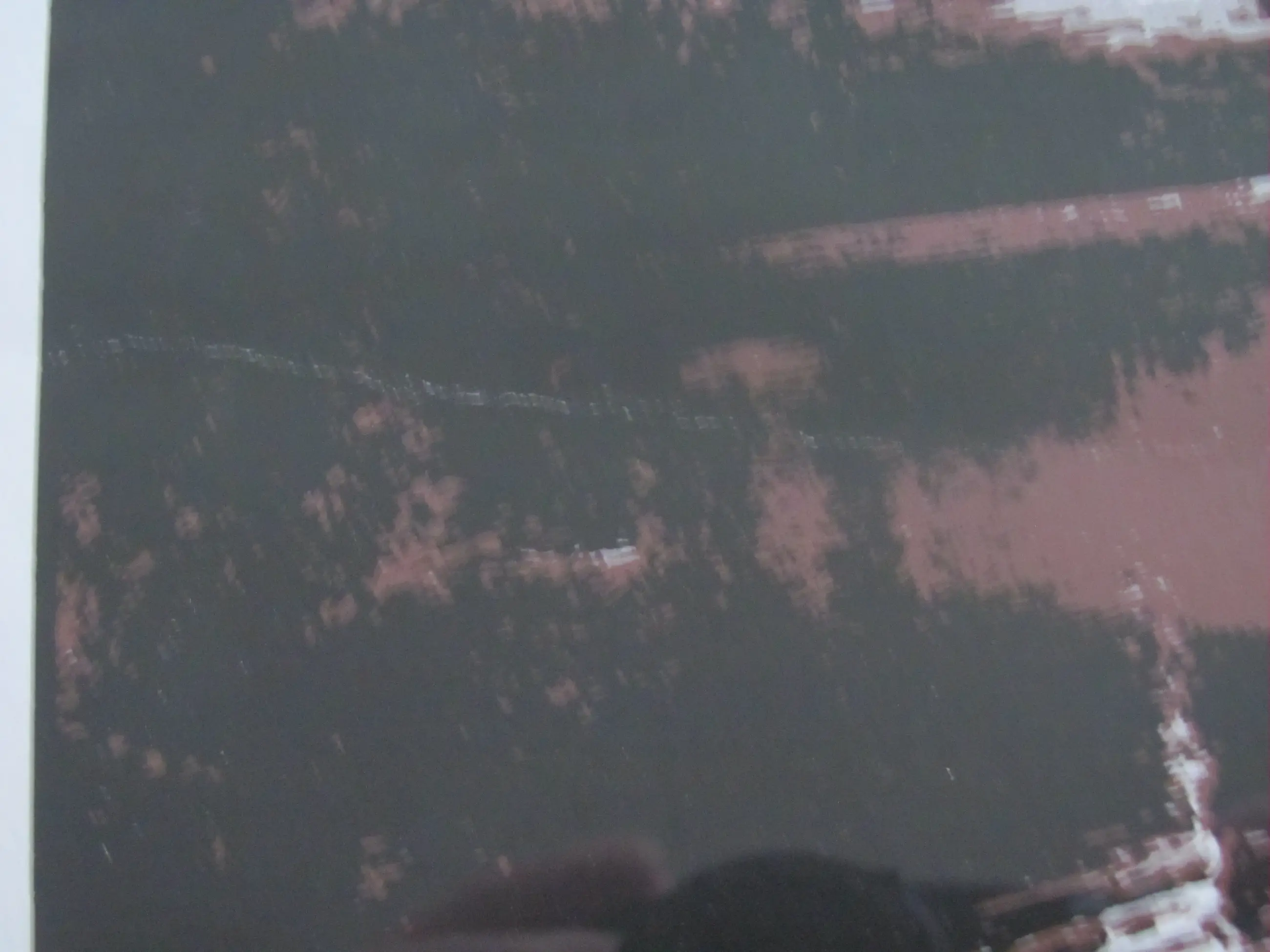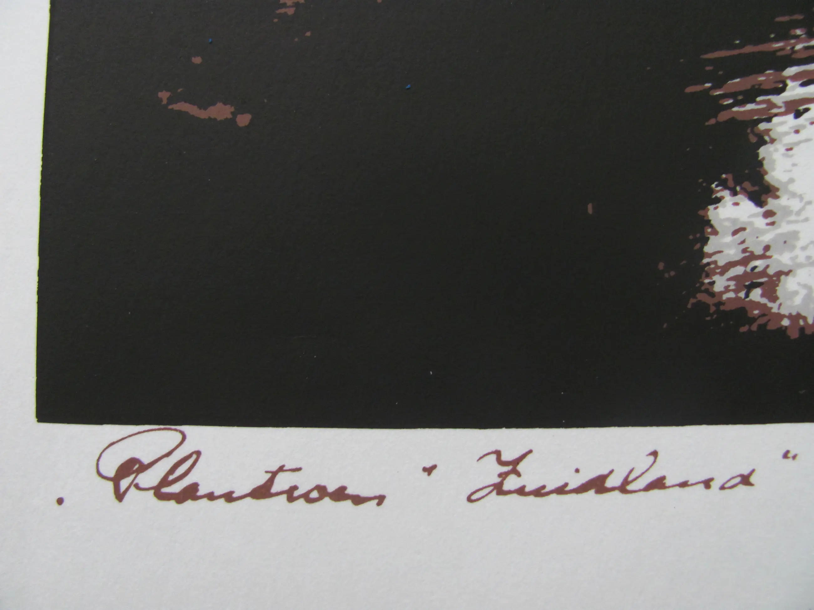 De zeefdruk heeft aan de linkerkant (in het midden) een vouwrand. Het is moeilijk te zien, kijk naar de foto's (met name ook de laatste foto) om u een beeld te vormen.