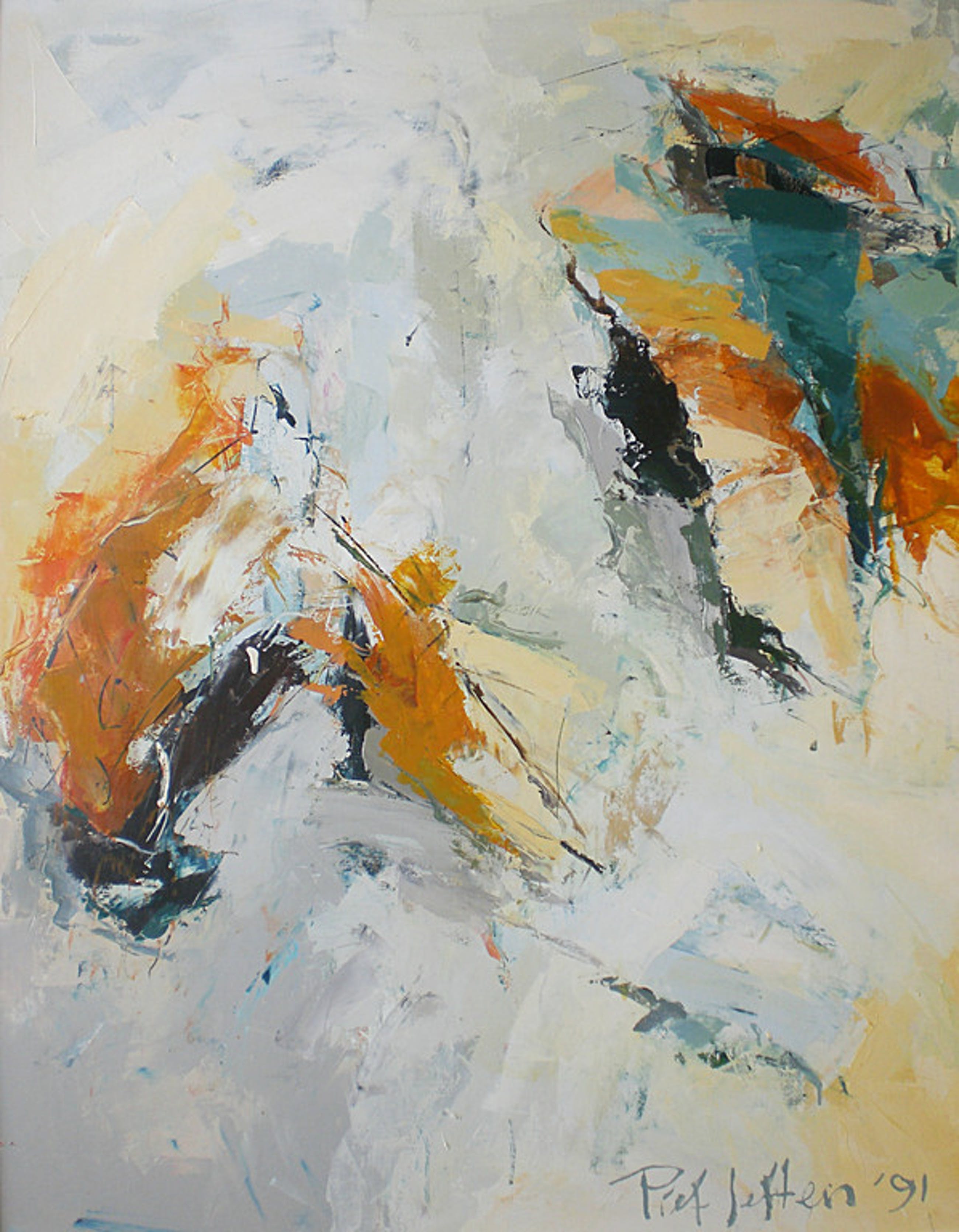 Schitterend schilderij van Piet Jetten uit 1991 getiteld Zanzibar in mooie complimenterende lijst. Gesigneerd en gedateerd. Een modern abstract landschap van deze internationaal doorbrekende kunstenaar (zie ook Saatchi Art). In 1992 was werk van hem al te zien tijdens de TEFAF in Maastricht en de PAN in Amsterdam. Werk van deze afmetingen kun je elders niet krijgen voor onder de 2000 euro.