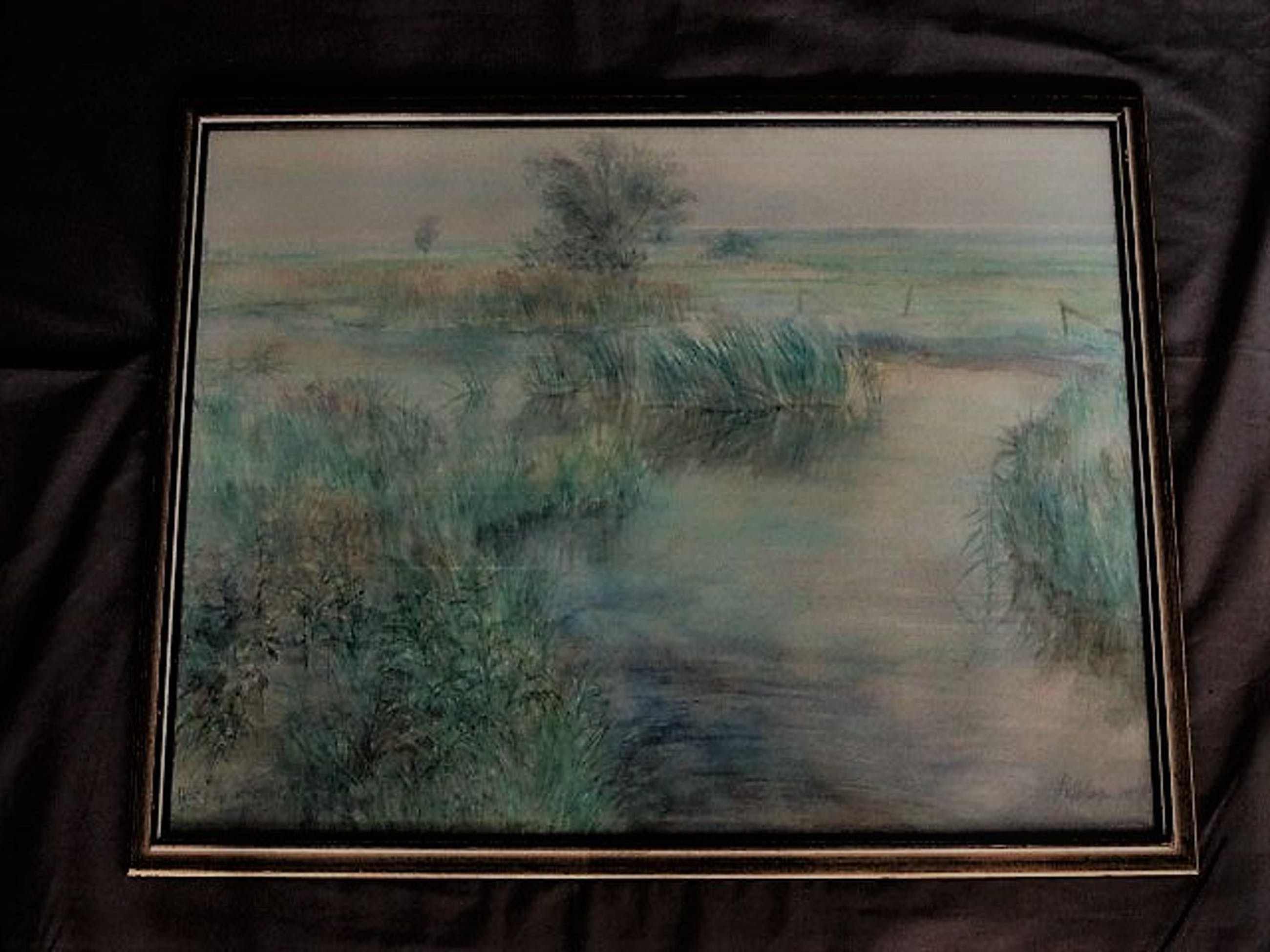 | Mooi impressionistisch Pastel(krijt) op papier van Amsterdamse alleskunner ( illustrator, aquarellist, graficus, grafisch ontwerper, lithograaf, schilder, tekenaar, tekenleraar). Het Pastel verkeert in goede conditie, de lijst heeft hier en daar wat beschadigingen. | |||