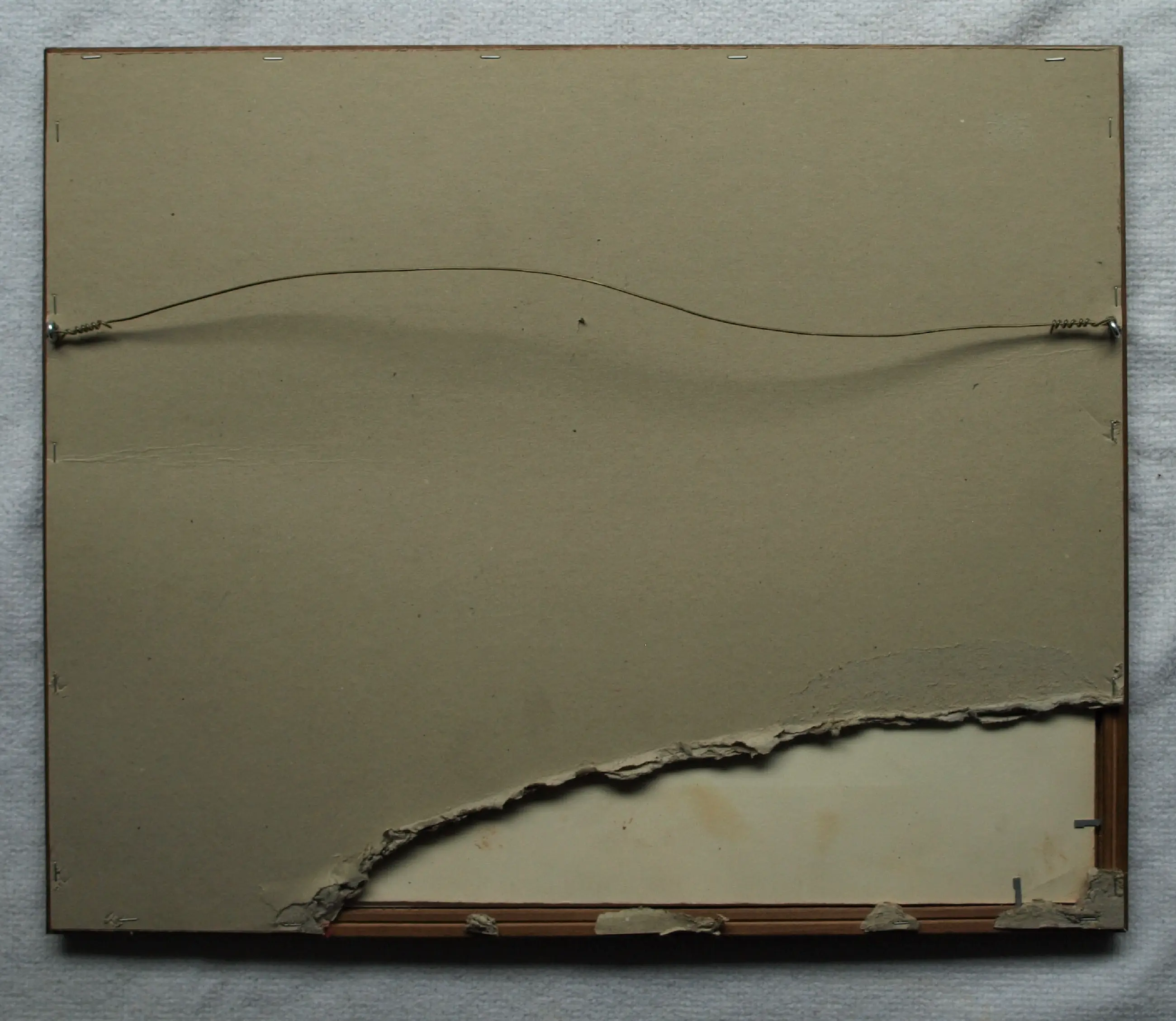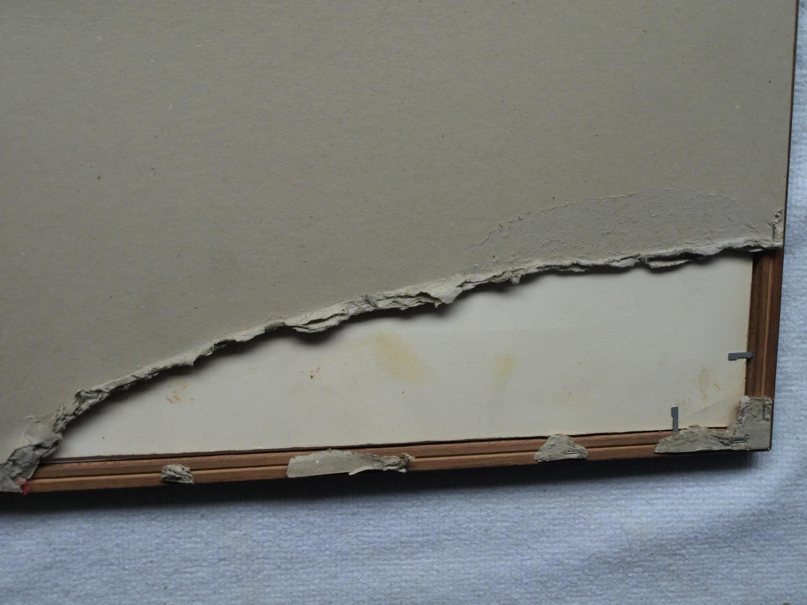 De litho is in goede staat. Het papier van de litho is licht ‘vergeeld’. De kartonnen achterplaat is rechtsonder gedeeltelijk afgescheurd…. Zie ook alle foto’s voor een eigen indruk. Kan zo aan de muur