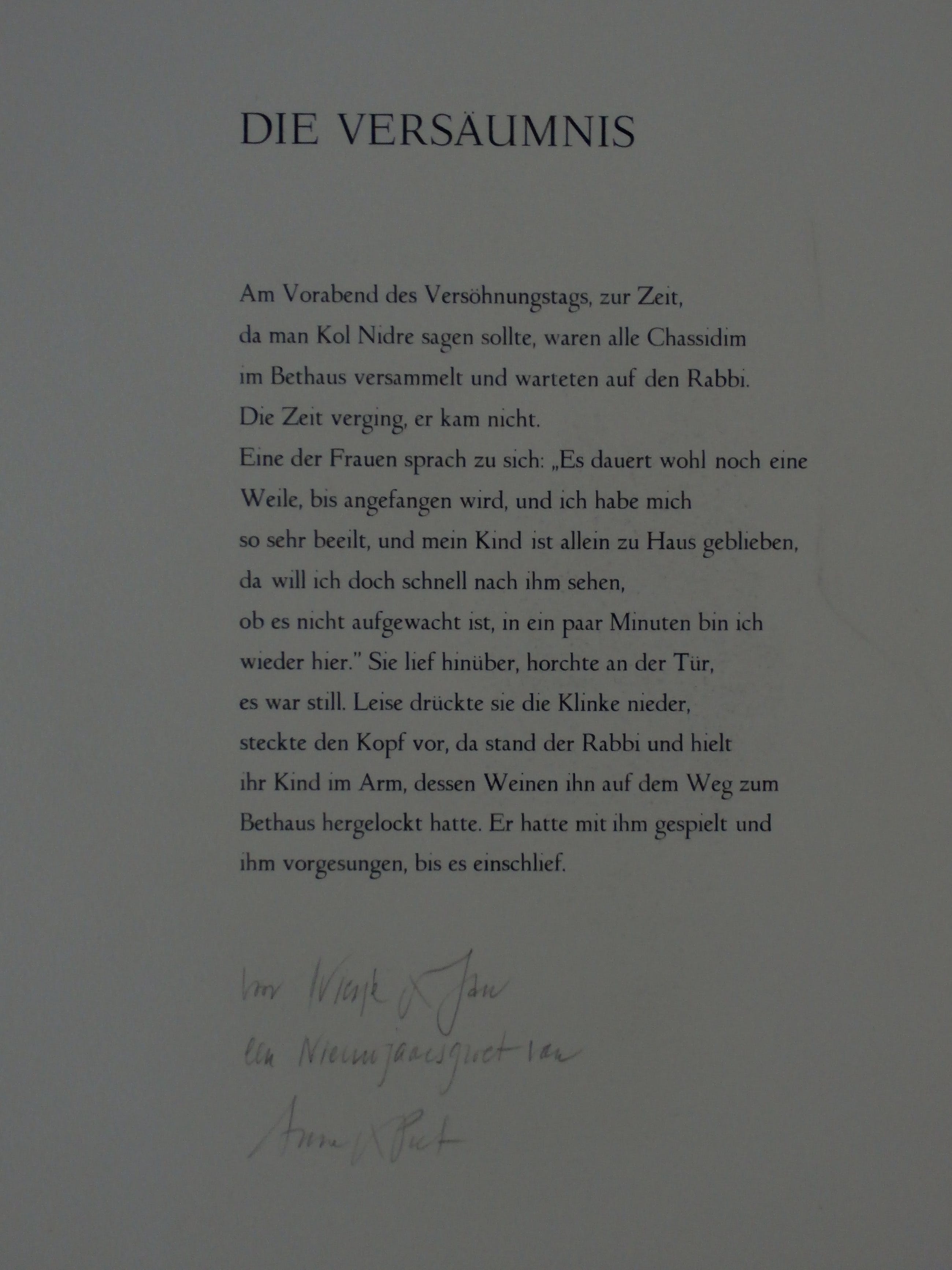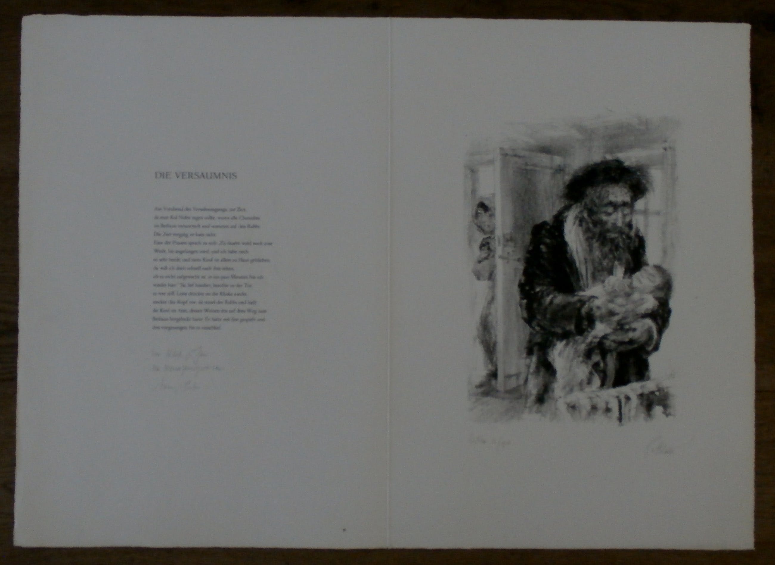 Litho van Piet Klaasse. Met een tekst erbij, met de titel: Die Versaumnis. "Voor Wiesje & Jan", een nieuwjaarsgroet van Anne & Piet. Nummer: 11/90. Afmetingen blad: H50 x b32.5. Afmetingen voorstelling H34 x b24. Het werk is rechtsonder gesigneerd door de kunstenaar. De authenticiteit van het aangeboden werk wordt volledig gegarandeerd. Een certificaat van echtheid kan, op aanvraag, worden gemaild.