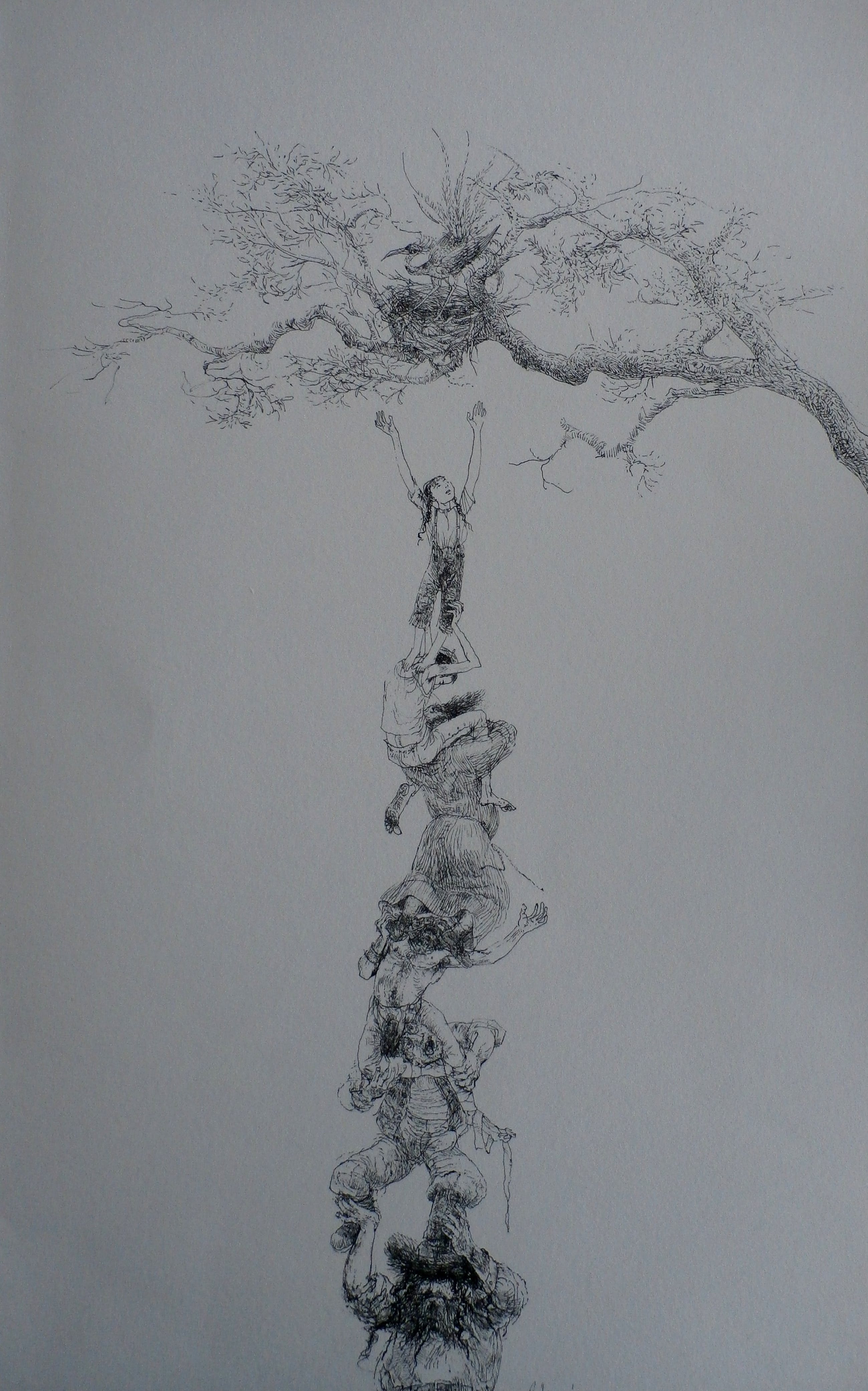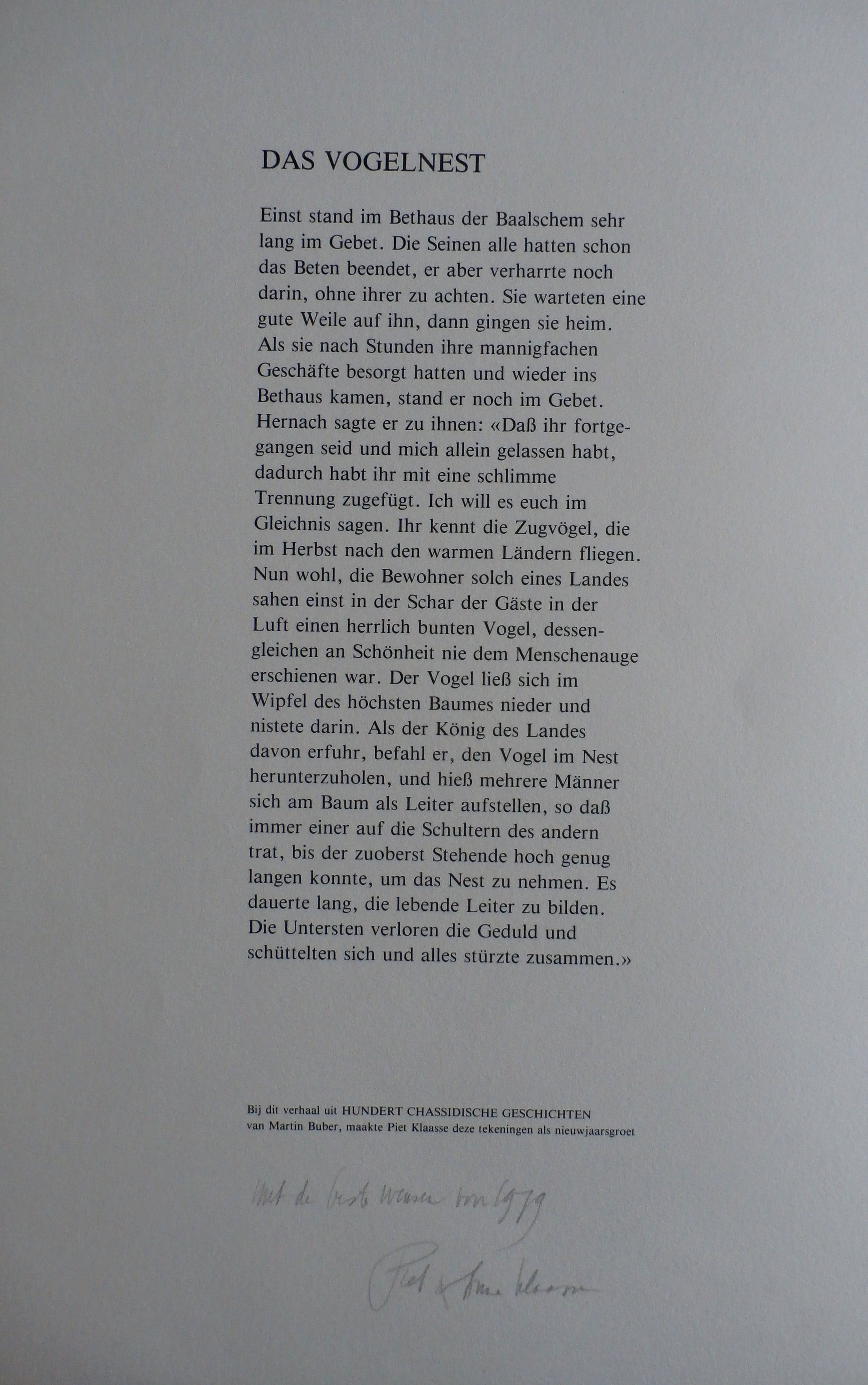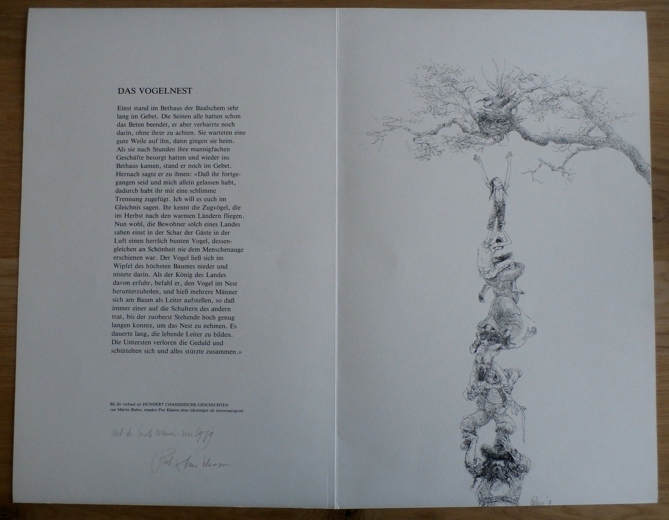 Nieuwjaarskaart met litho: Das Vogelnest uit 1978 van Piet Klaasse. Tekst: Met de beste wensen voor 1979, Piet & Anne Klaasse.