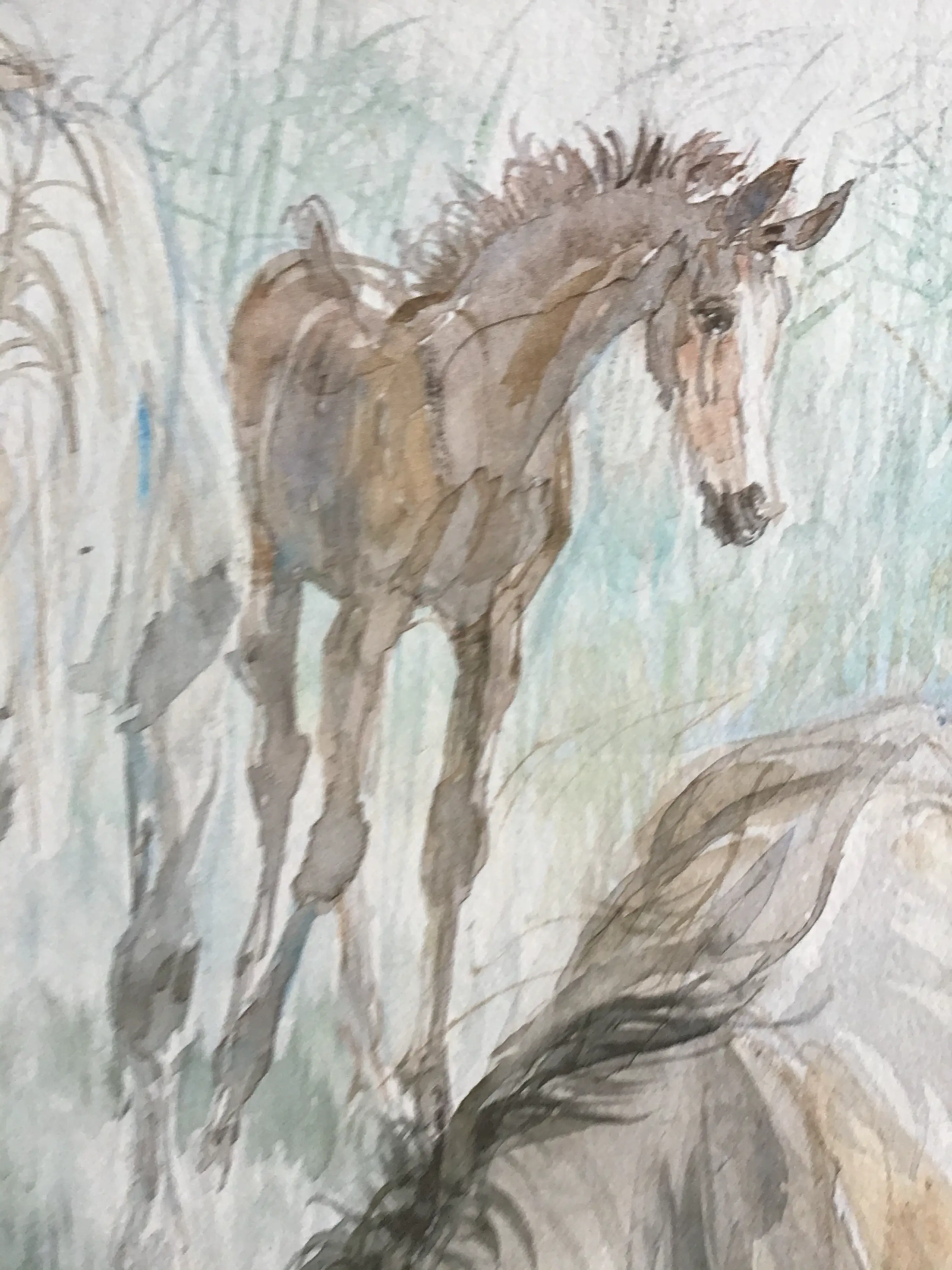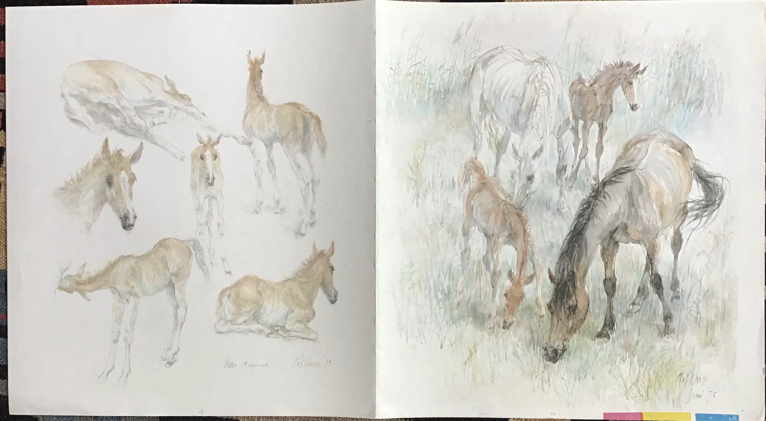 Piet Klaasse, unieke proefdruk van origineel In kleur Offsetlitho paarden Tweemaal Mooi zwaar papier aan beide zijden bedrukt Afmetingen 35x62cm Kunnen afzonderlijk worden gelijst Jaar 1974/1975 Gesigneerd in de druk Wordt aangetekend verzonden