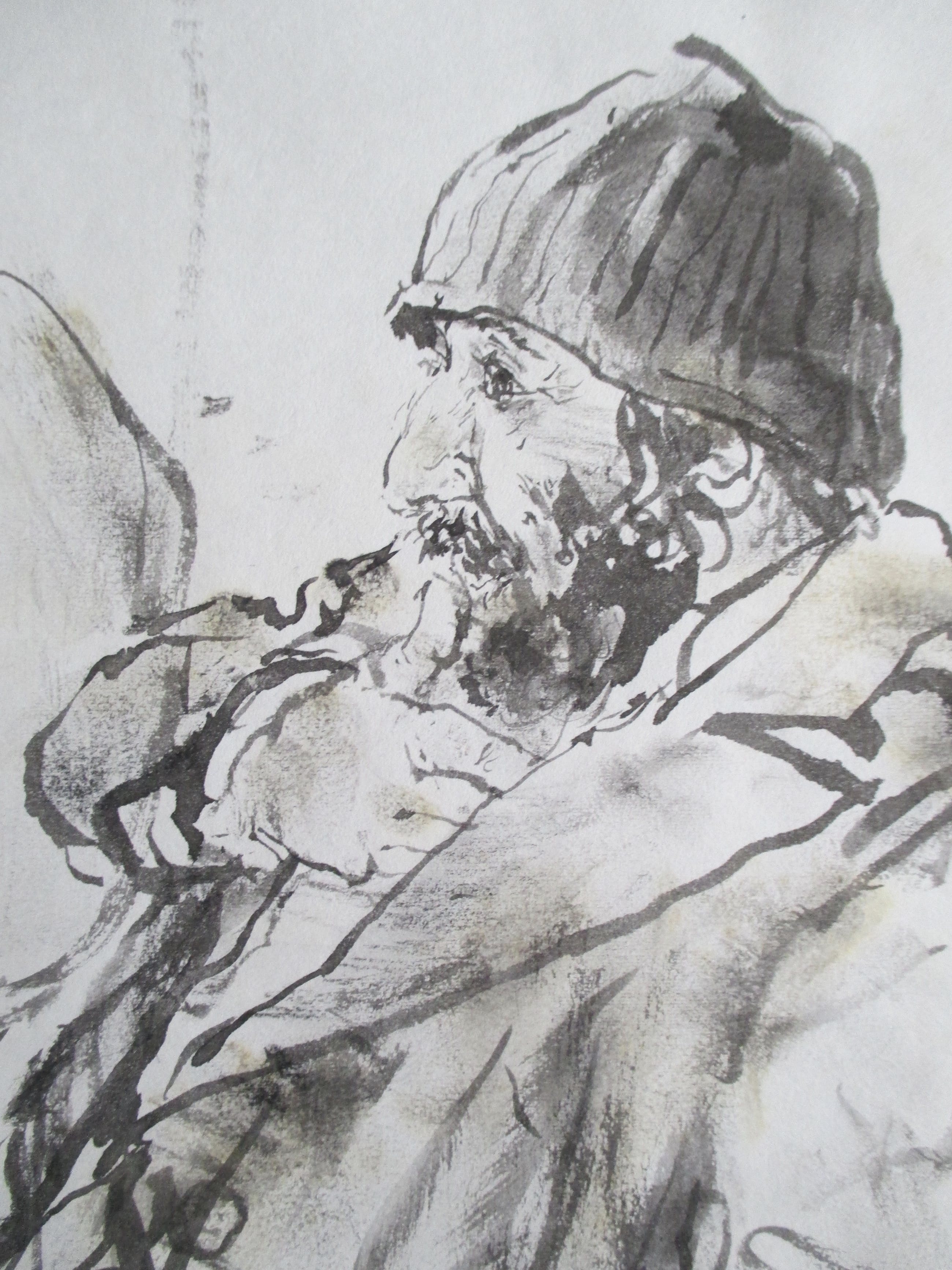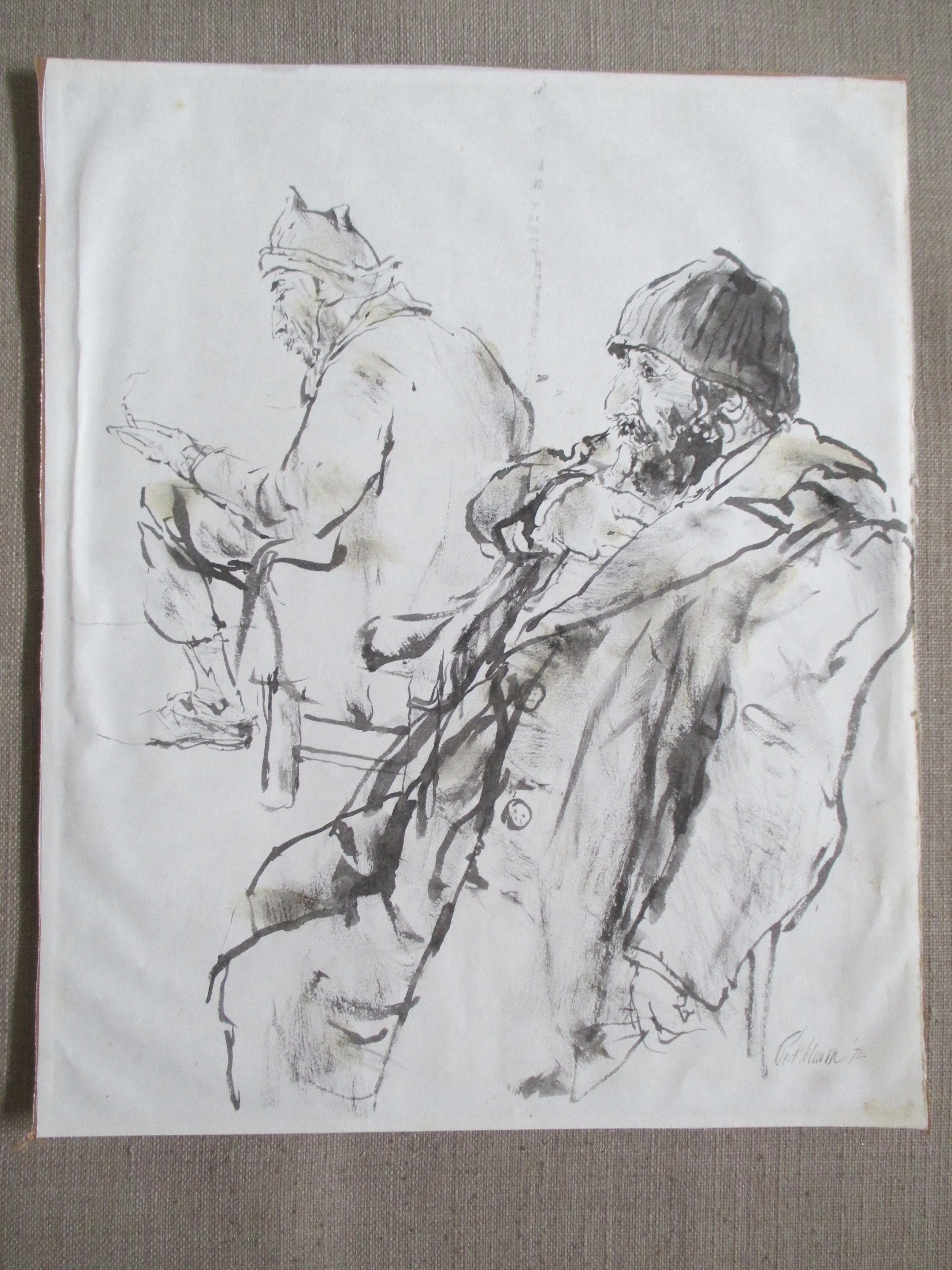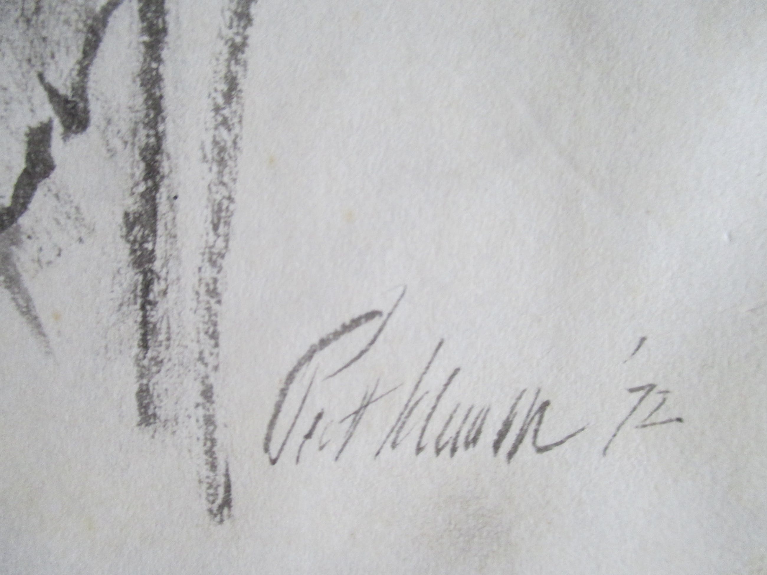 Inkttekening van Piet Klaasse, r.o gesigneerd en gedateerd. Verzending tussen twee platen, 8 euro, aangetekend 9,65
