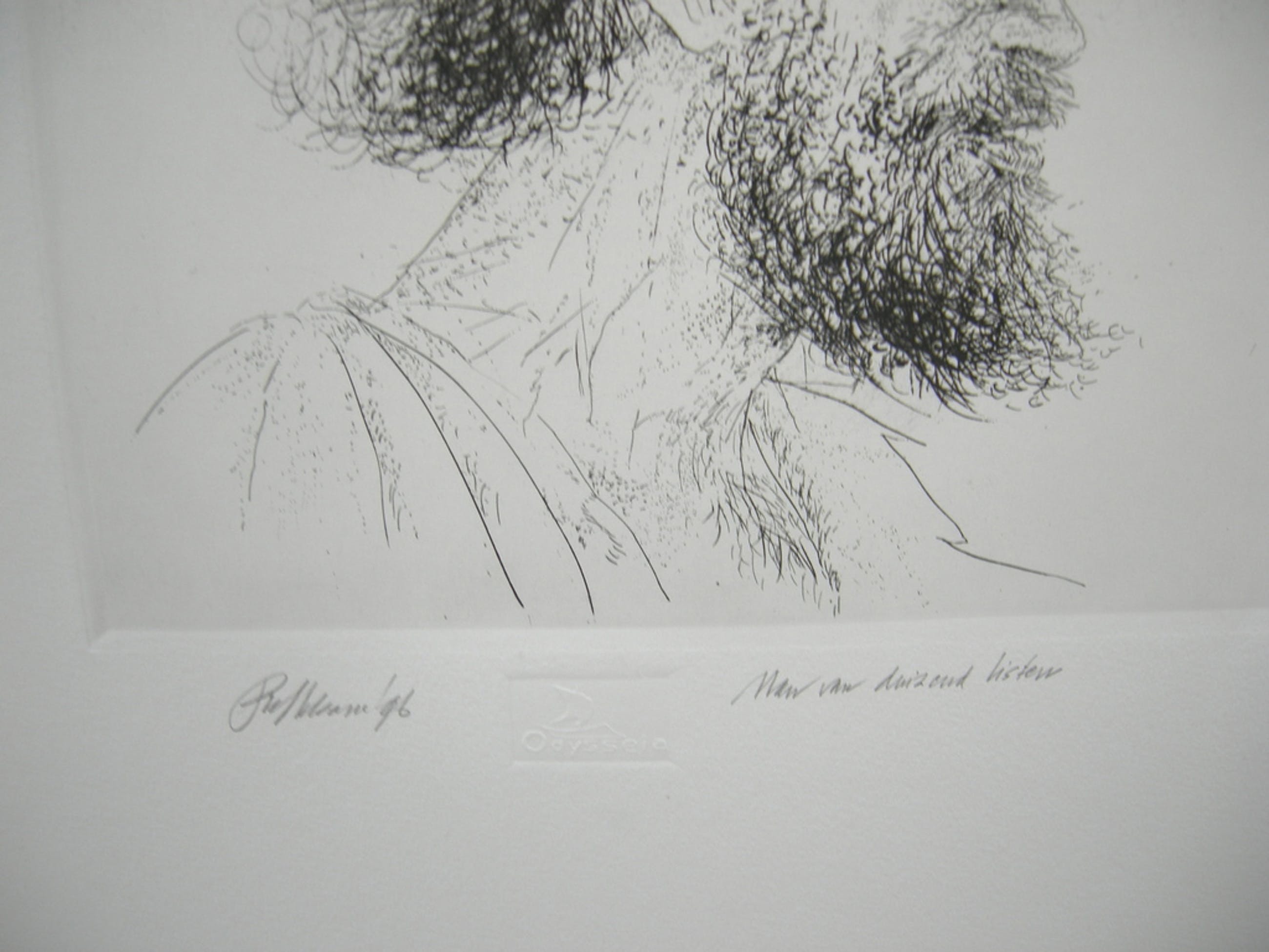 gesigneerd in potlood, drukkers exemplaar (staat vermeld onder de prent)