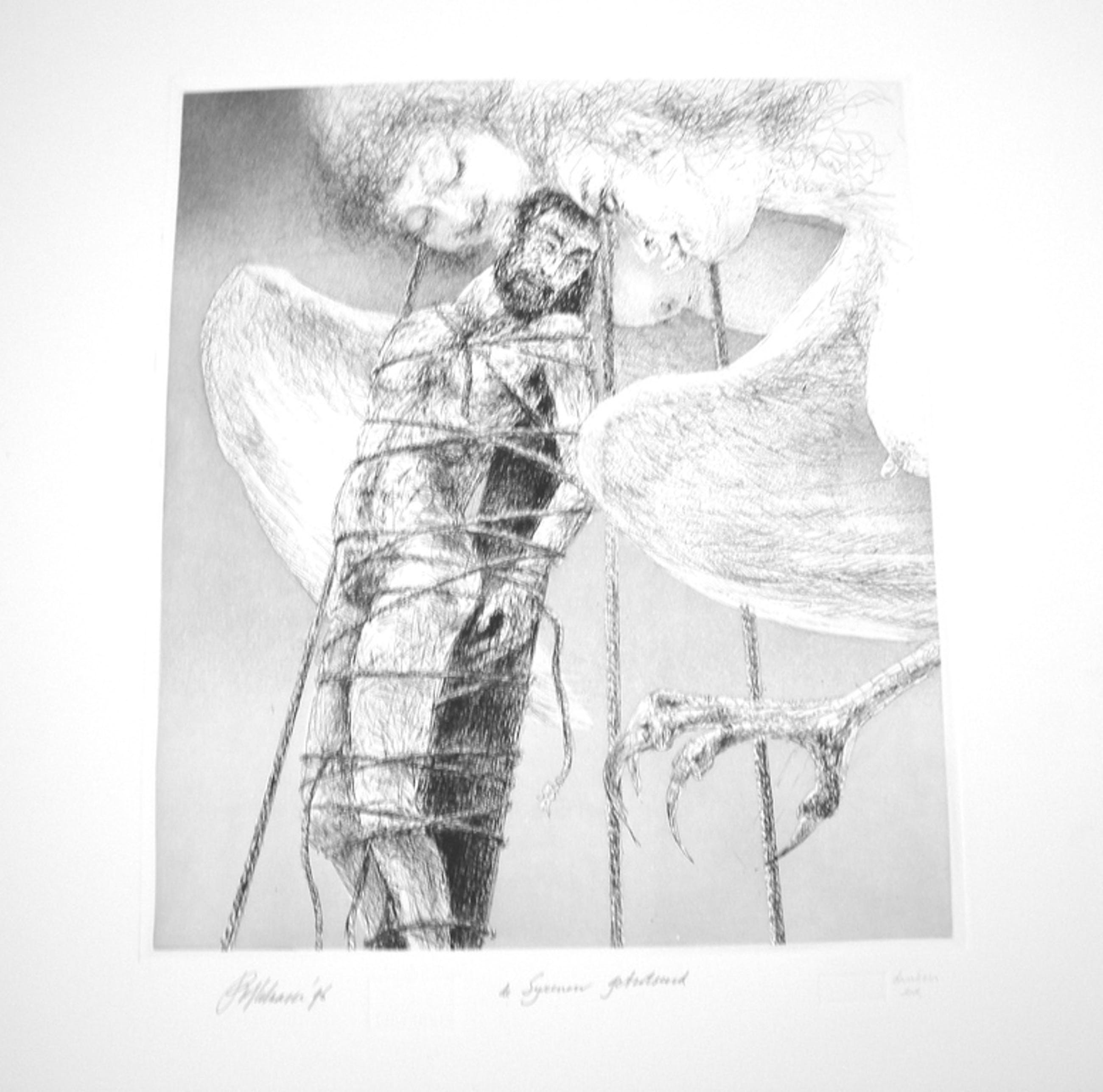 uit de serie Odysseia (Homerus), 1996, met potlood gesigneerd. Drukkersexemplaar. Gedrukt op Hahnemühle. Beeldformaat 350 x 300 mm., papierformaat 650 x 505 mm.
