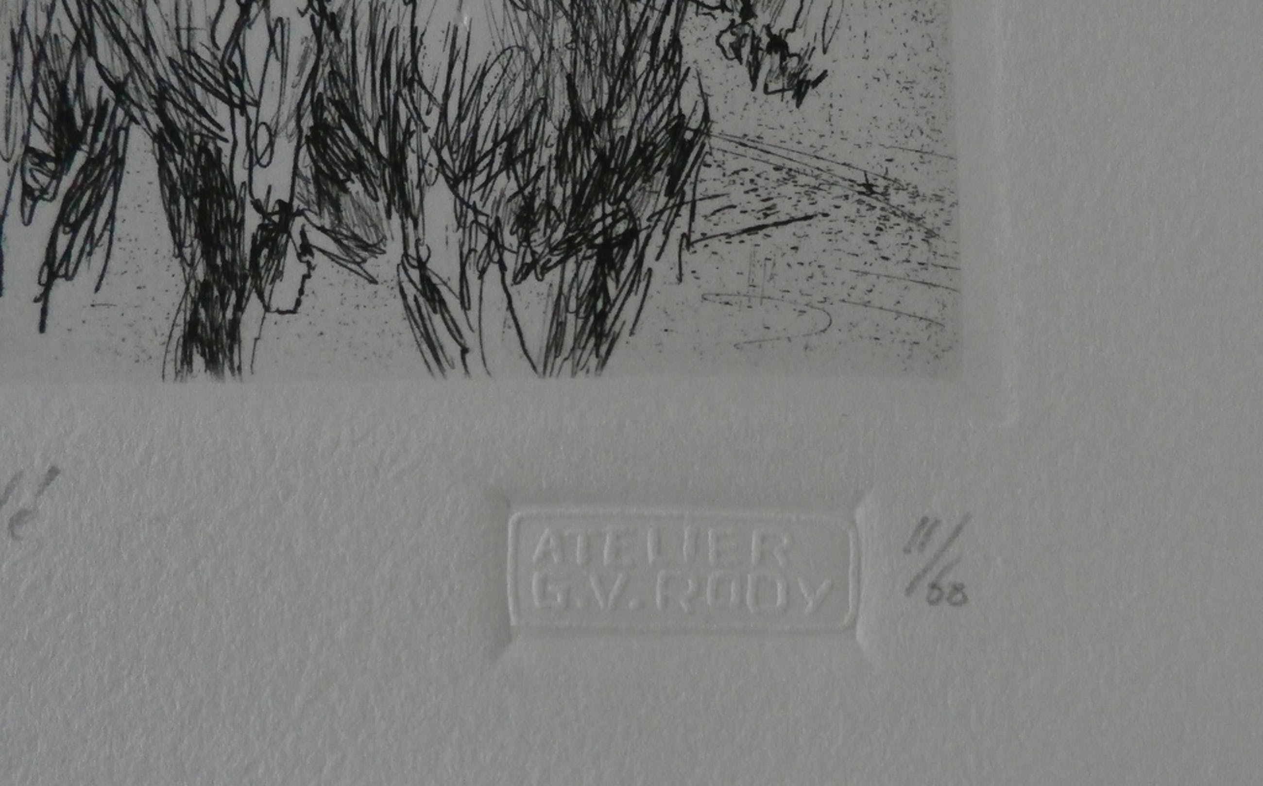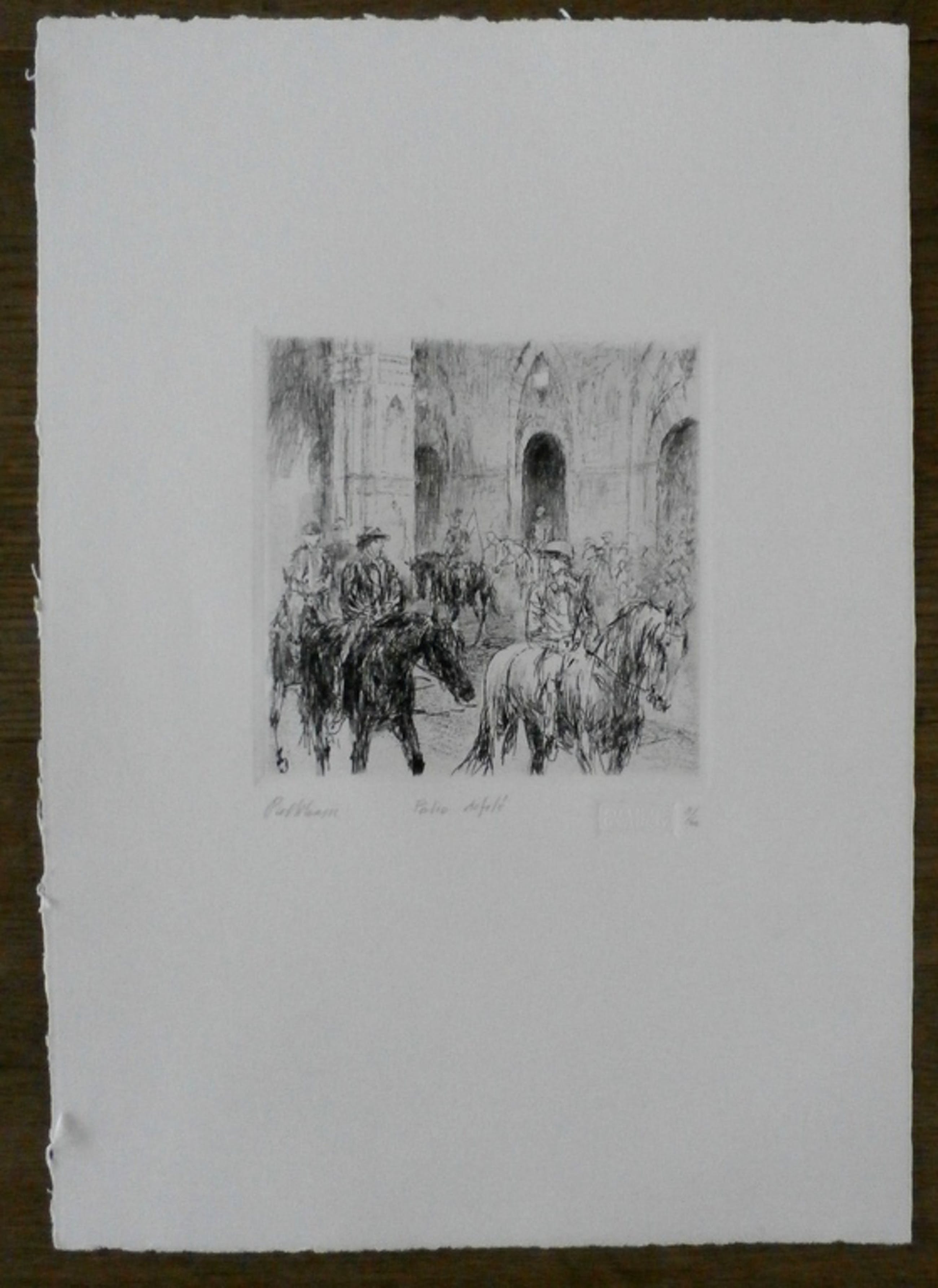 Ets van Piet Klaasse. Titel: Patio Defile. Nummer: 11/60. Afmetingen blad: H39.5 x b28.5. Afmetingen voorstelling H14 x b14. Het werk is linksonder gesigneerd door de kunstenaar. Voorzien van een stempel van Atelier G.V Rooy. De authenticiteit van het aangeboden werk wordt voor 100% gegarandeerd. Een certificaat van echtheid kan, op aanvraag, worden meegestuurd. Conditie: in goede staat.
