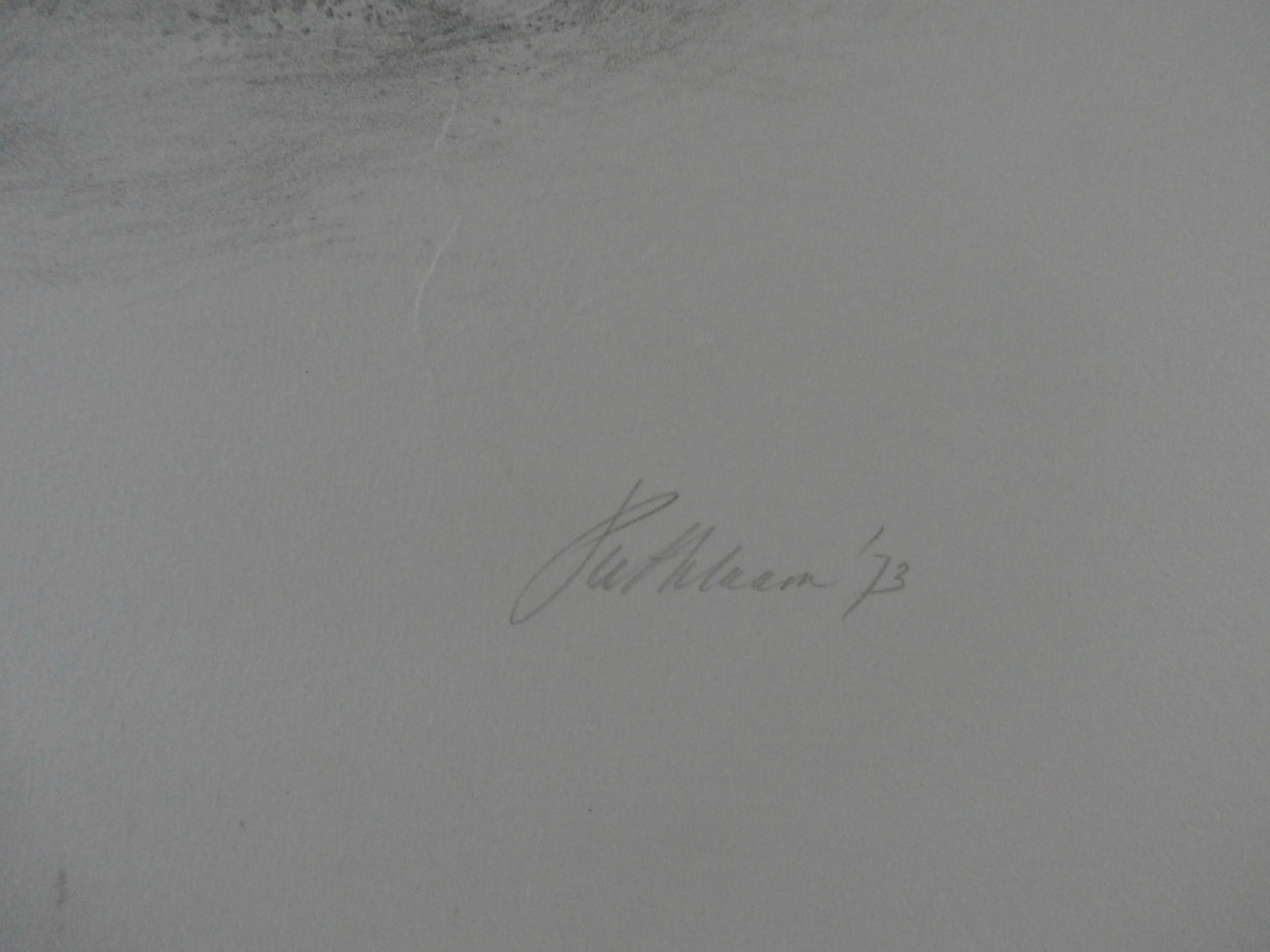 Litho van Piet Klaasse. Met opdracht: "Voor Jan". Jaar: 29 december 1973. Afmetingen blad: H57 x b79. Afmetingen voorstelling H32 x b49. Het werk is rechtsonder gesigneerd door de kunstenaar. De authenticiteit van het aangeboden werk wordt voor 100% gegarandeerd. Een certificaat van echtheid kan, op aanvraag, worden meegestuurd. Conditie: in goede staat. Er zit een klein scheurtje linksboven en wat verkleuring op de rand. Goed ingelijst valt dit in de lijst/onder de passepartout.