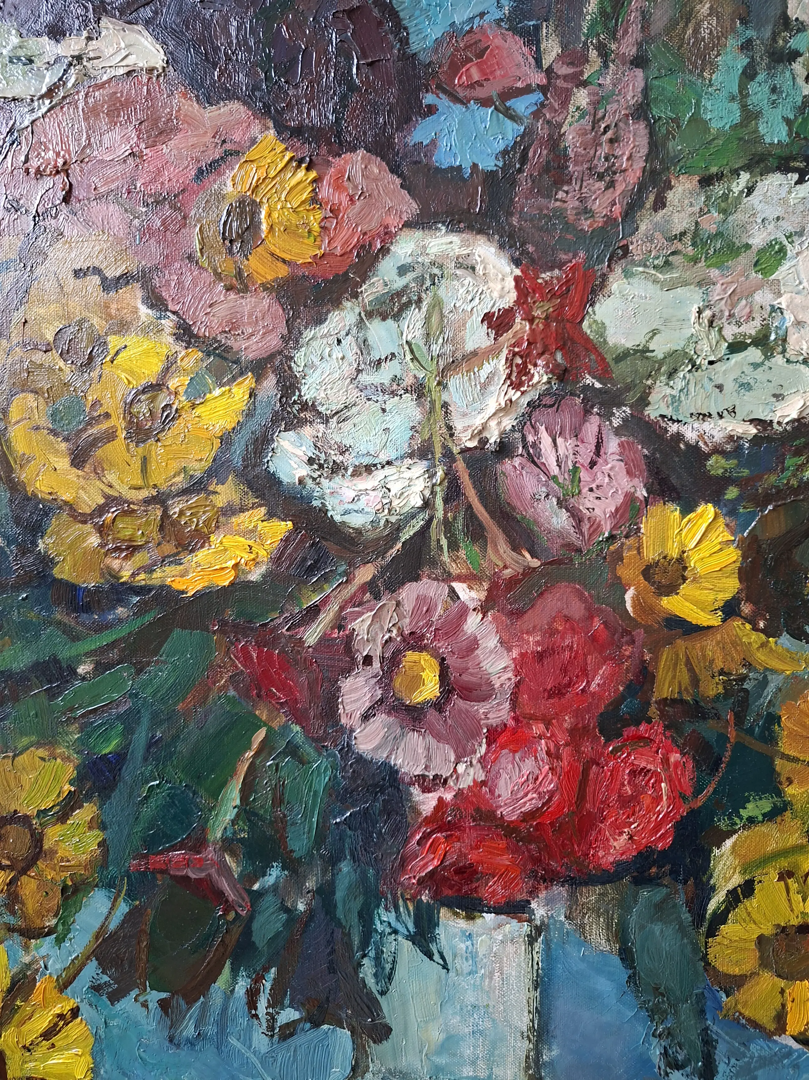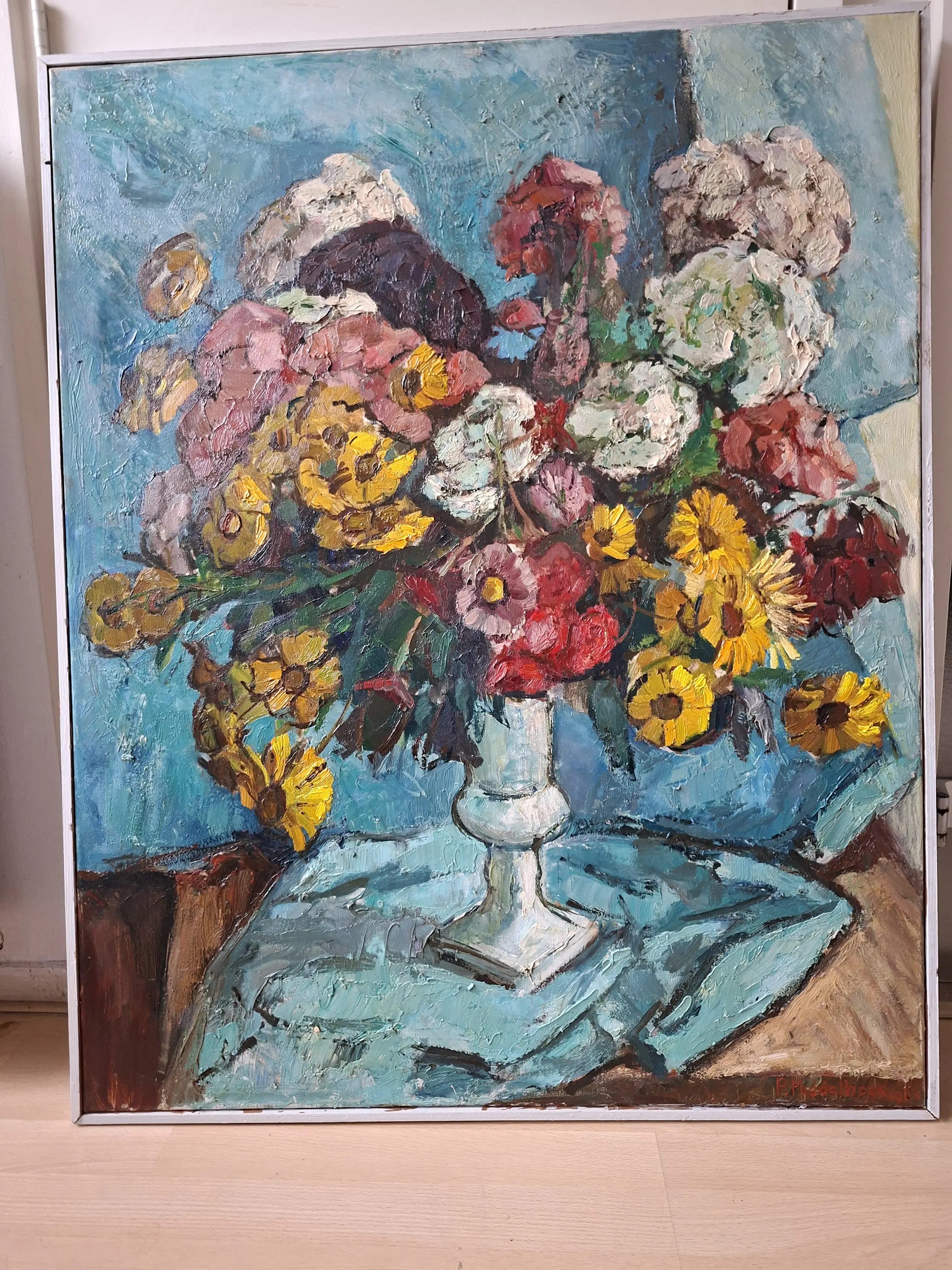 Vaas met bloemen. Conditie goed ( zie restauratierapport )