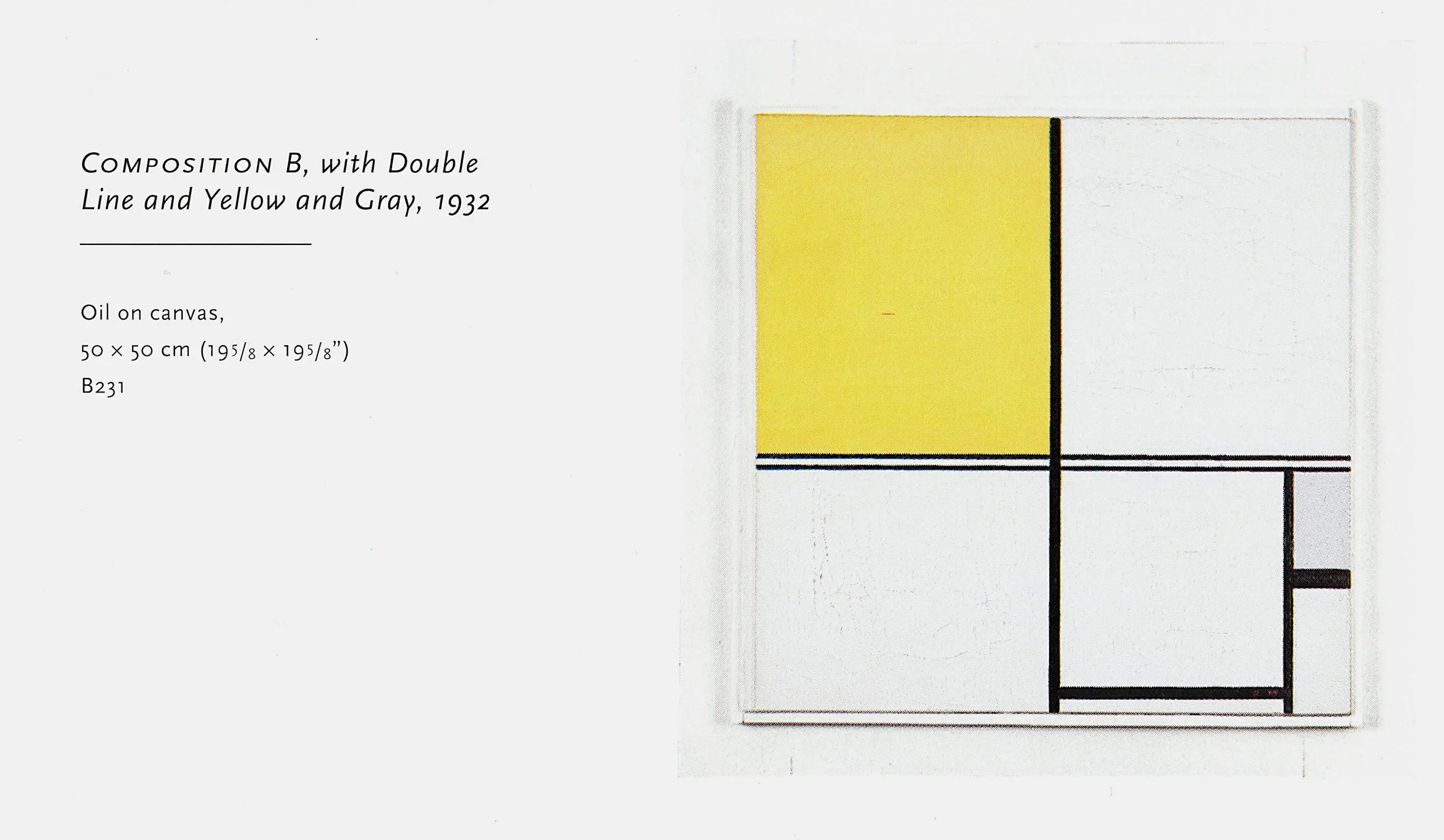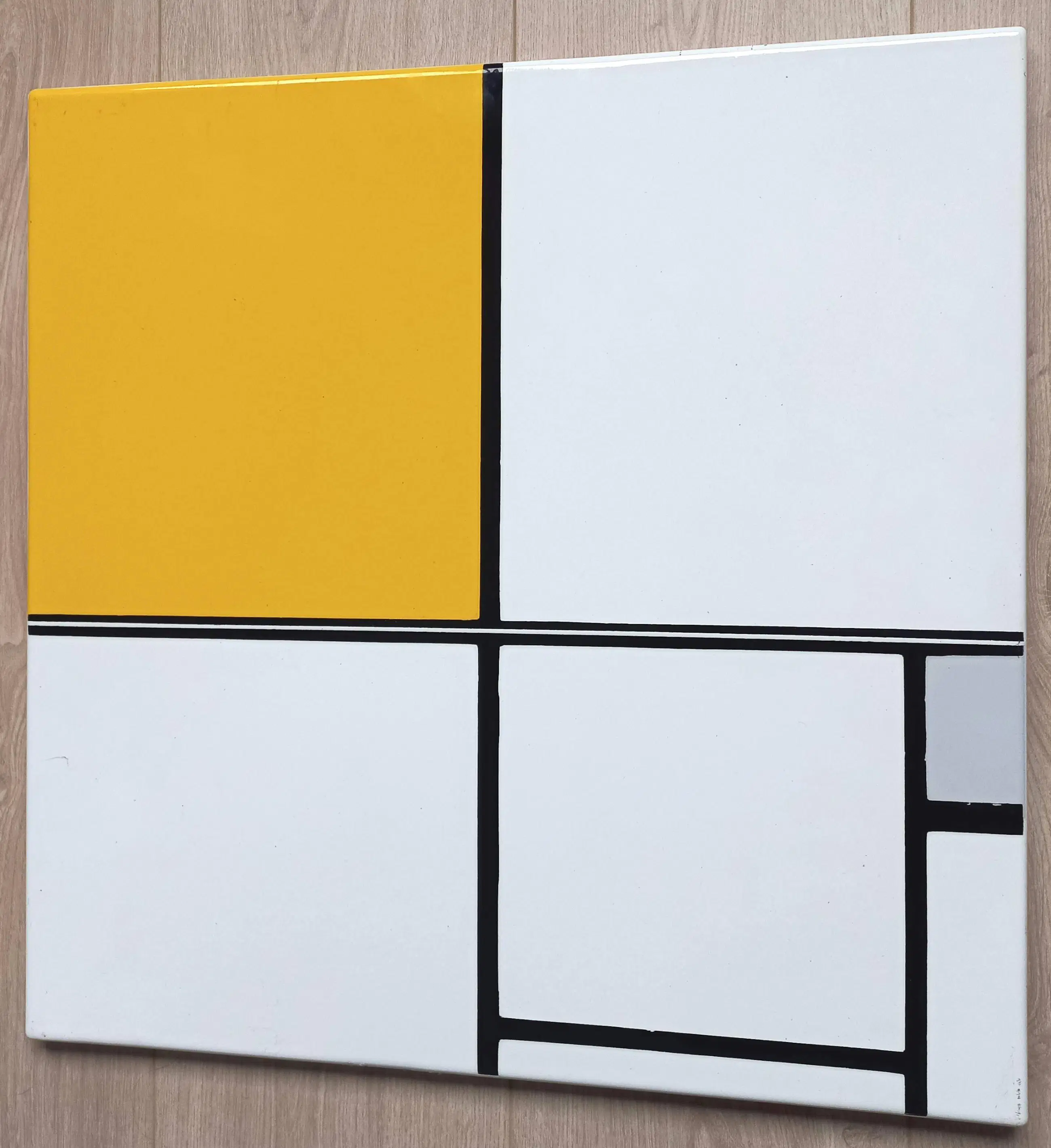Dit is één van die werken. Een exacte replica in emaille van het wereldberoemde Composition B with Double Line and Yellow and Gray uit 1932. Emaille op metalen plaat, op ware grootte van het origineel. In zeer goede conditie. Literatuur: Catalogue Raisonné of the Work of 1911-1944, nr. B231.