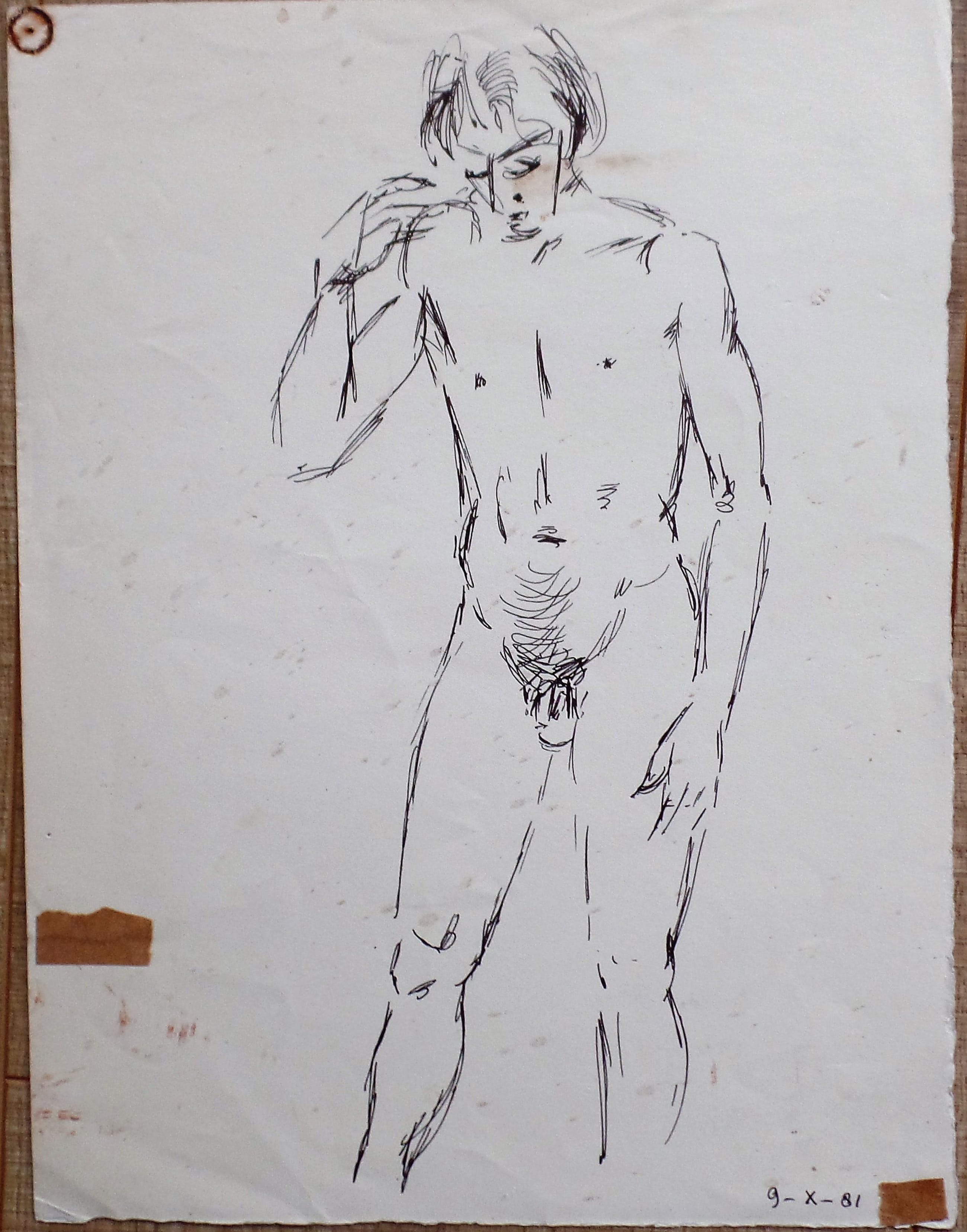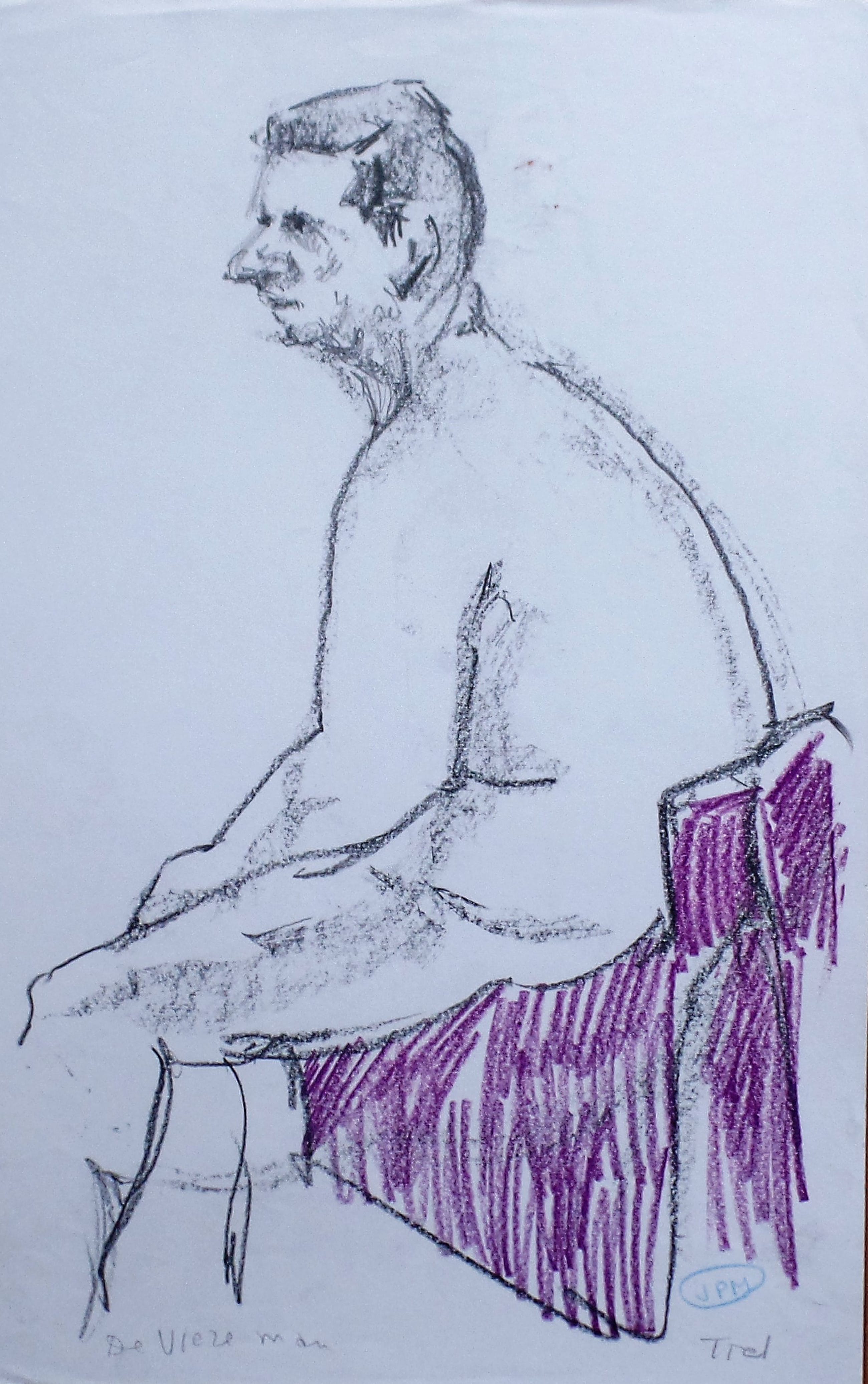 4 x Tekeningen mannelijk naakten1 x 32 x 50 cm.2 x 18 x 30 cm.1 x 24 x 32 cm.1 x gesigneerd met monogram JPM