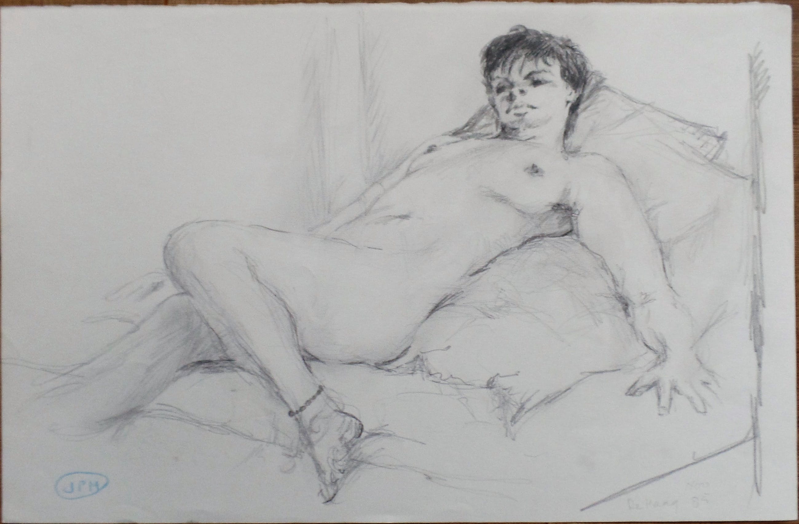 Potlood tekening liggend naaktGesigneerd met monogram JPM ( Piet Mulder )Gedateerd 1985Mooie tekening in goede conditie.