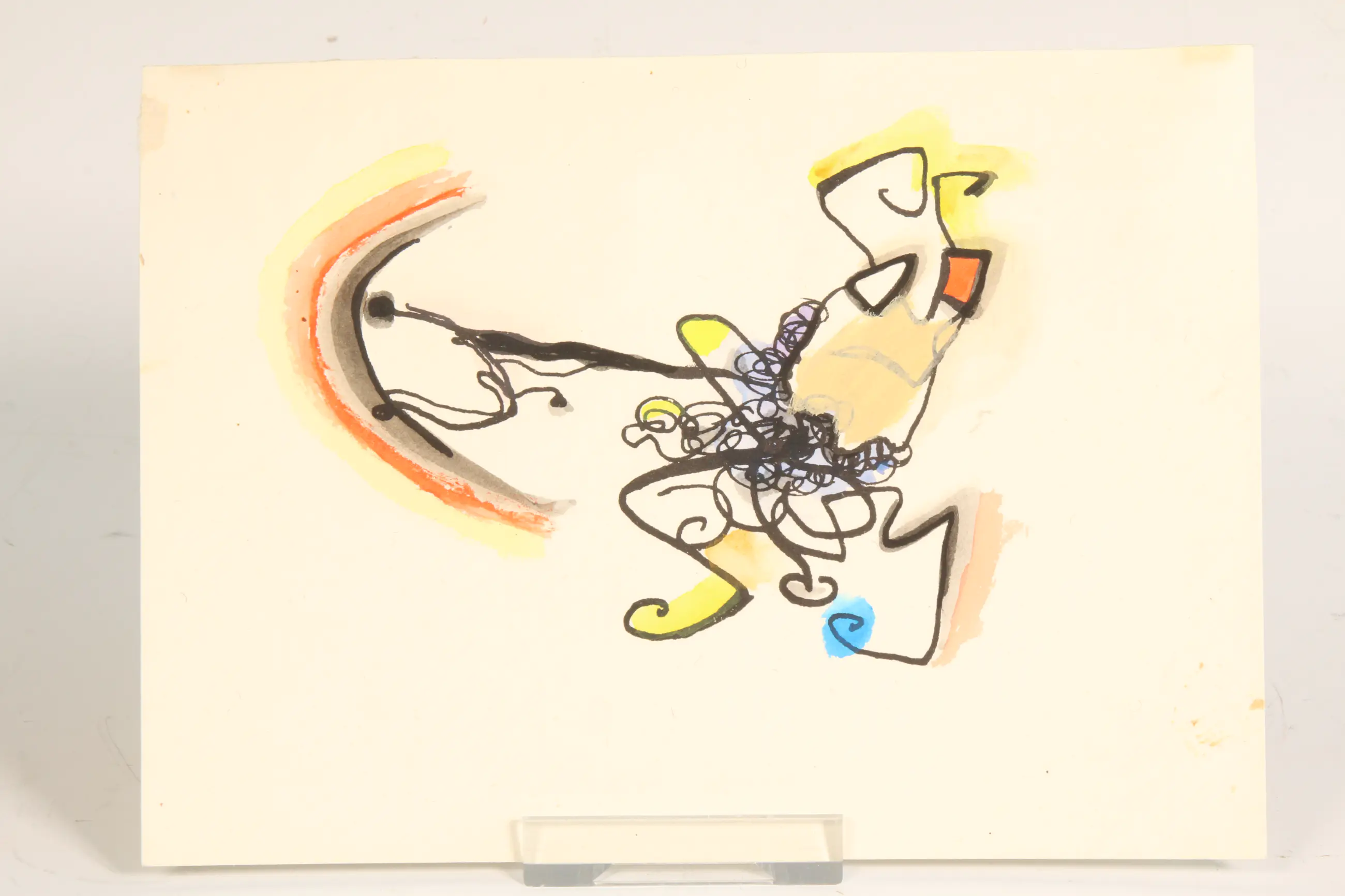 Mooie, zelden aangeboden, gesigneerde compositie van Piet Ouborg. Ouborg was sterk beinvloed door Joan Miro, maar tijdens en net na de Tweede Wereldoorlog ging hij veel om met kunstenaars uit de CoBrA groep.