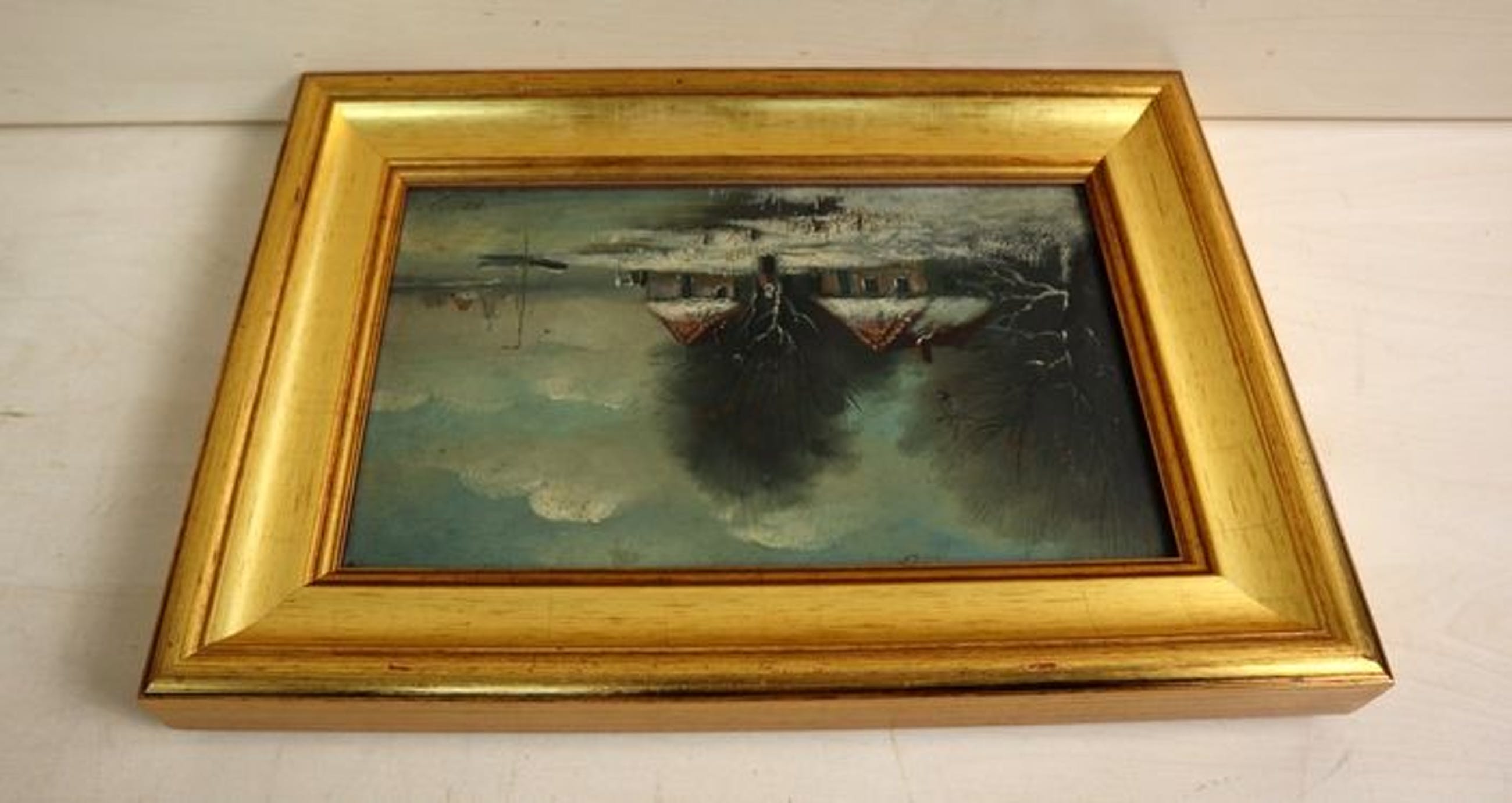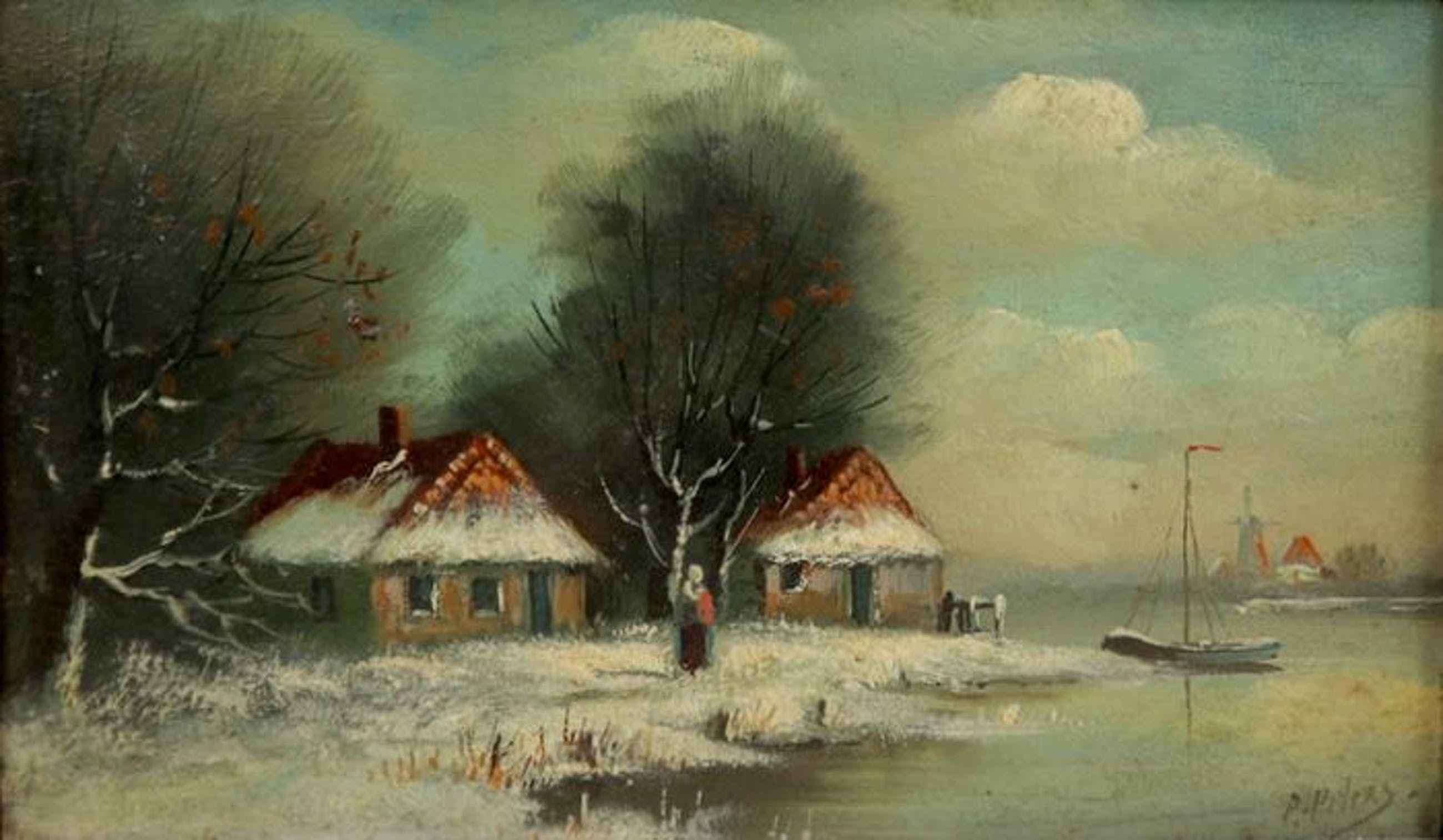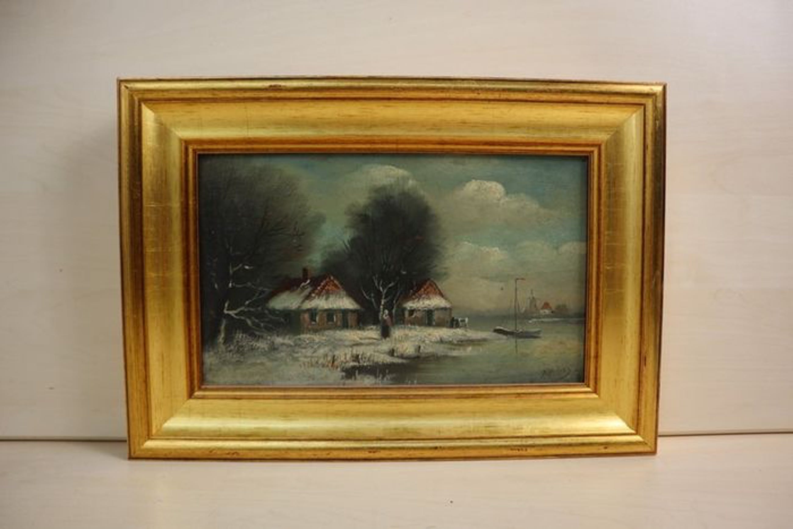 Kunstenaar:P. PetersTitel van kunstwerk:Wintergezicht met boerderij aan waterJaar:20e eeuwTechniek:Olieverf op houtvezelplaatHandtekening:HandgesigneerdStaat:In goede staatVerkoop met lijst:JaWeight:700 gAfbeeldingsgrootte:16×25 cmTotale afmetingen:23.5×33.5×4 cm