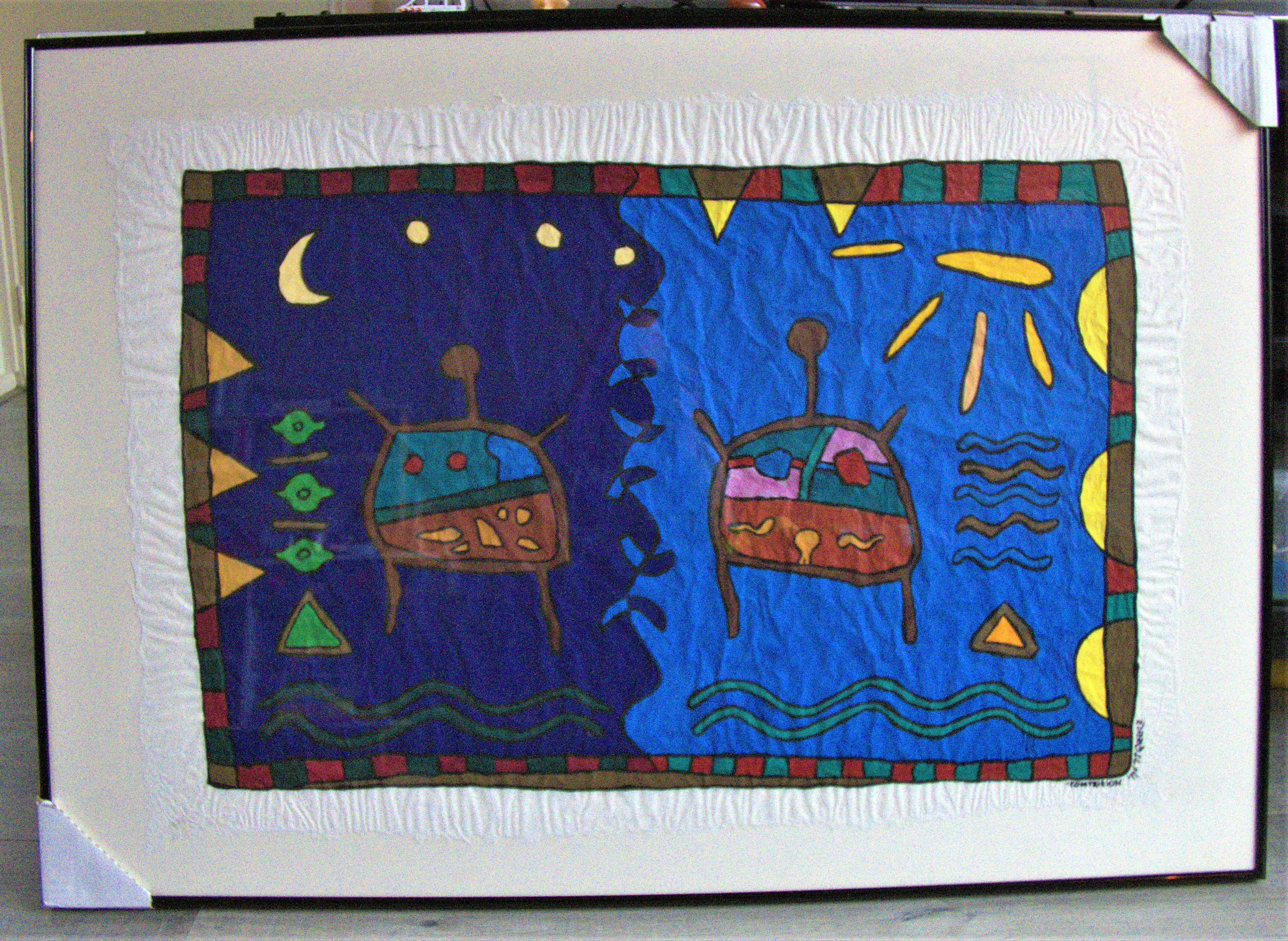 Mooie heldere kleuren (helderder dan op de foto`s) en fraaie figuren. Werk is in zeer goede staat. Ik bied nog een werk van Quekel aan, deze heeft de naam "Hello to Eddy".