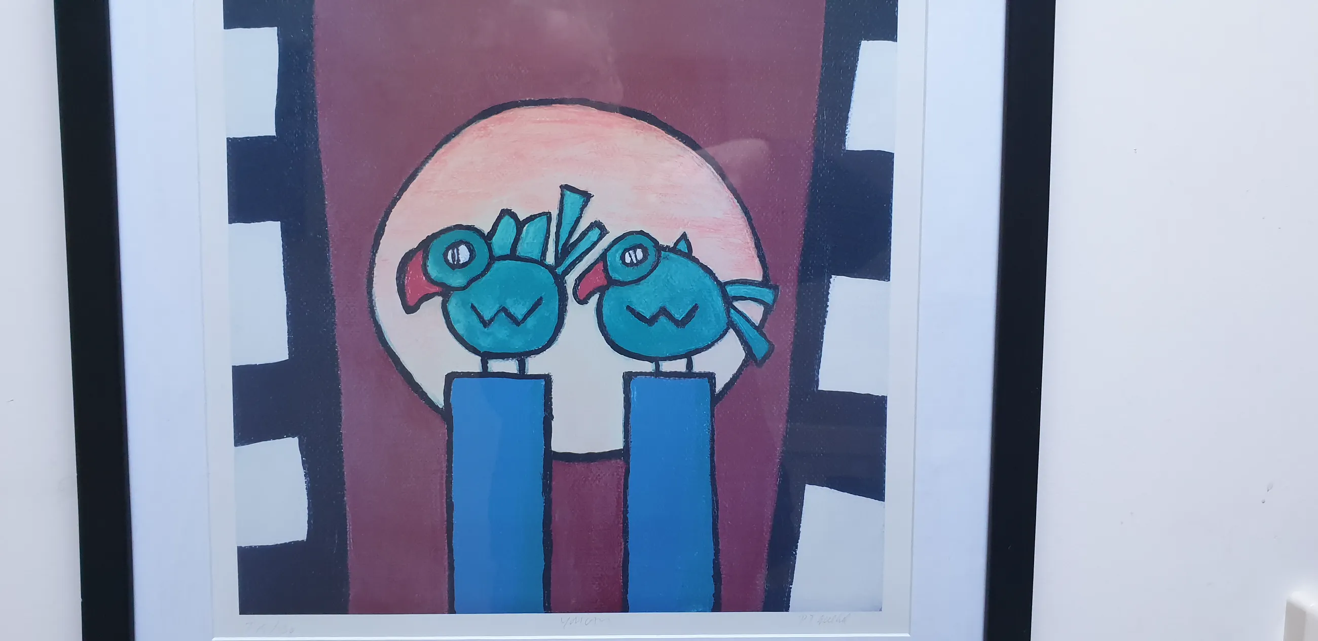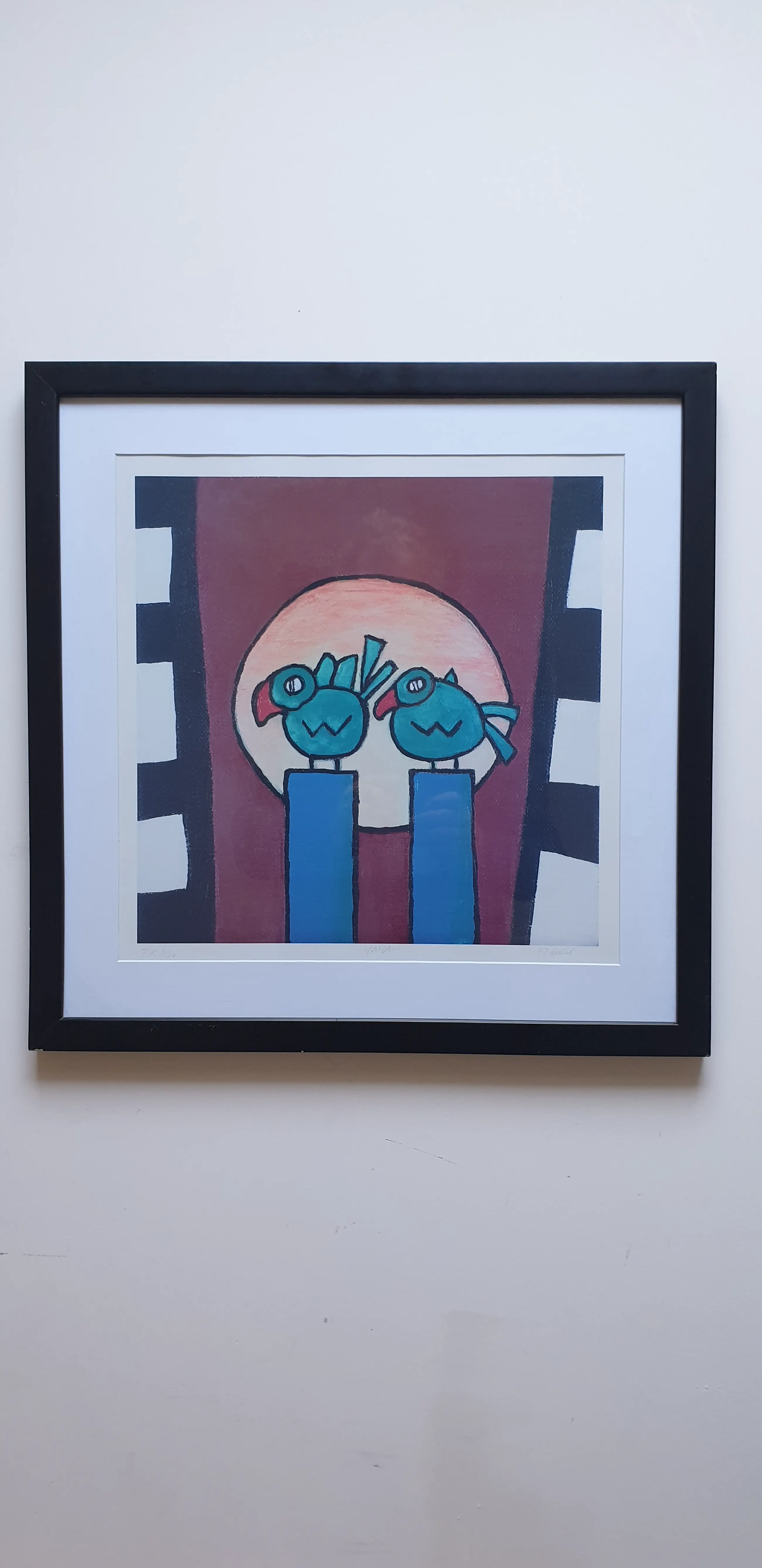 Vrolijk en kleurrijk werk van Piet Quekel. Zijn werk is heel helder met veel kleuren en sterk van vorm en expressie. Dit werk (15/130) is getiteld (potlood midden onder) 'YouCan'. Gesigneerd in potlood rechtsonder. Netjes ingelijst achter glas incl. ophangsysteem.