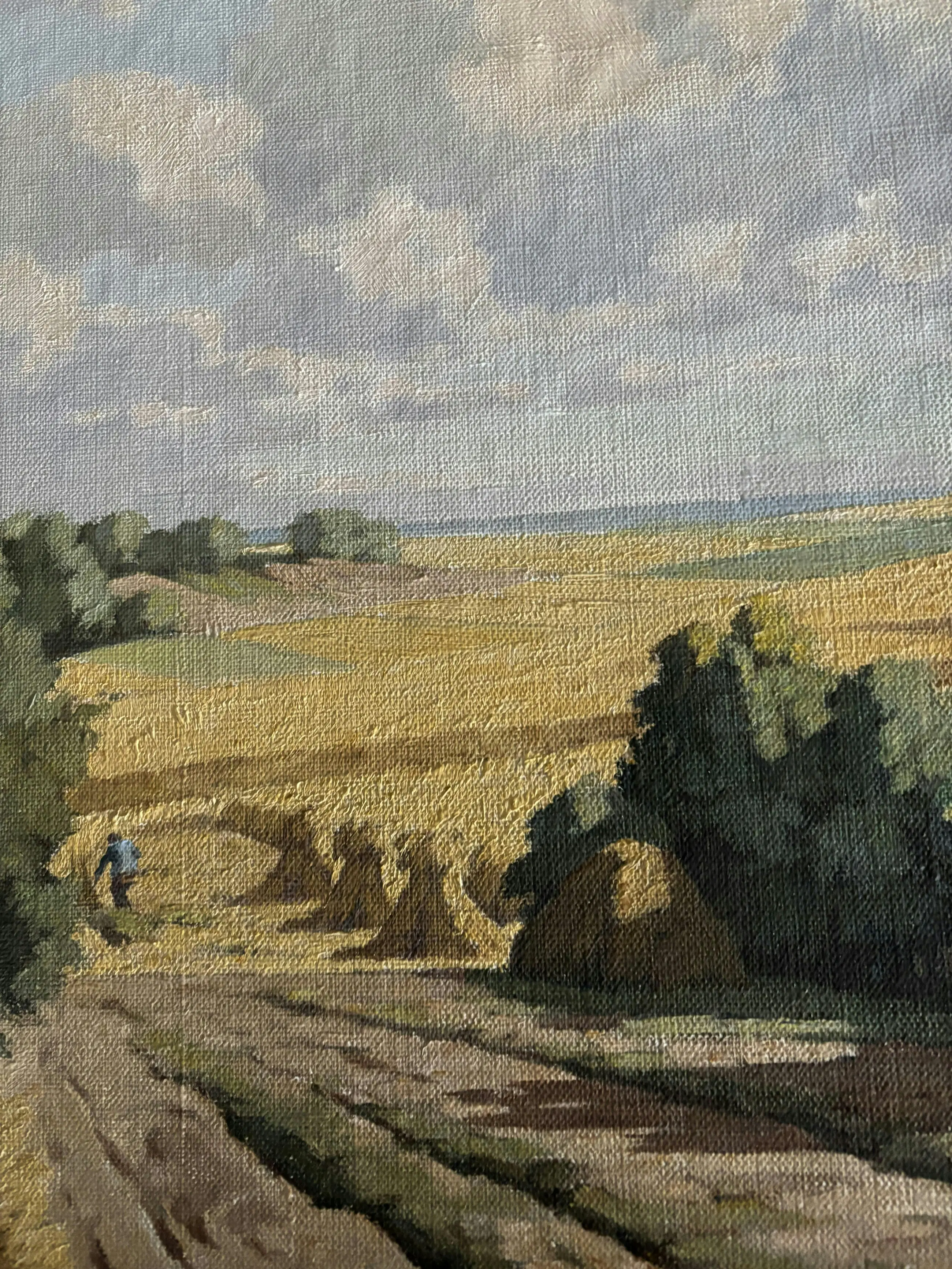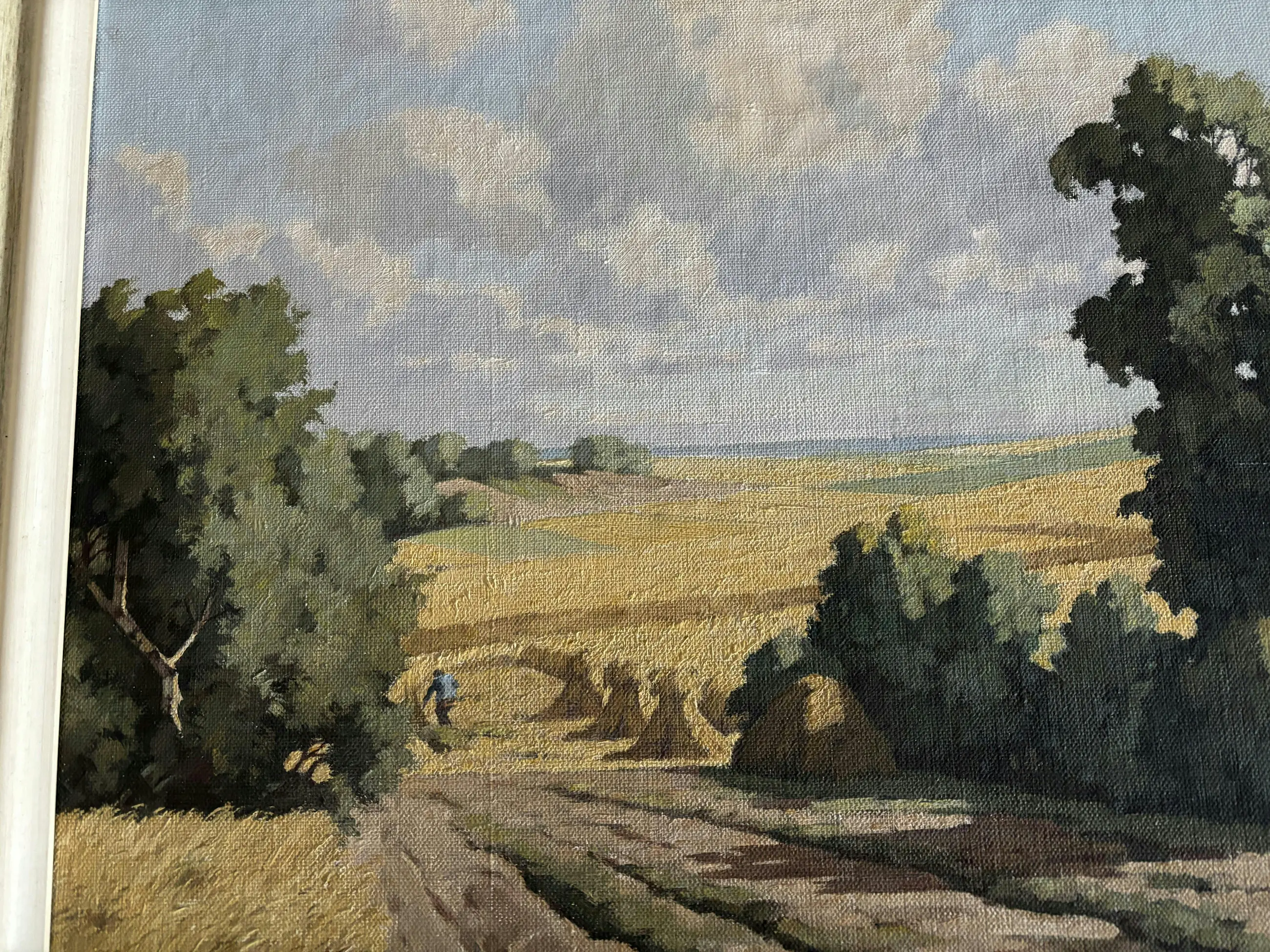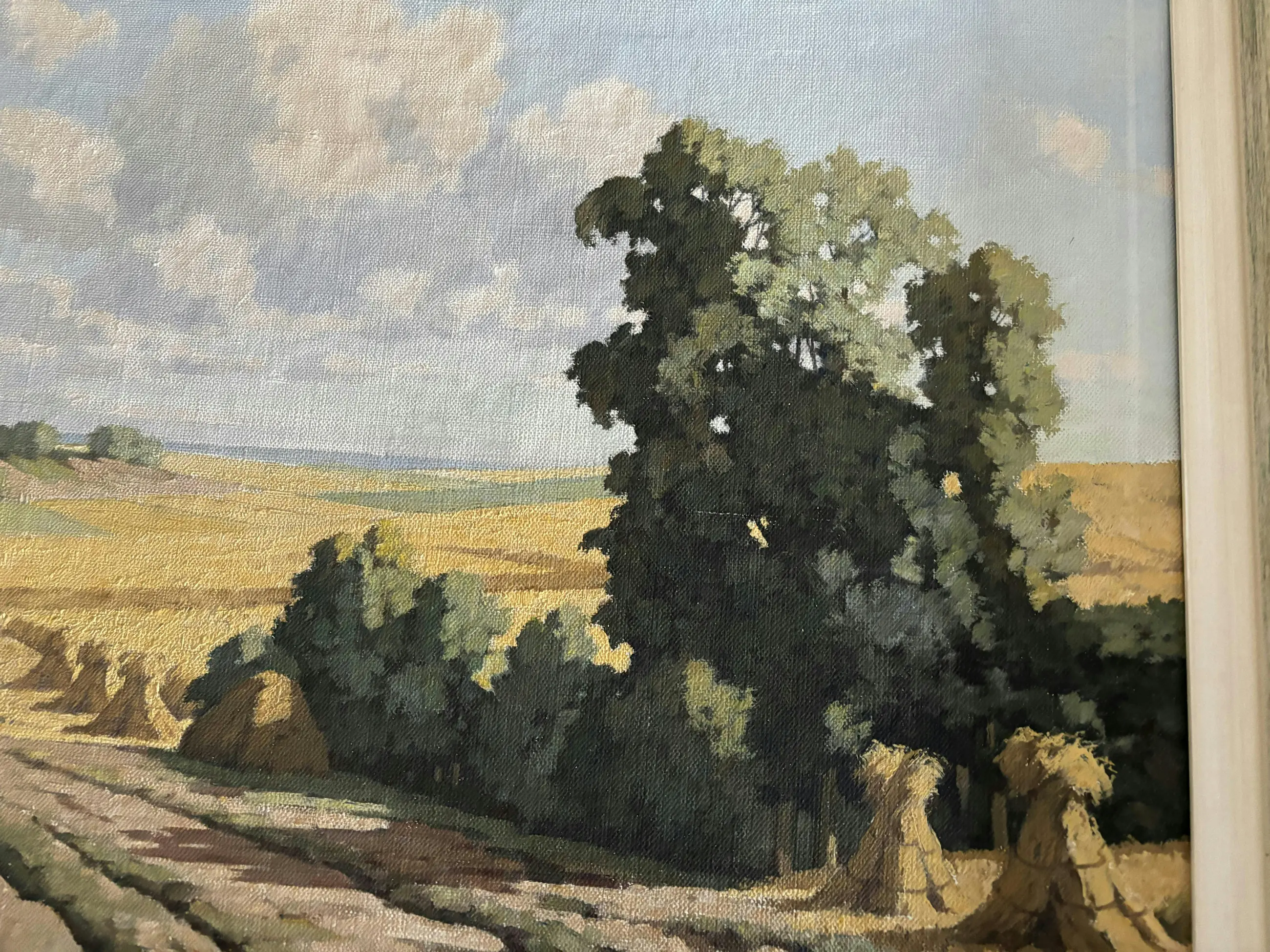 Het aangeboden schilderij is afkomstig van een oudoom, die een vriend was van de schilder Piet Rackwitsz. Via mijn ouders is het in mijn bezit gekomen. Vermoedelijk geschilderd in de periode 1945-1955. Het toont een landschap van een korenveld met bossages.