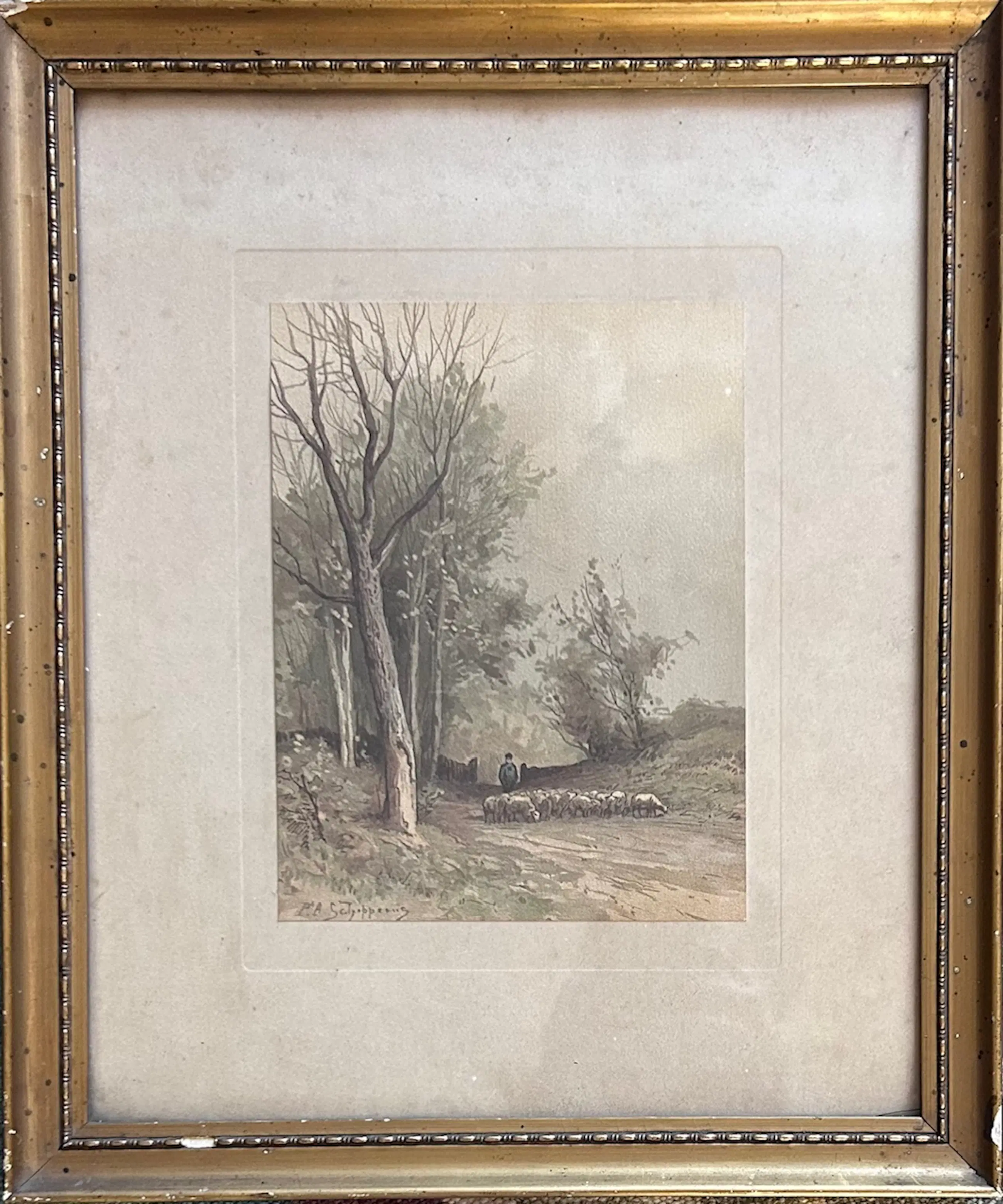 Prachtige tekening/aquarel van Piet Schipperus. Lijkt originele lijst, maar zonder passe-partout. Lijst is licht gebutst. Foto's spreken voor zich.