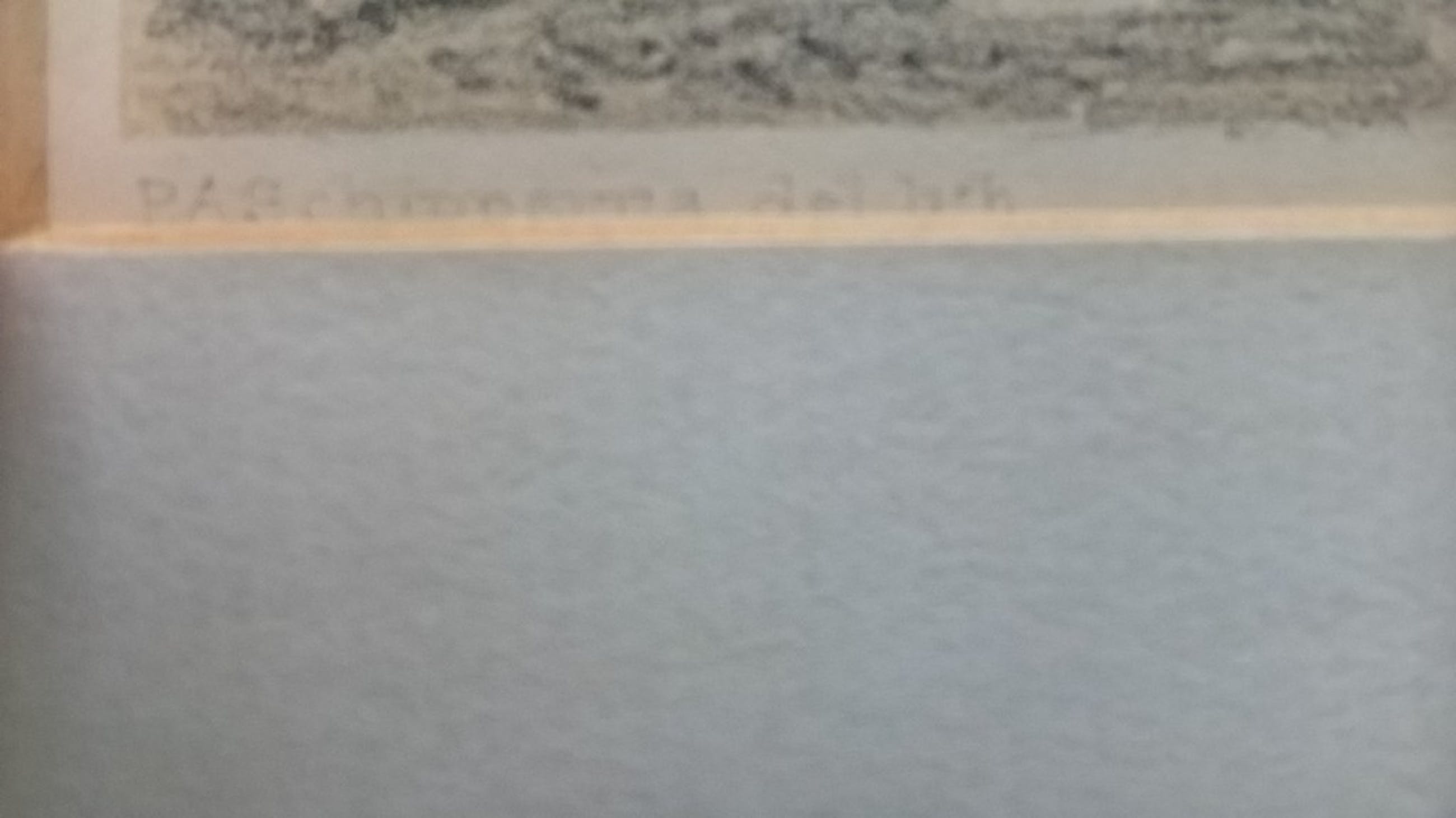 Litho door P A Schipperus. (1840-1929) van de steenen tafel, Bronbeek en Rheedensche veer. Ingelijst in eenvoudig wit lijstje. Formaat lijstje 27 bij 34 cm. In passepartout 15 bij 22 cm in geelbruin-achtige tint afgedrukt. Te Den Haag afgedrukt.