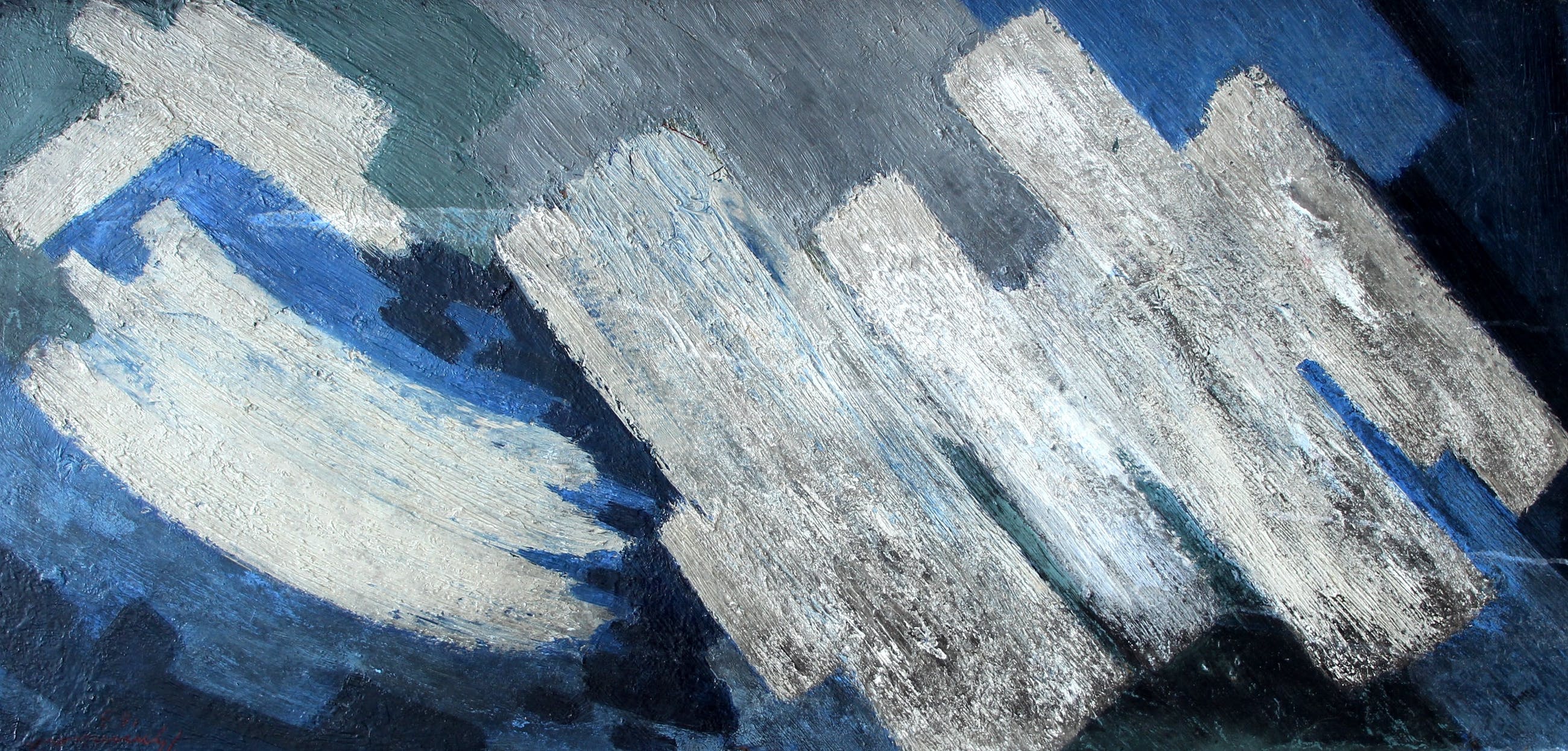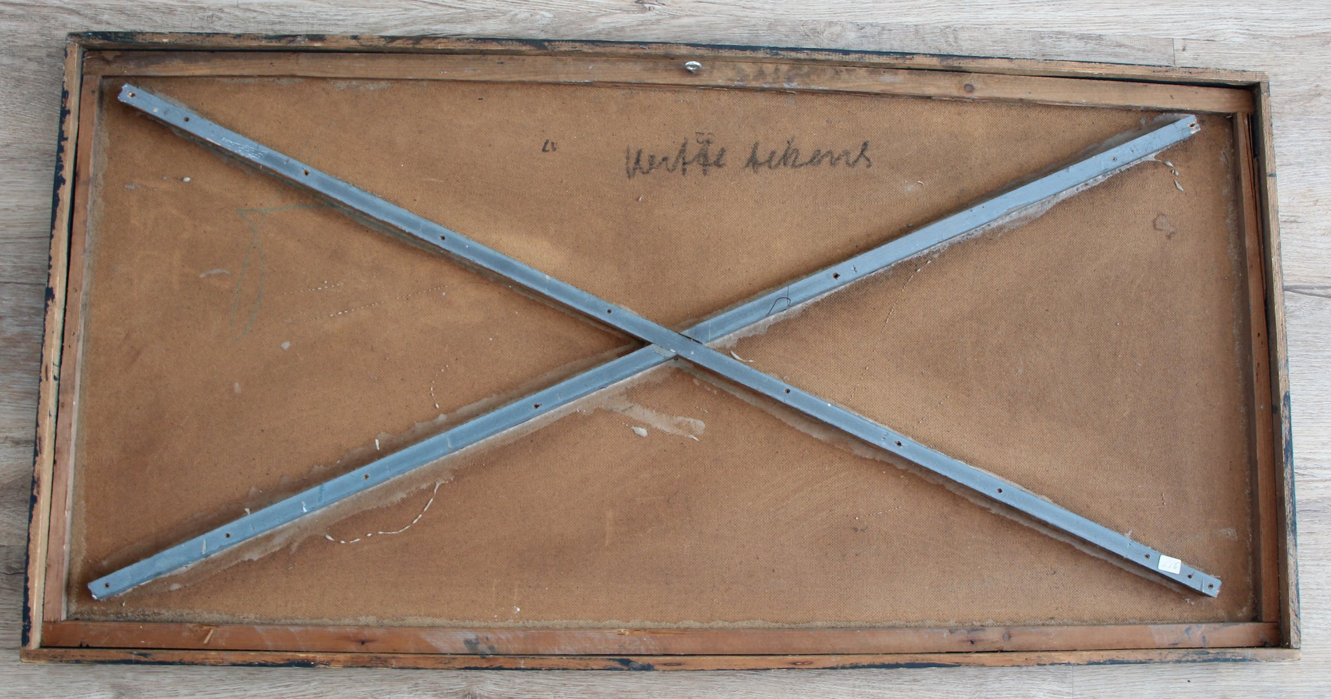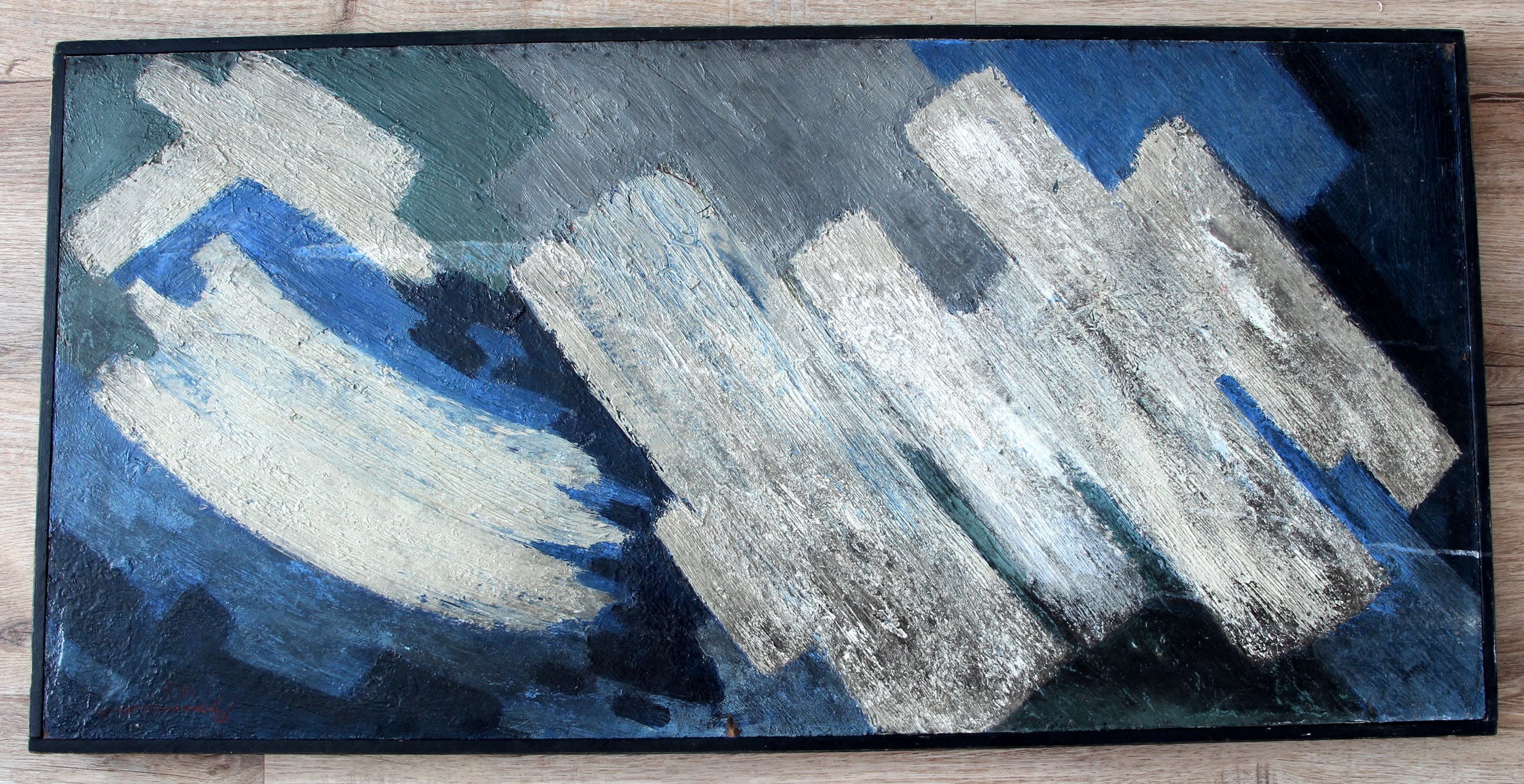 Olieverf op board van Piet Smissaert. Titel: Witte tekens. Afmetingen incl lijst: H51.5 cm x b104cm. Het werk is linksonder, met potlood, gesigneerd door de kunstenaar. De authenticiteit van het aangeboden werk wordt volledig gegarandeerd. Een certificaat van echtheid kan, op aanvraag worden gemaild.