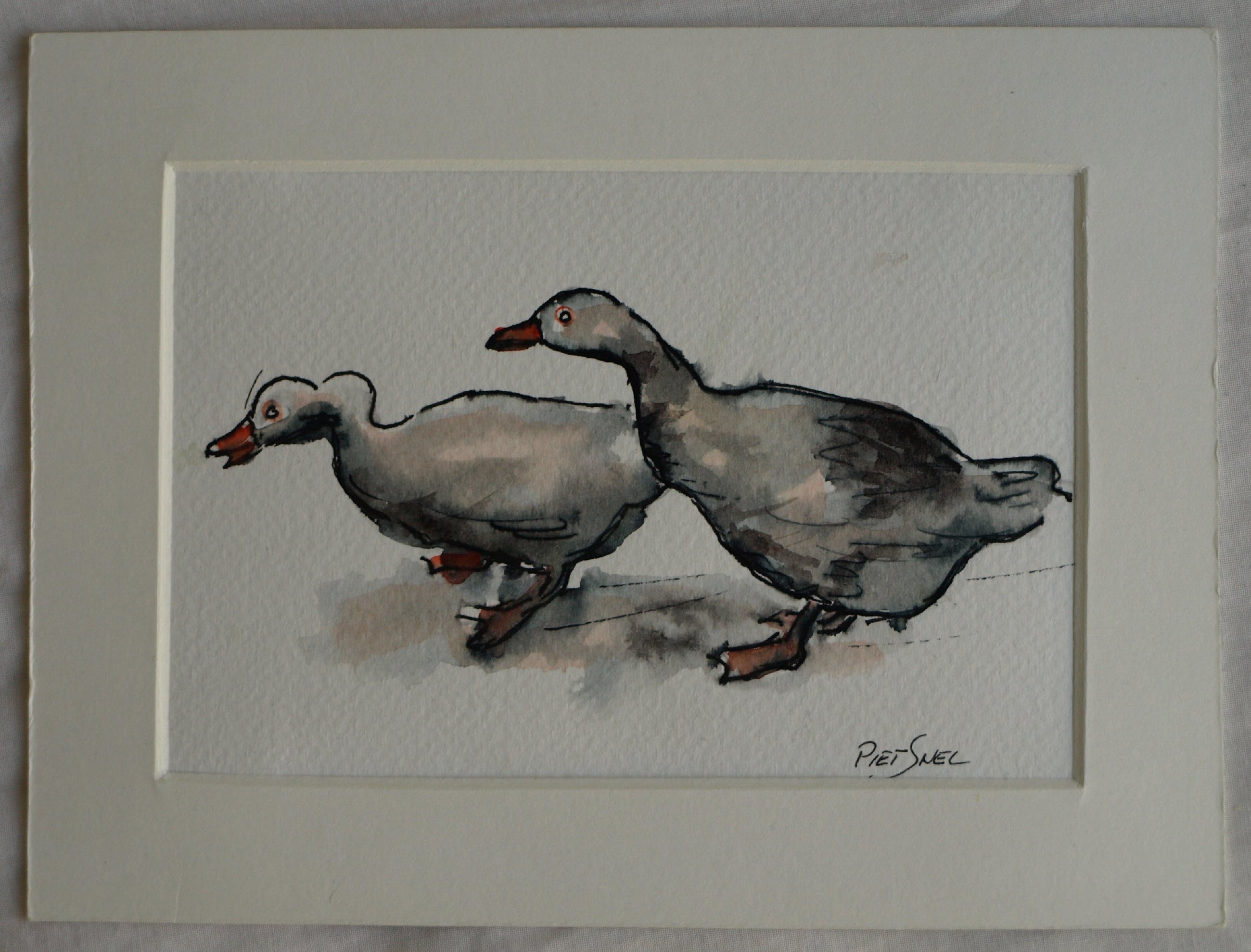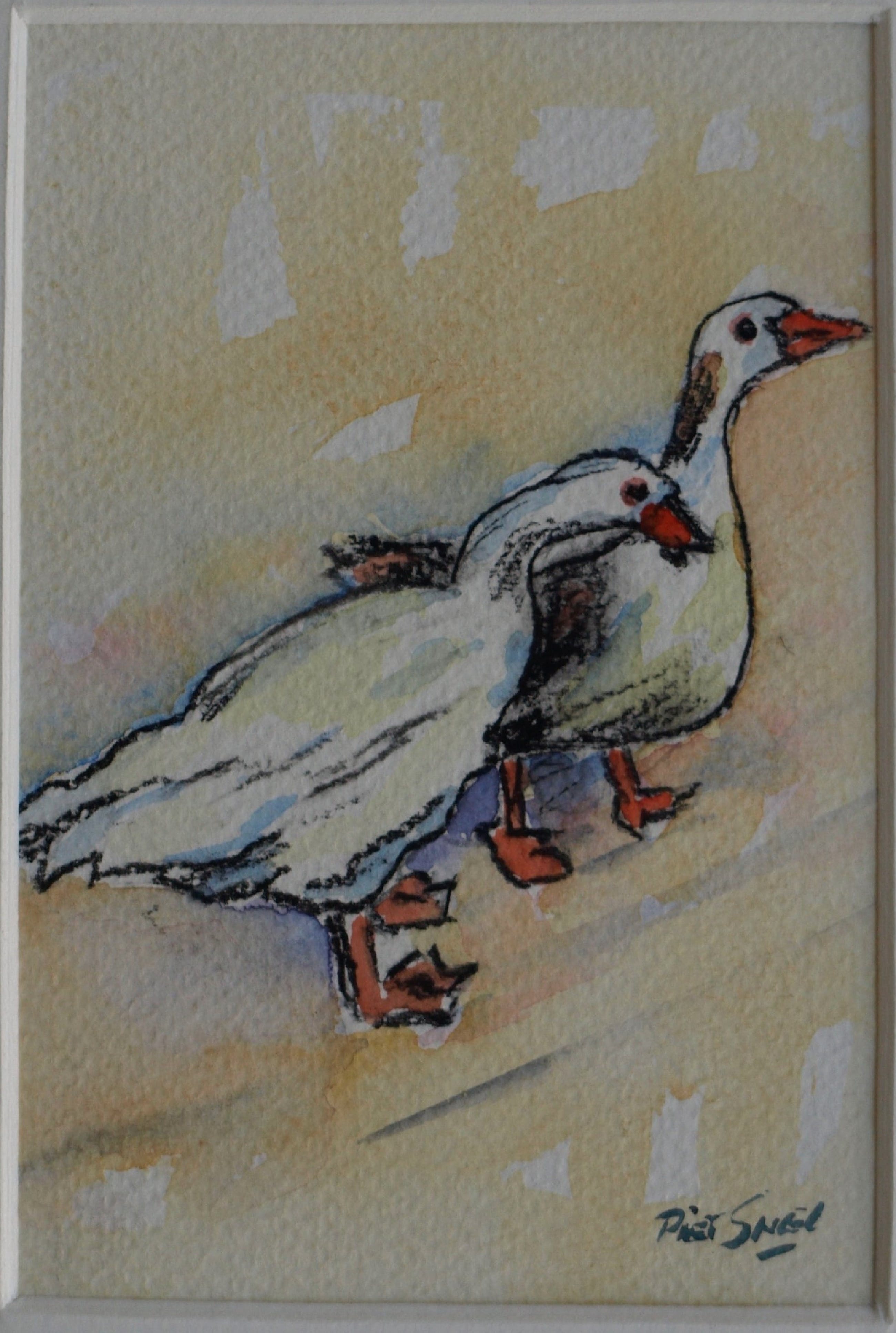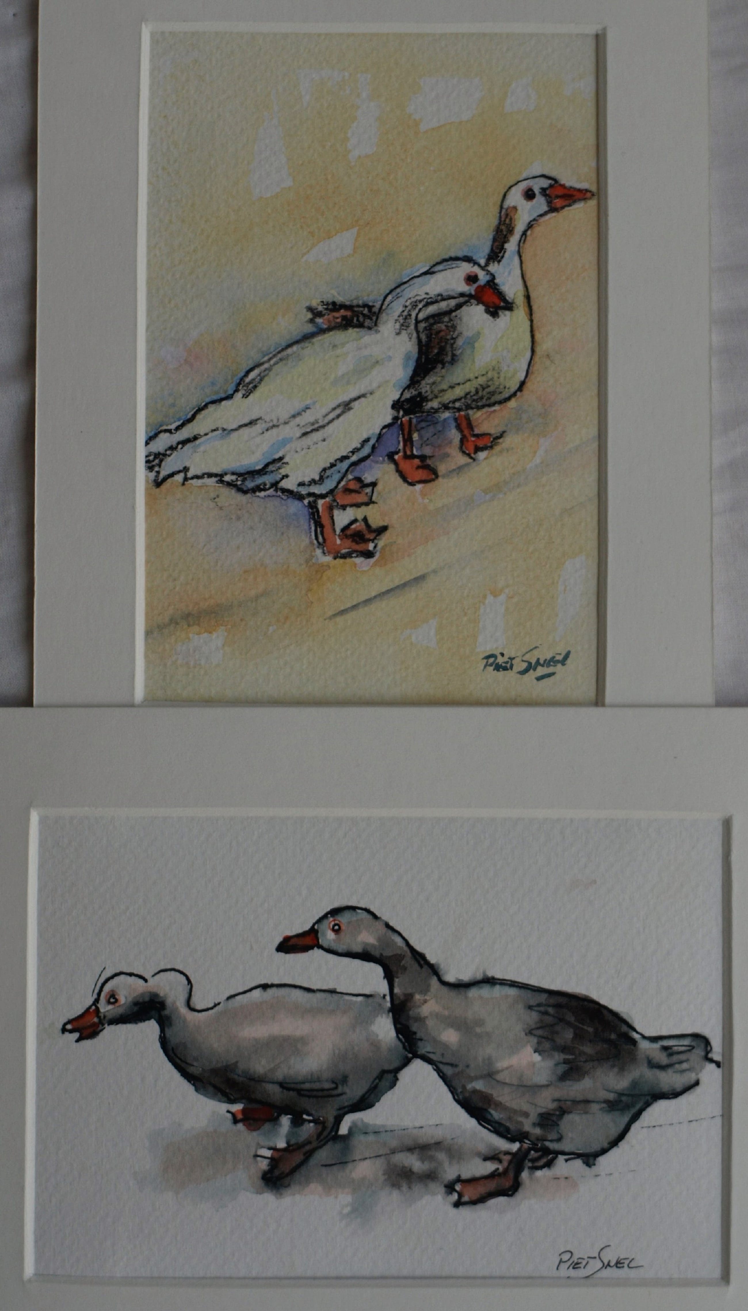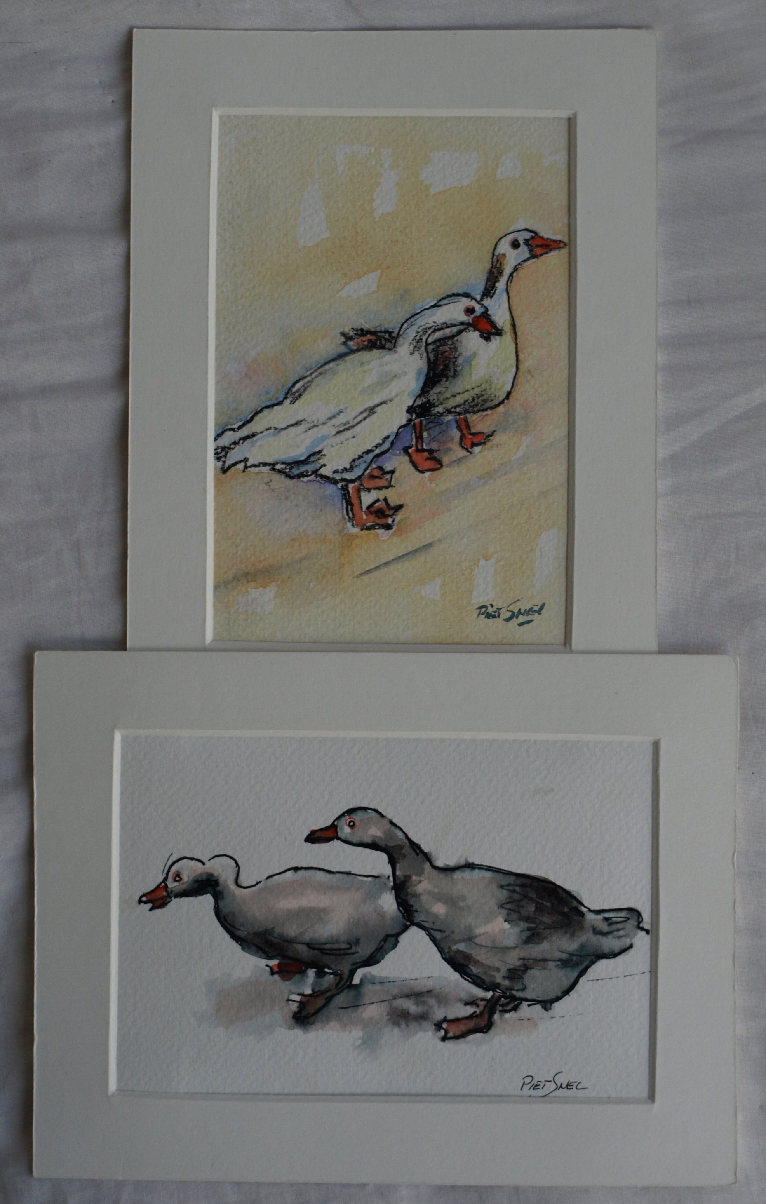 ingelijst. Beide aquarellen hebben wel een passe-partout.