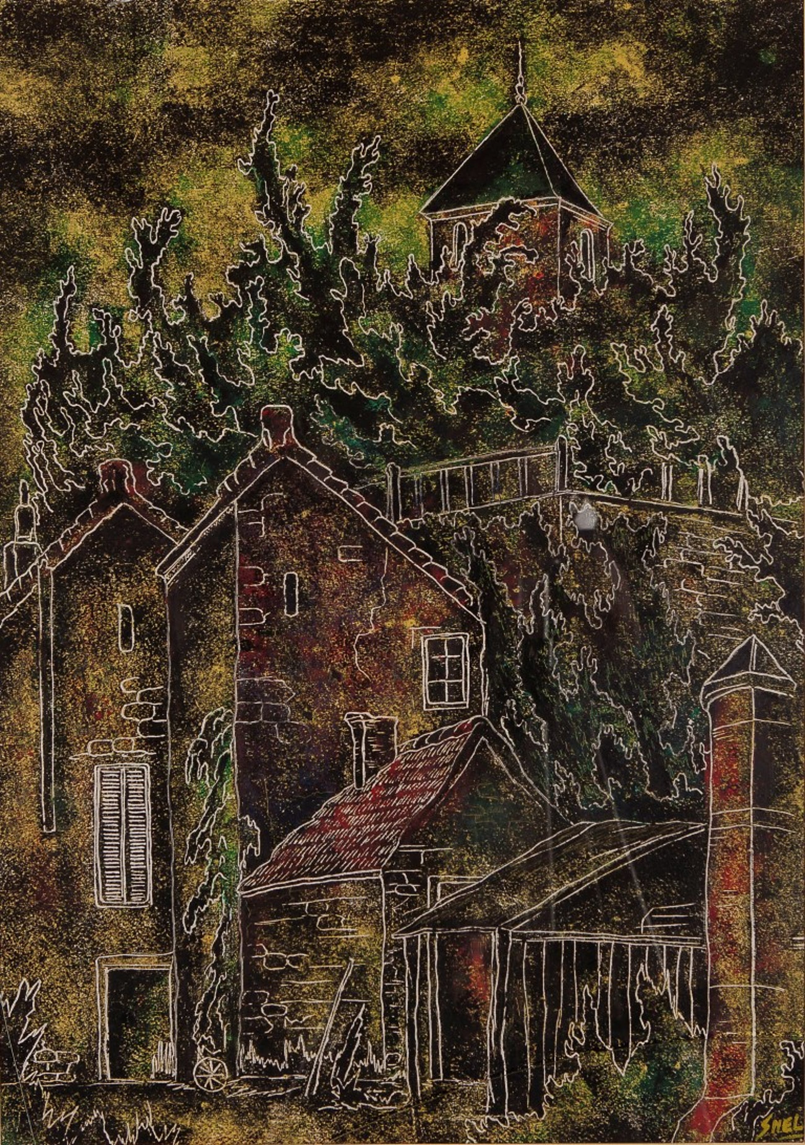 | Het passe-partout is vergeeld, de glasplaat gebroken en de lijst valt uit elkaar. | |