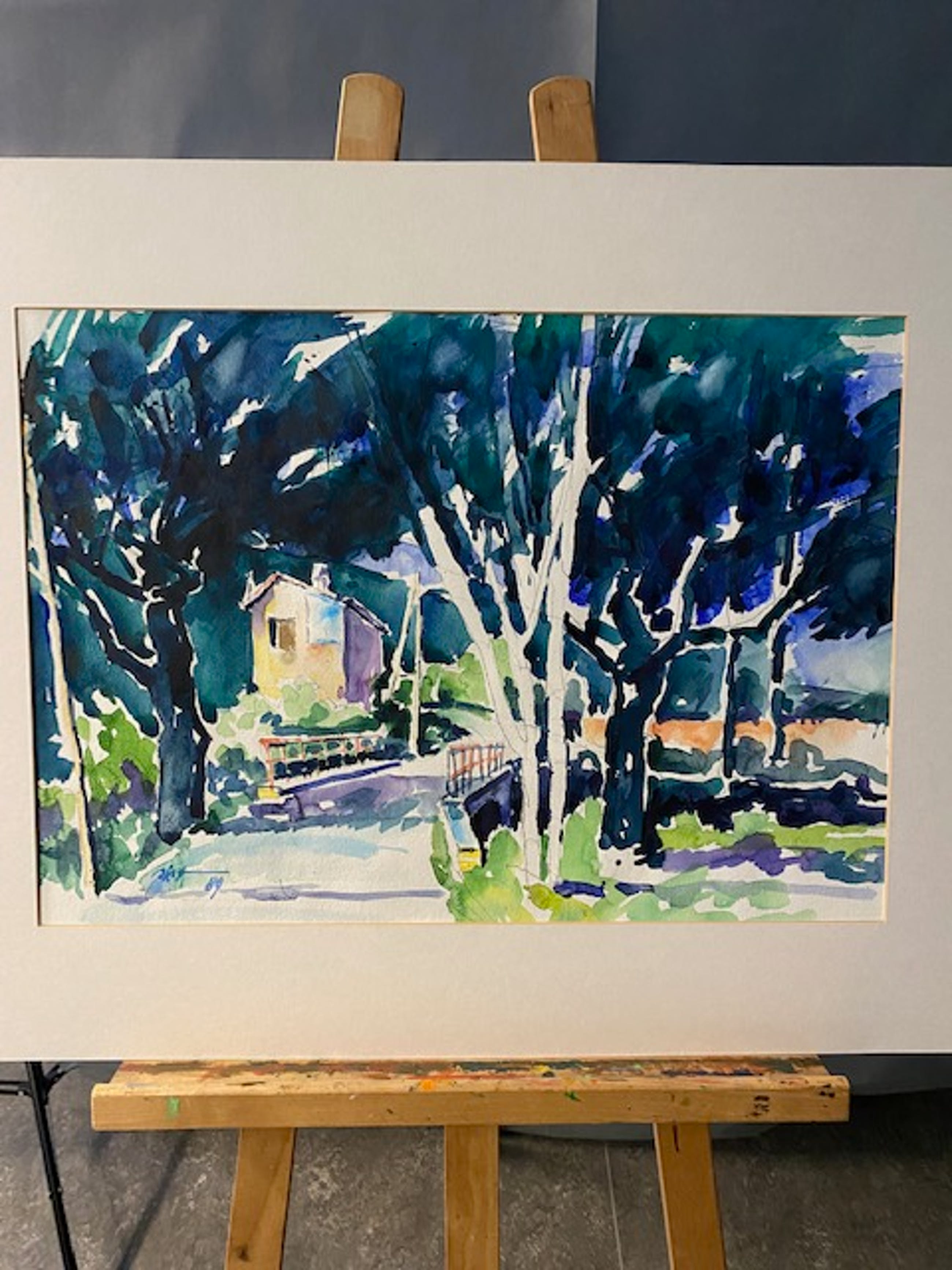 het aquarel is gemaakt in de Lot en de nieuwe eigenaar krijgt er een prachtig geïllustreerd boek over Piet zijn leven en werk bij