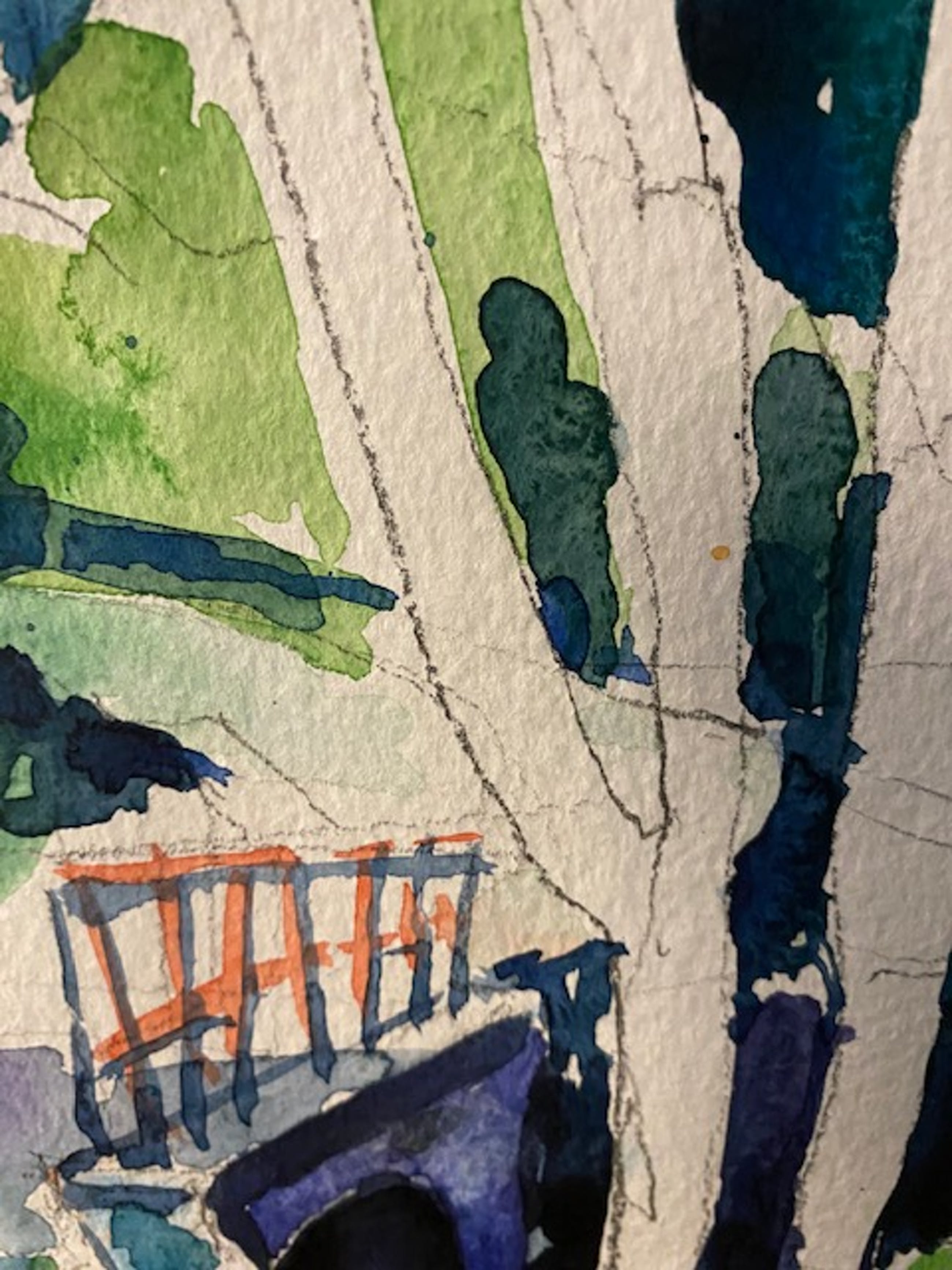het aquarel genaamd "le petit pont" (48/64 ) zit in een passepartout (70/85) en is nauwelijks in aanraking geweest met daglicht