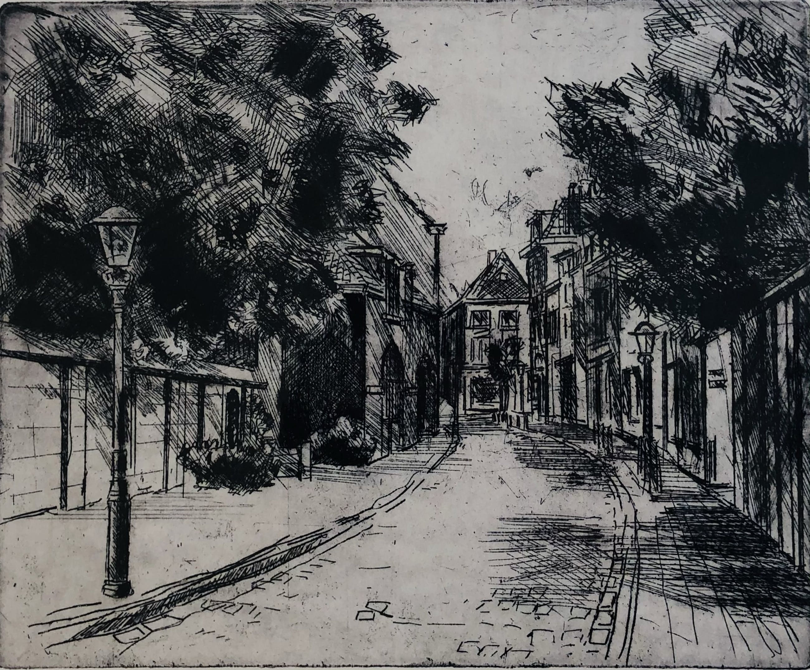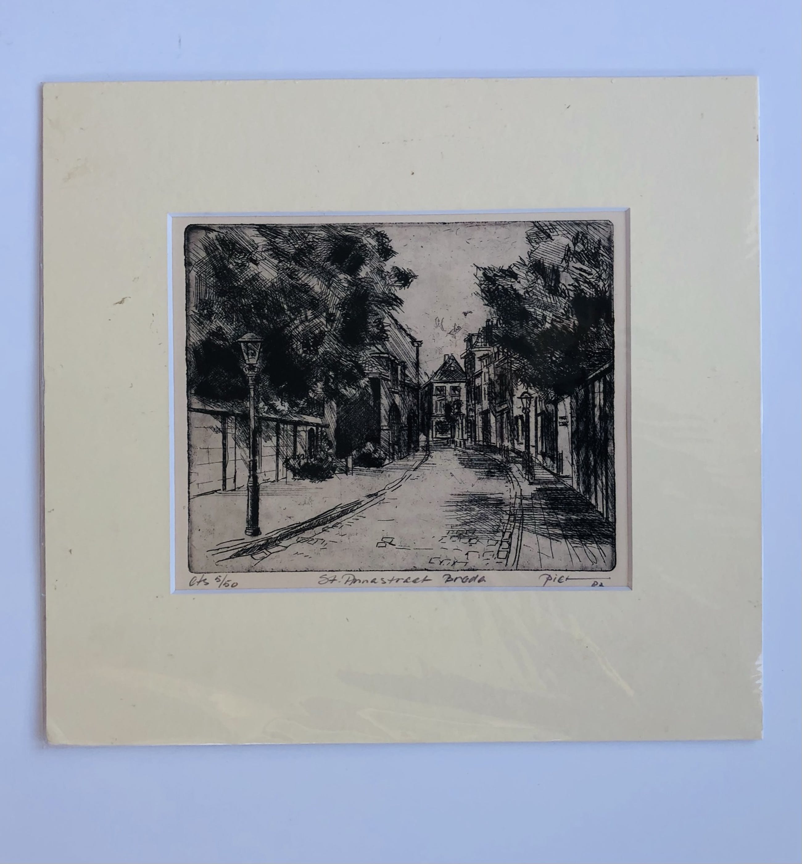 Mooie ets van Piet Snoeren. Genummerd en gesigneerd. met passe partout 30 x 33 cm.