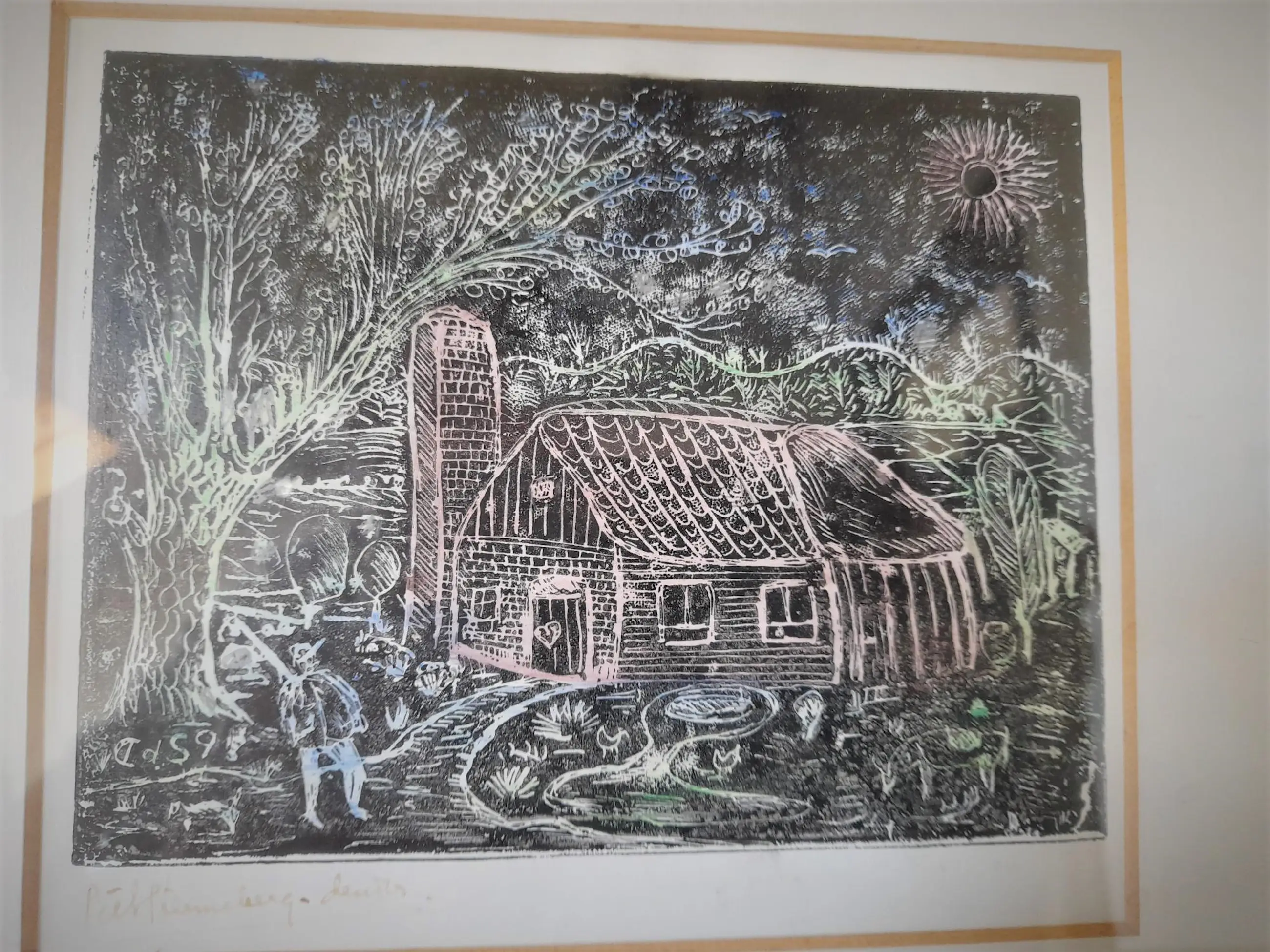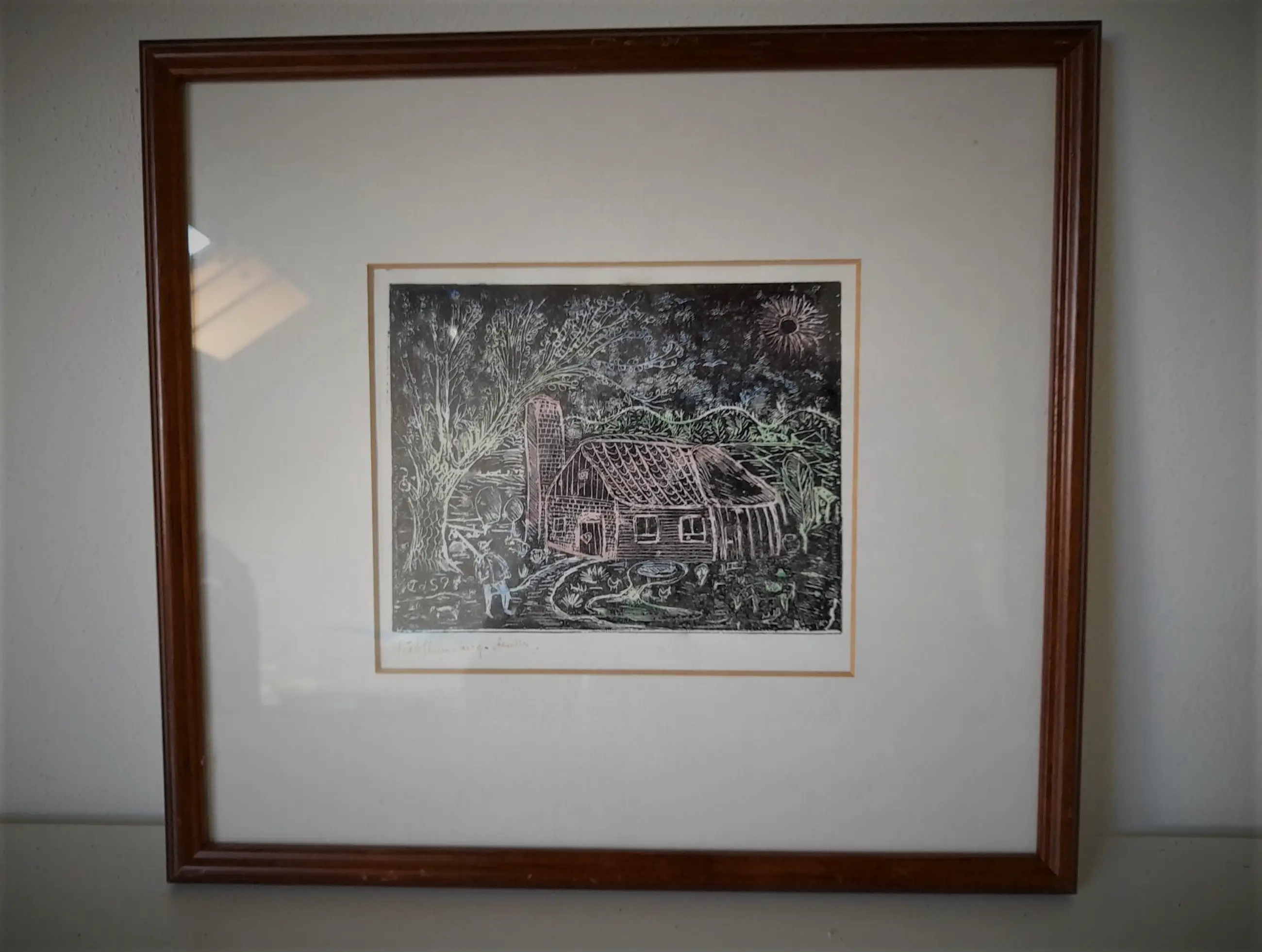 Litho 4: boerderij afmeting litho: l x h 14 x 11 afmeting lijst: l x h 29 x 26 cm
