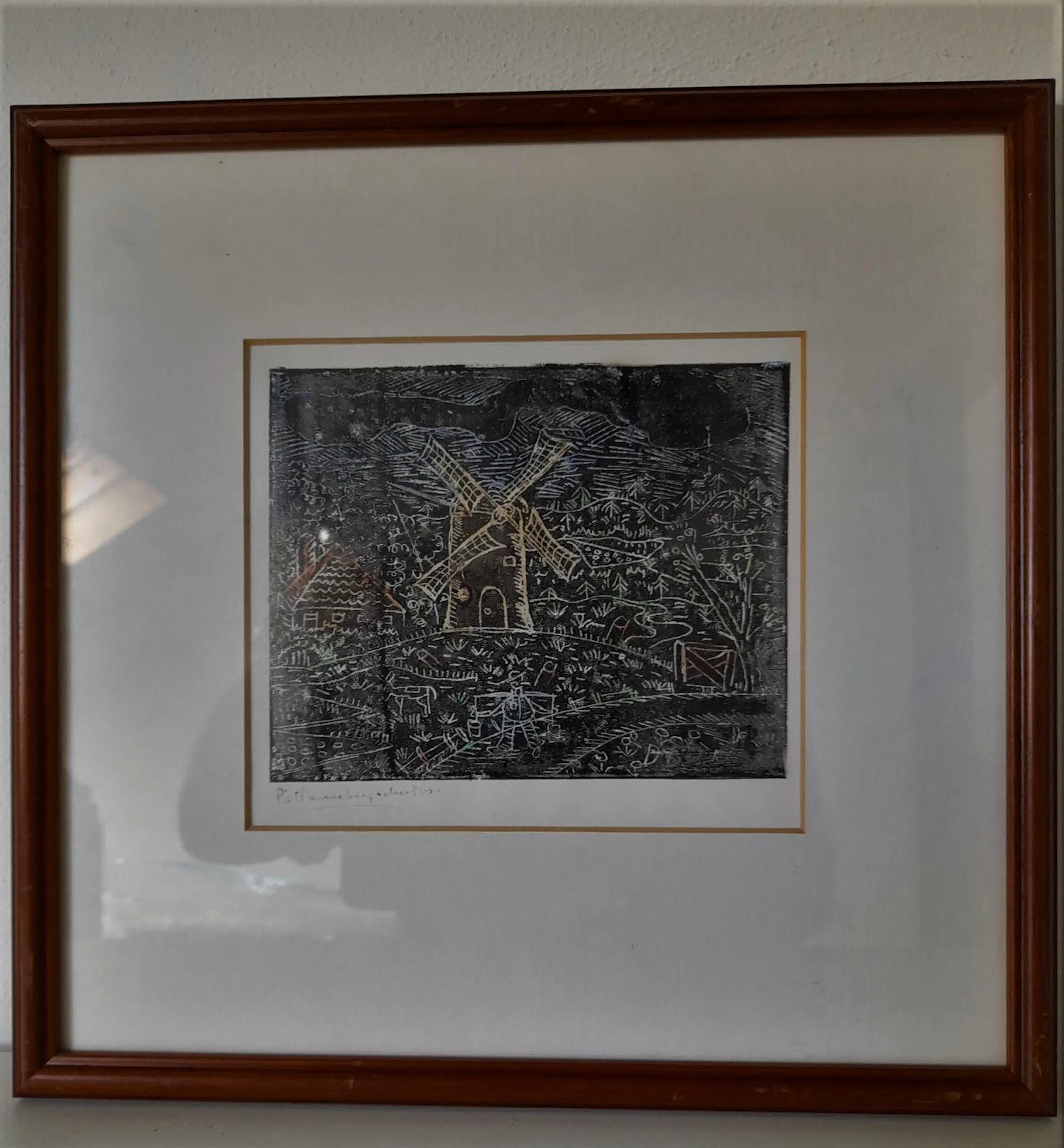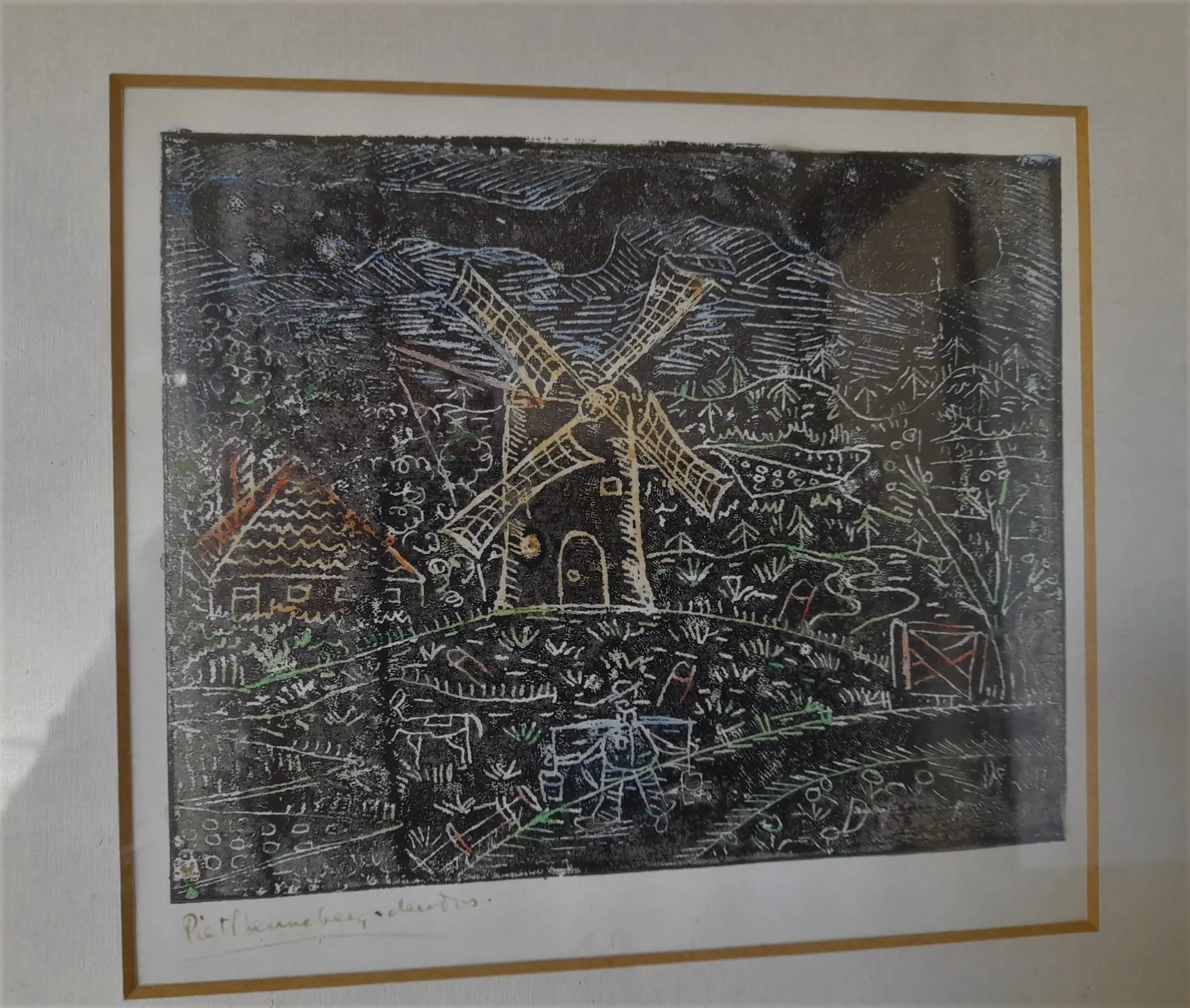 Litho 6: molen afmeting litho: 15 x 12 afmeting lijst: l x h 20 x 29 cm