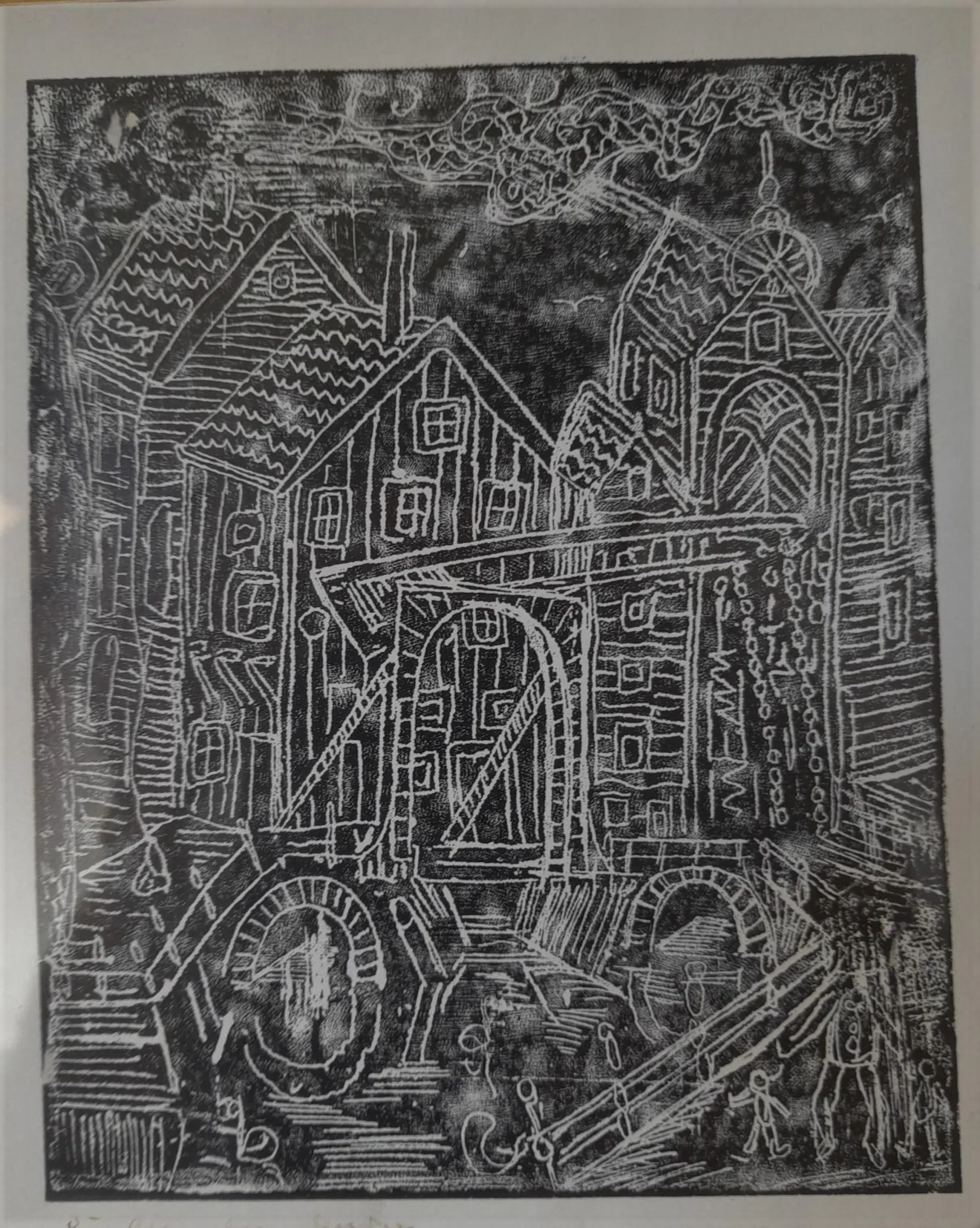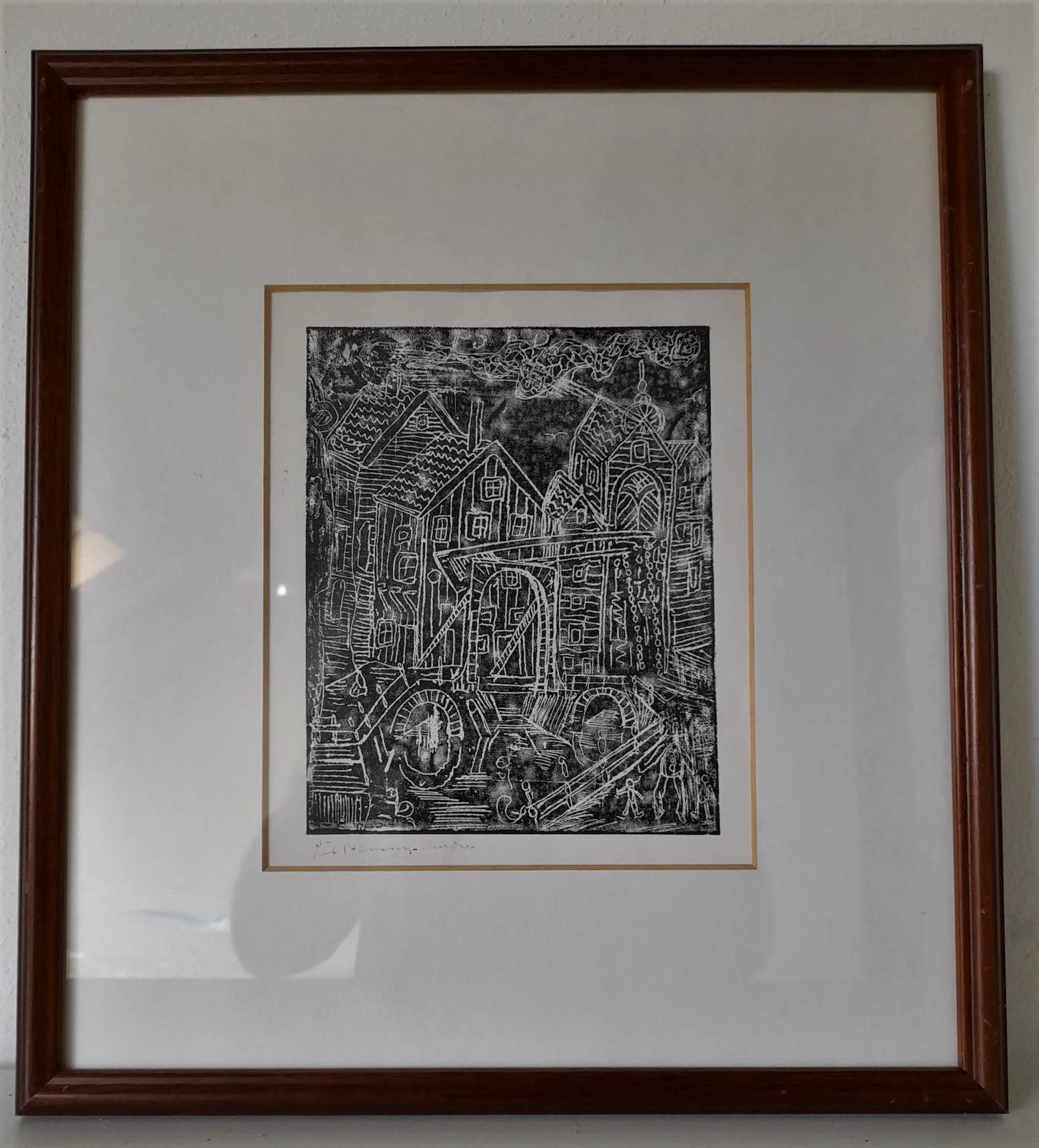 Litho 5: dorpsgezicht afmeting liho: 12 x 15 afmeting lijst: l x h 28 x 31 cm