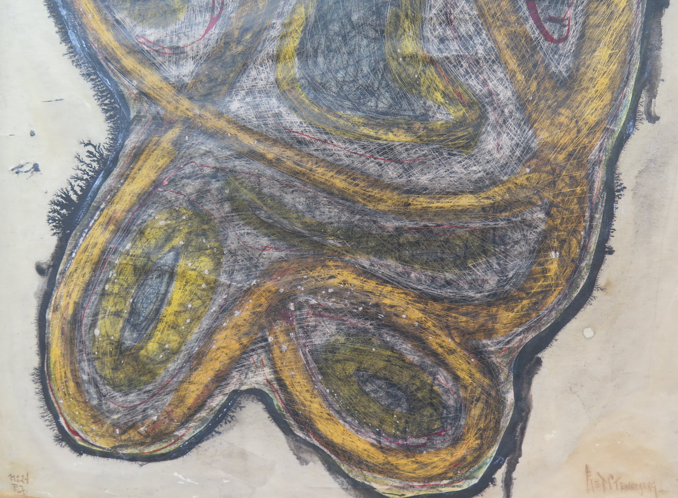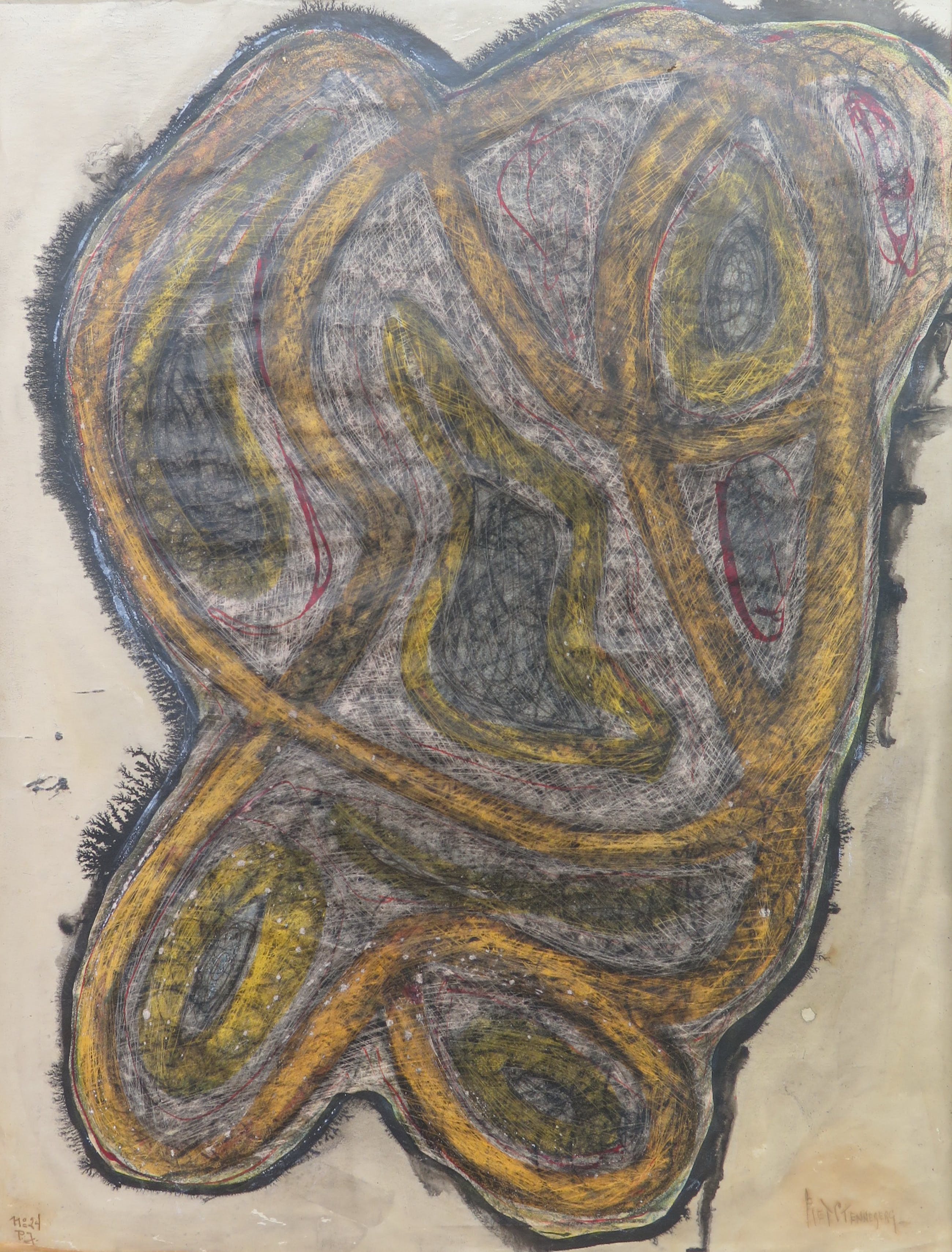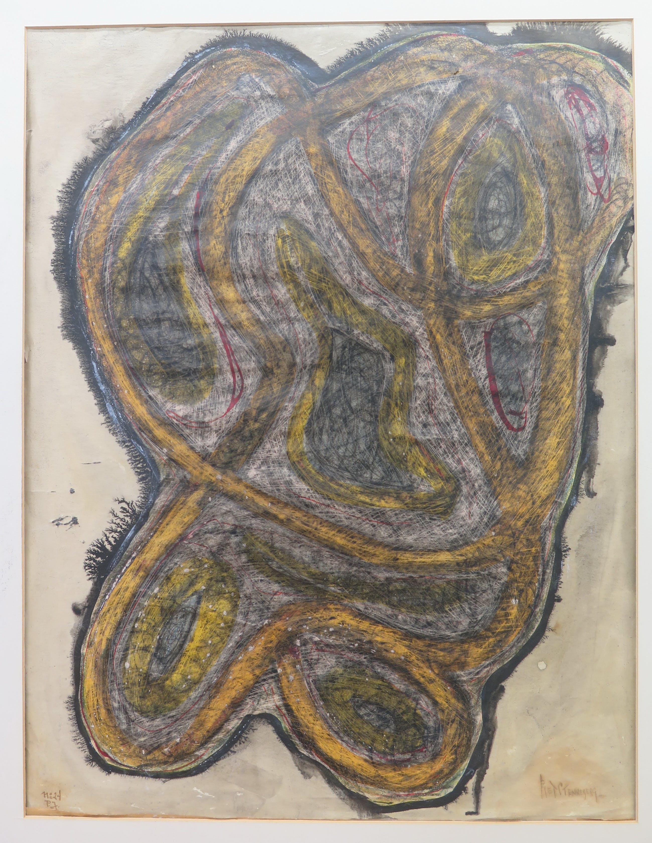 Zeldzaam werk van deze interessante kunstenaar die in het Stedelijk Museum heeft geëxposeerd met onder andere Karel Appel, Eugene Brands en Corneille. Gesigneerd en gedateerd 1950!