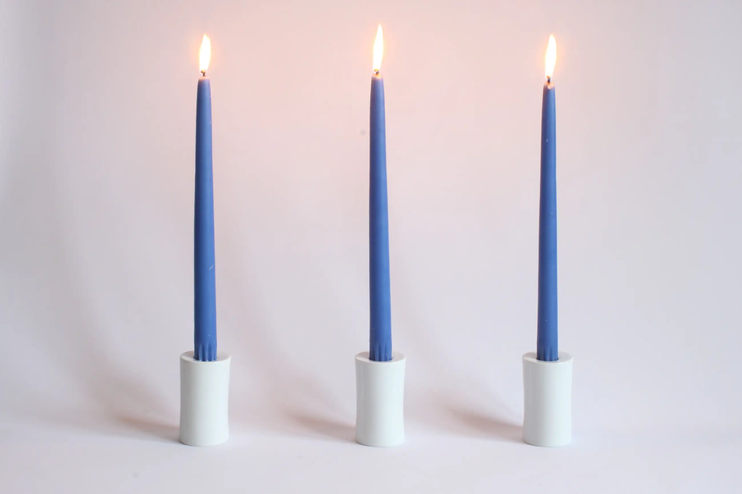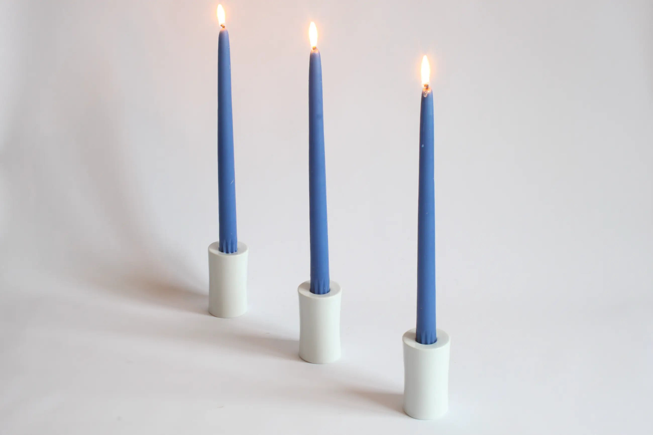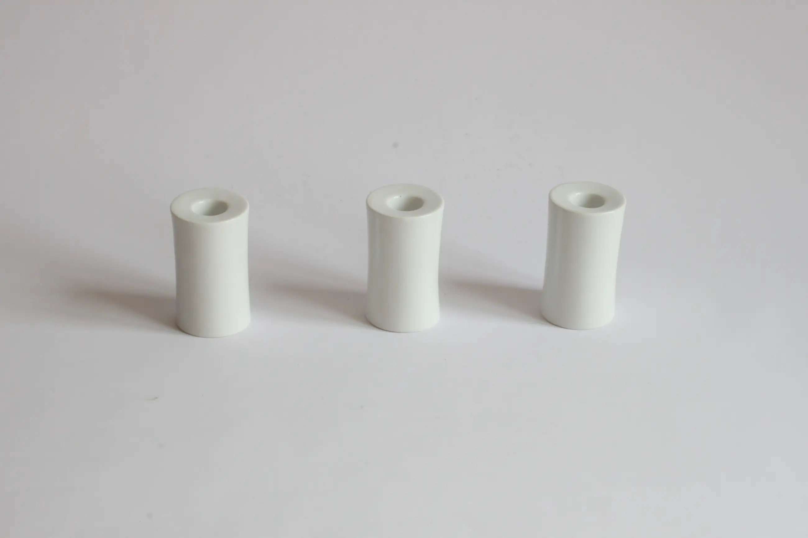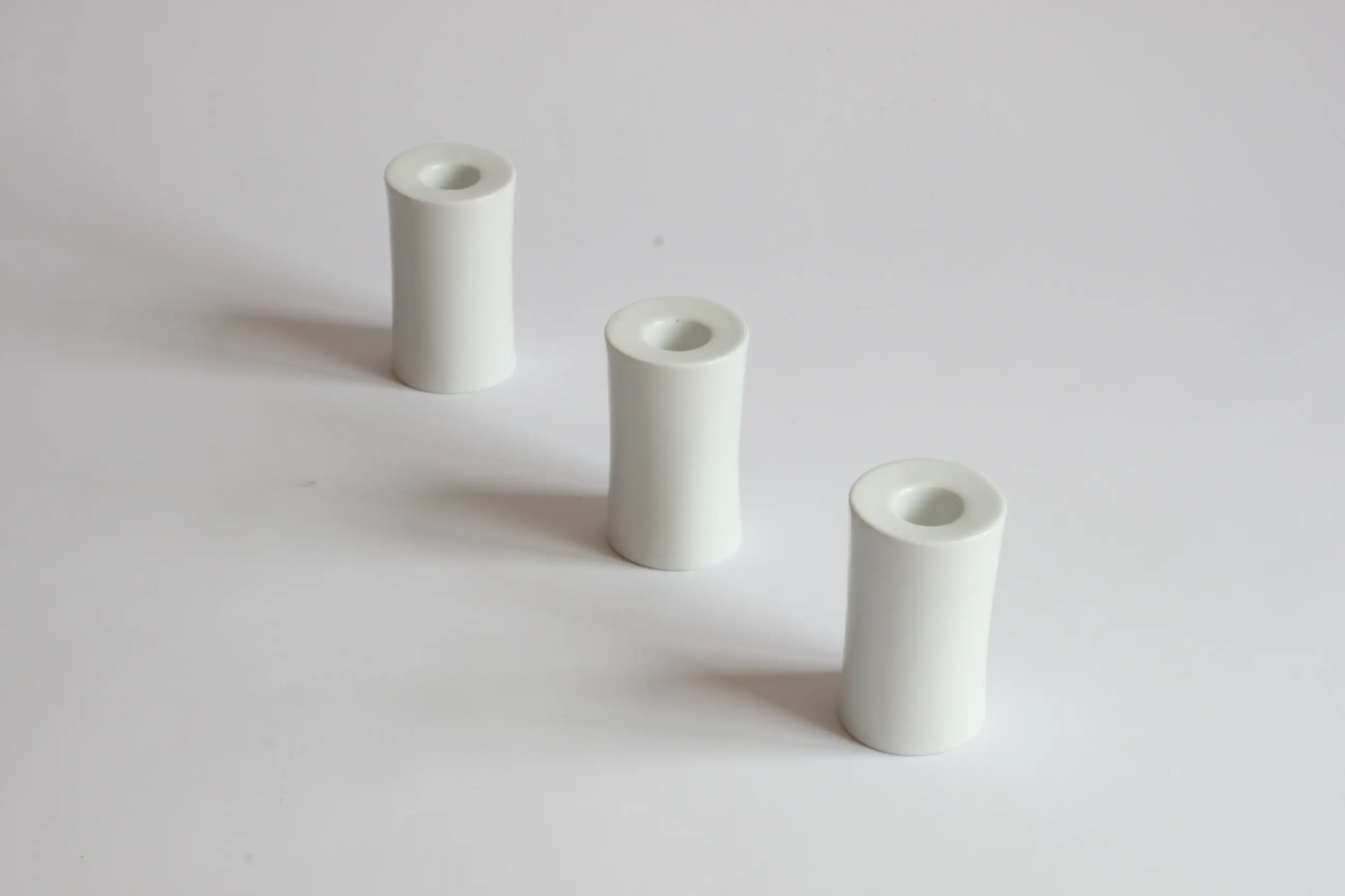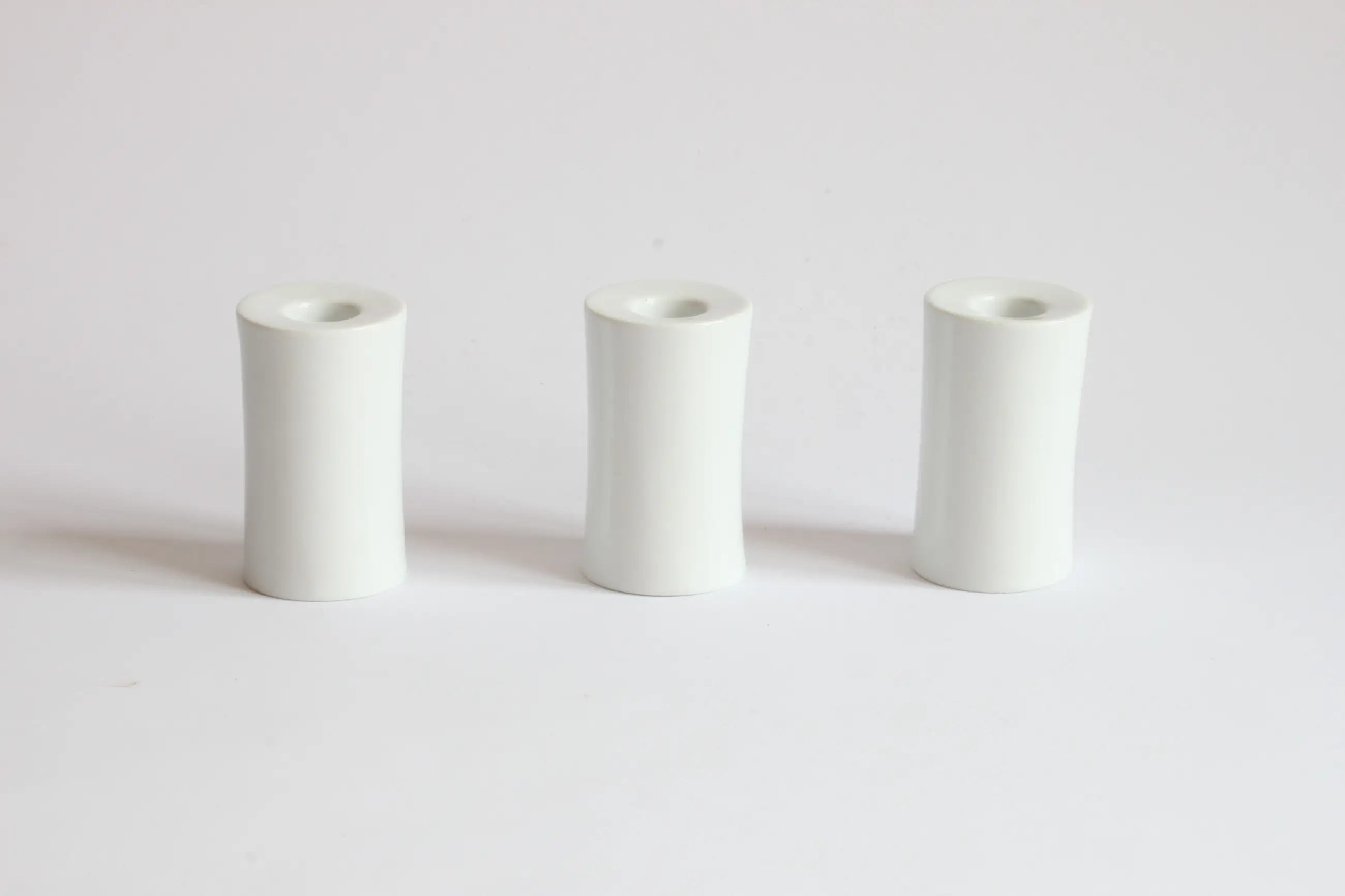 Porseleinen kandelaars van Pieter Stockmans voor Berghoff, set van drie. Allen gemarkeerd onderaan: Berghoff design by Pieter stockmans Belgium.