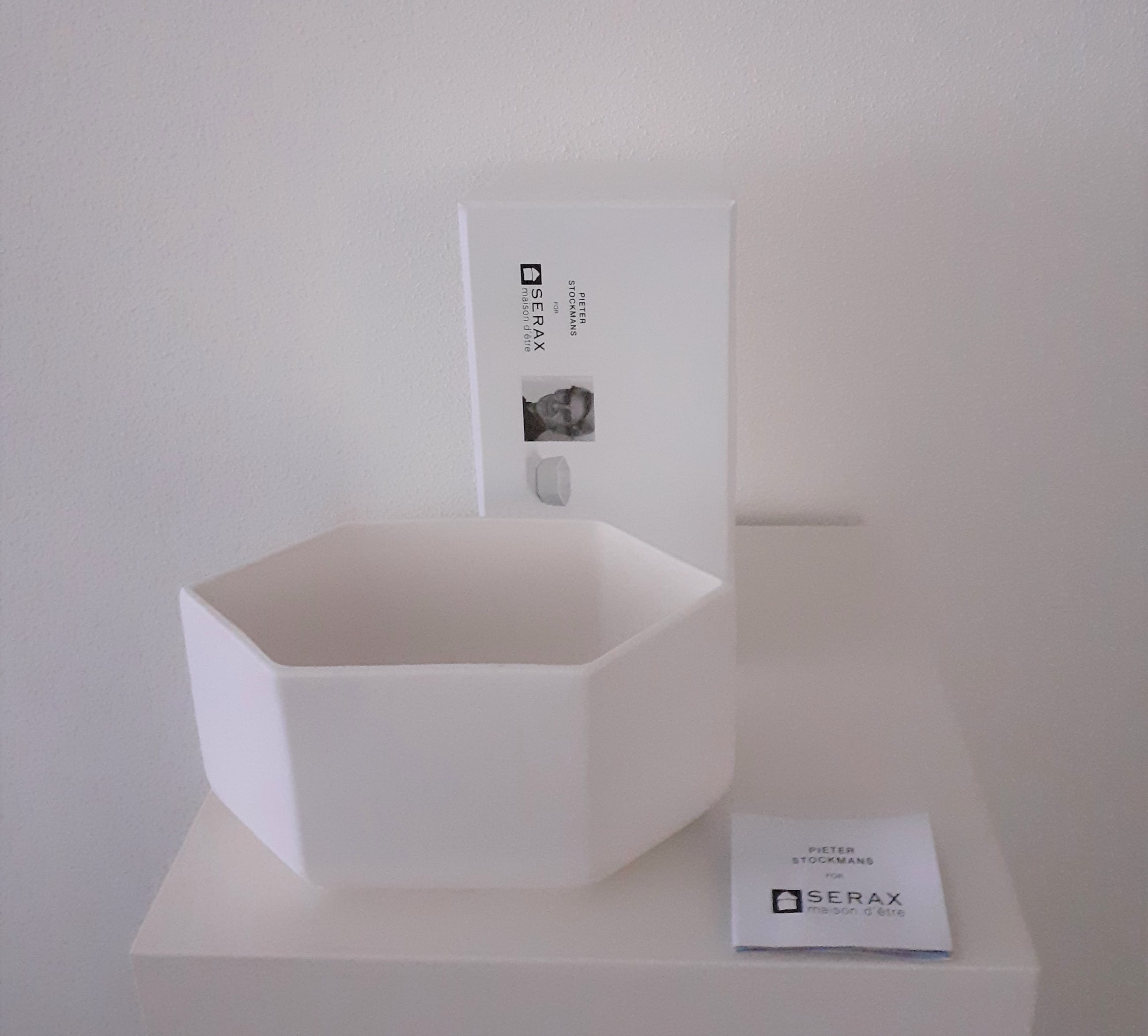 Mooie zeshoekige kom vervaardigd uit romig wit Bone China porselein Nieuwstaat + originele verpakking, items zijn niet meer in de handel Pieter Stockmans is één van de meest gerenommeerde hedendaagse kunstenaars en Vlaams cultuurambassadeur. Zijn hele leven staat in het teken van porselein.