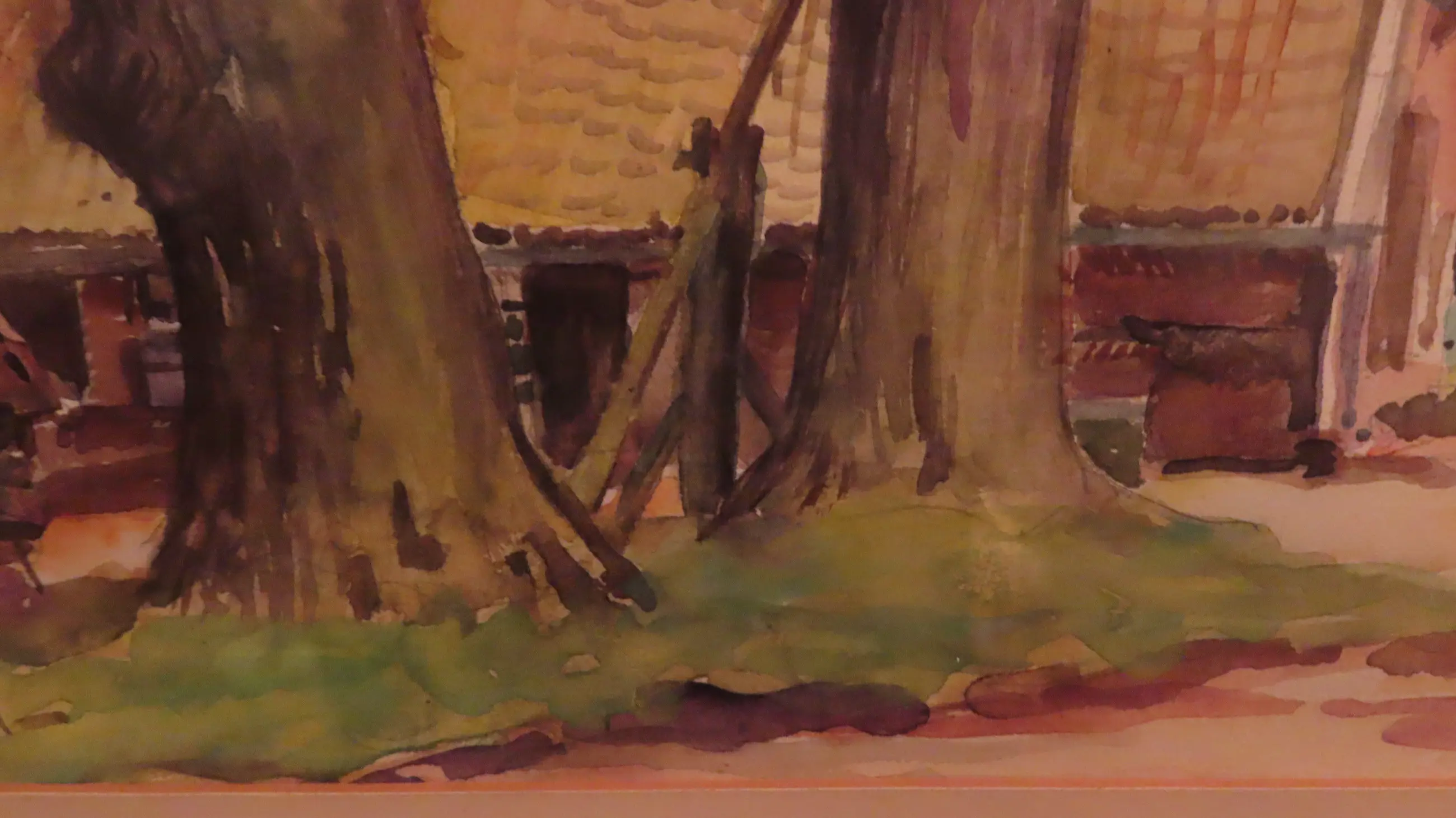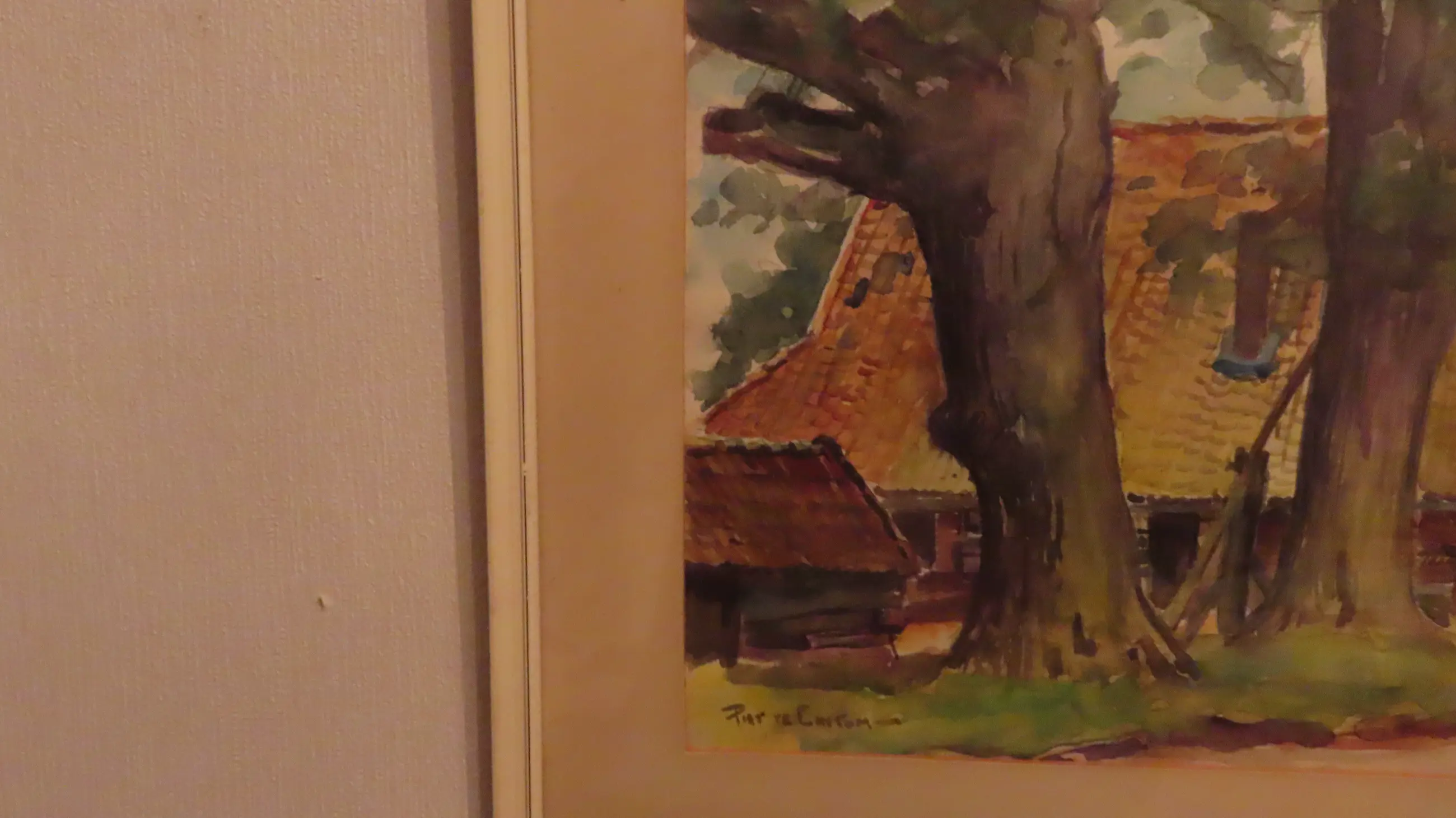 Het schilderij zit in een passpartout achter glas en ziet er samen met de lijst goed uit !