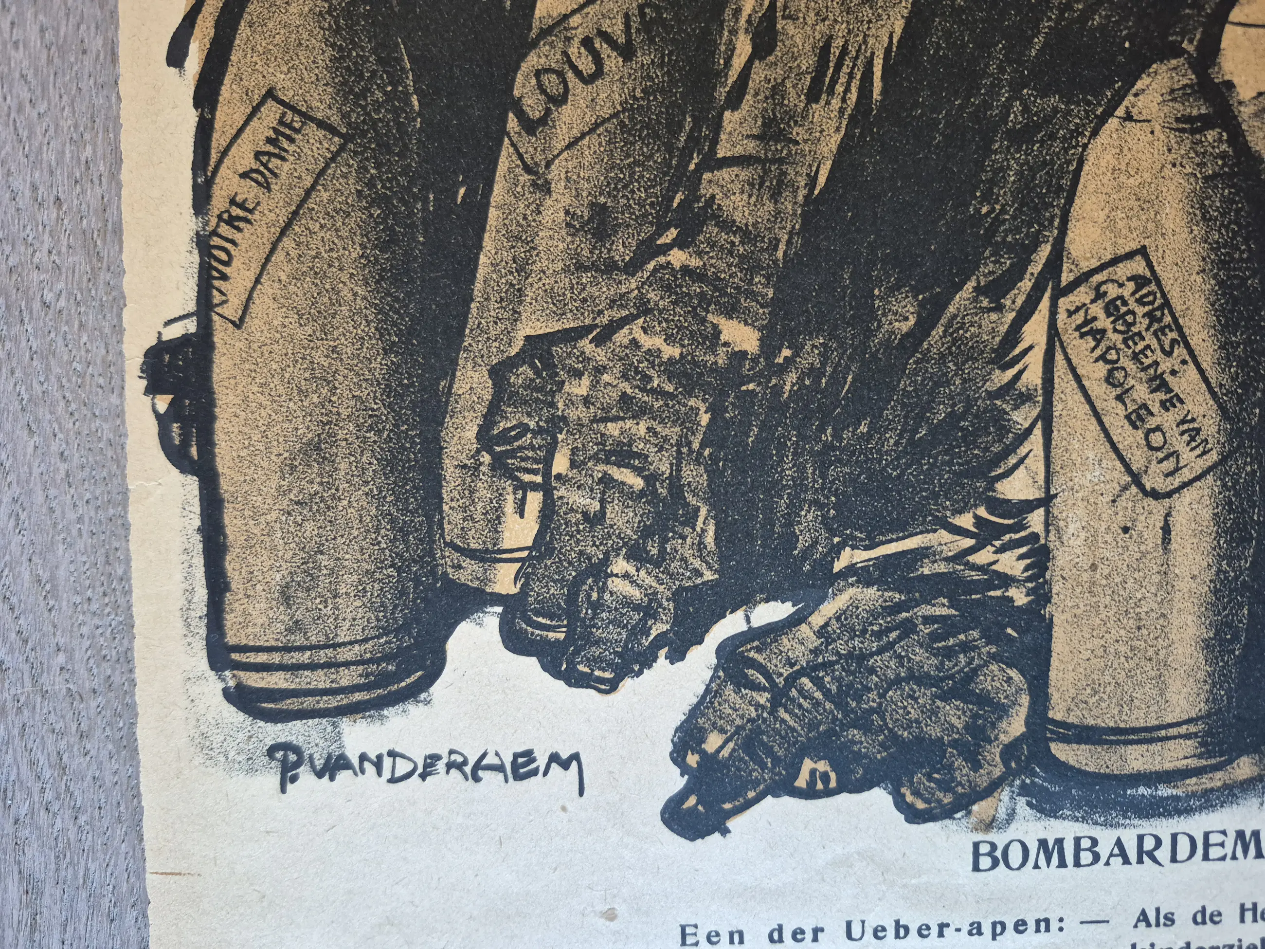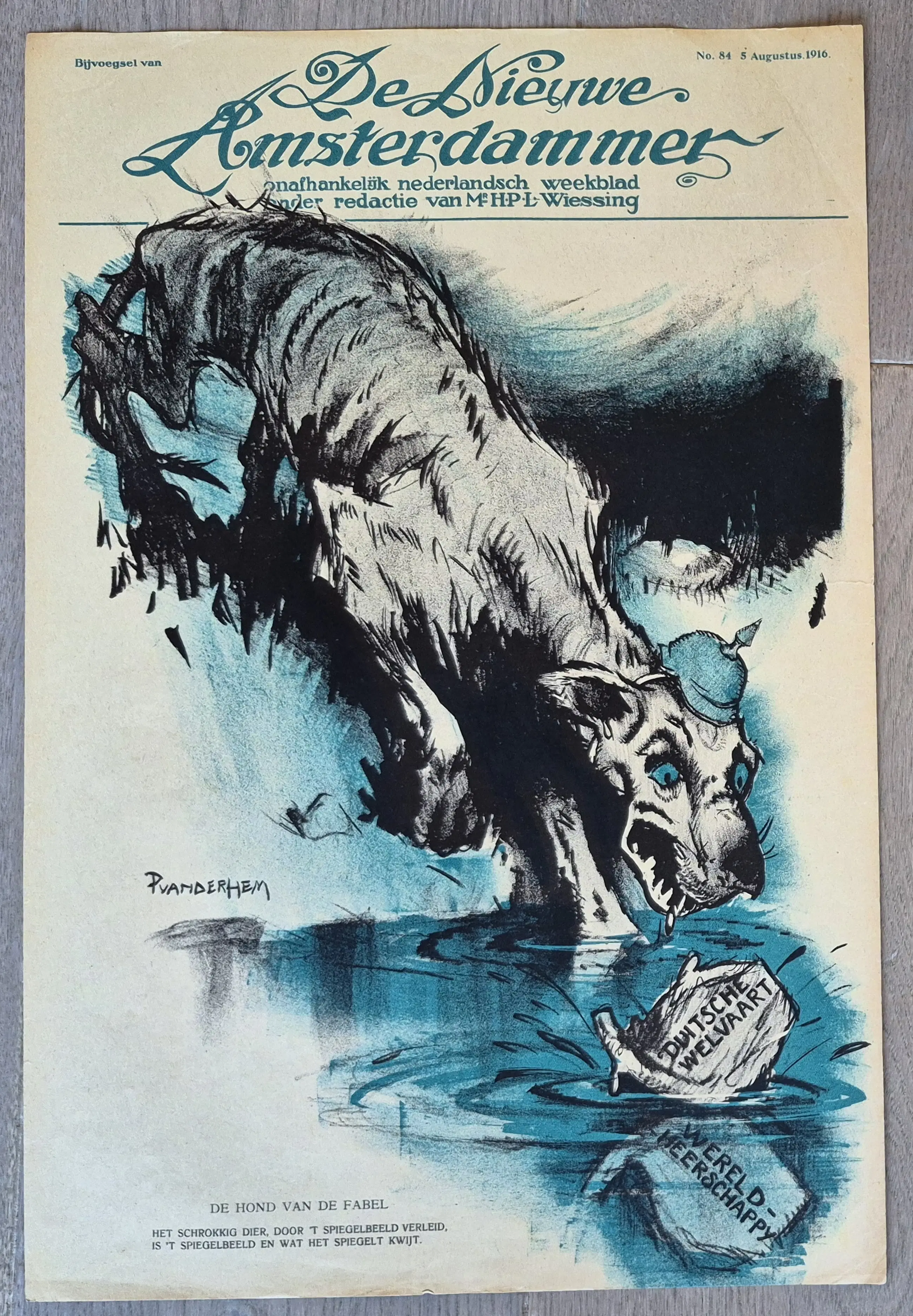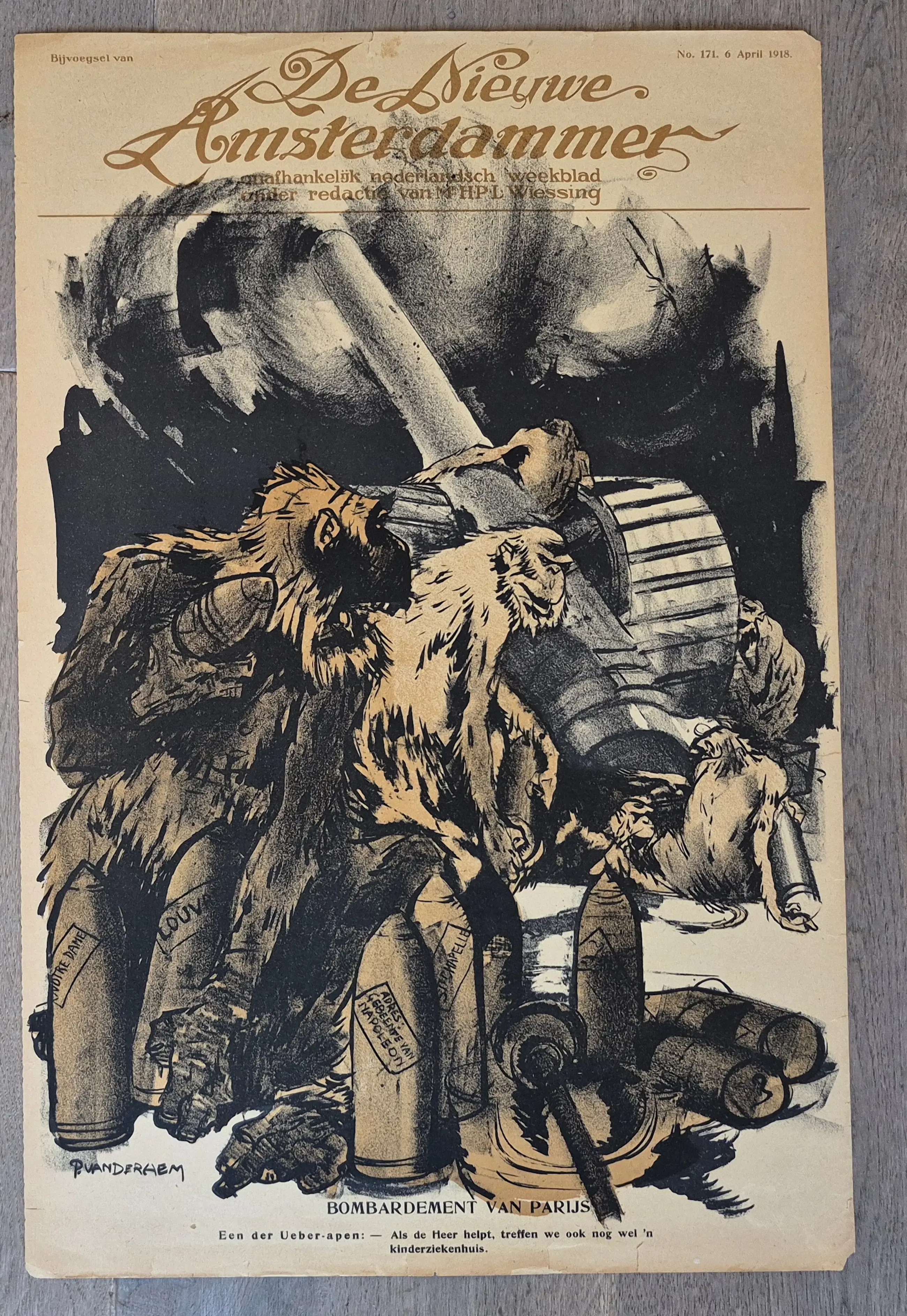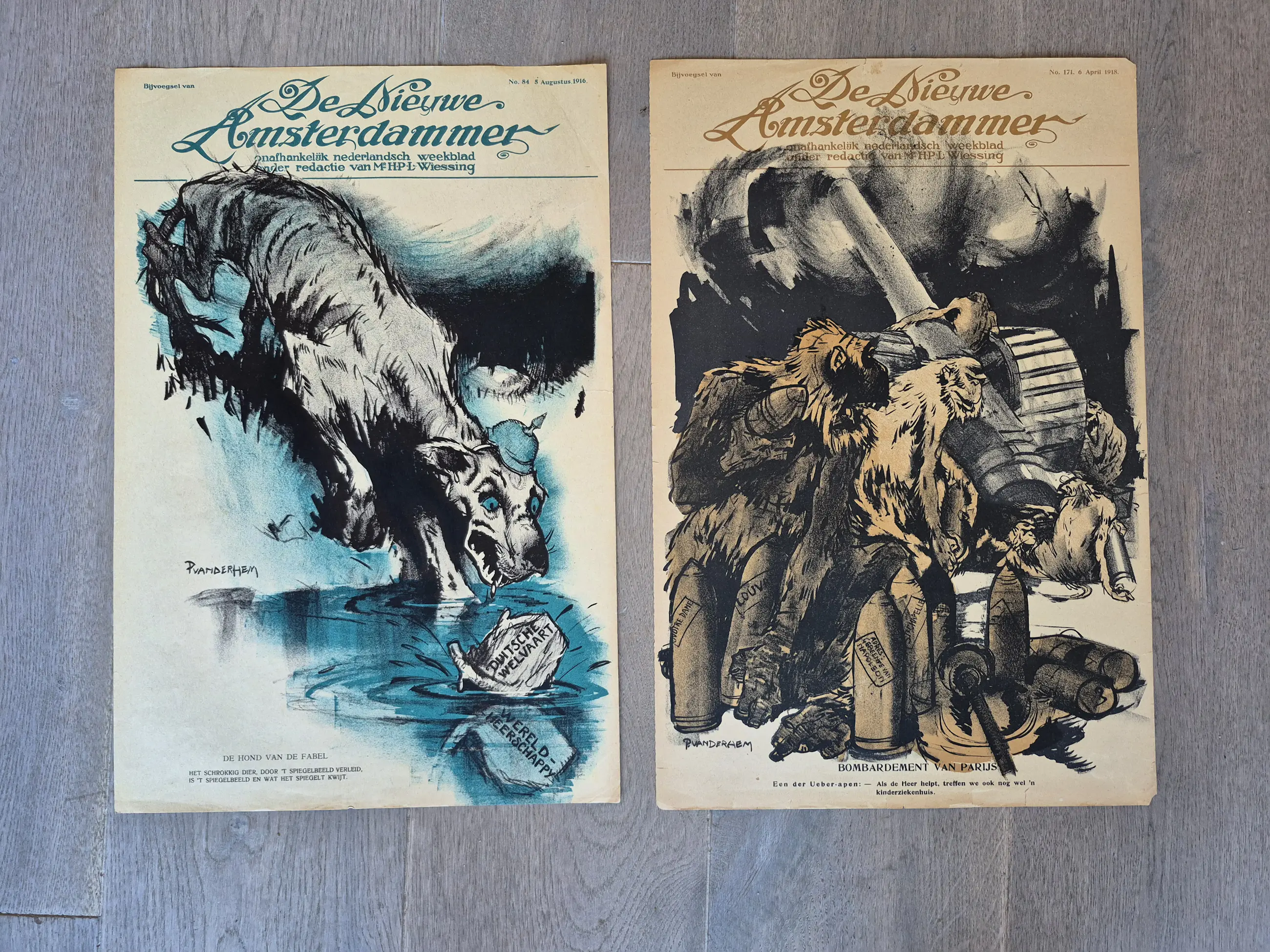2 politieke spotprenten uitgegeven als bijvoegsels bij De Nieuwe Amsterdammer en gemaakt door Piet van der Hem. Achterkant blanco. Elke week stond een grote spotprent op de voorpagina van de bijlage. Allen gesigneerd in de druk. Foto's zijn onderdeel van de omschrijving.