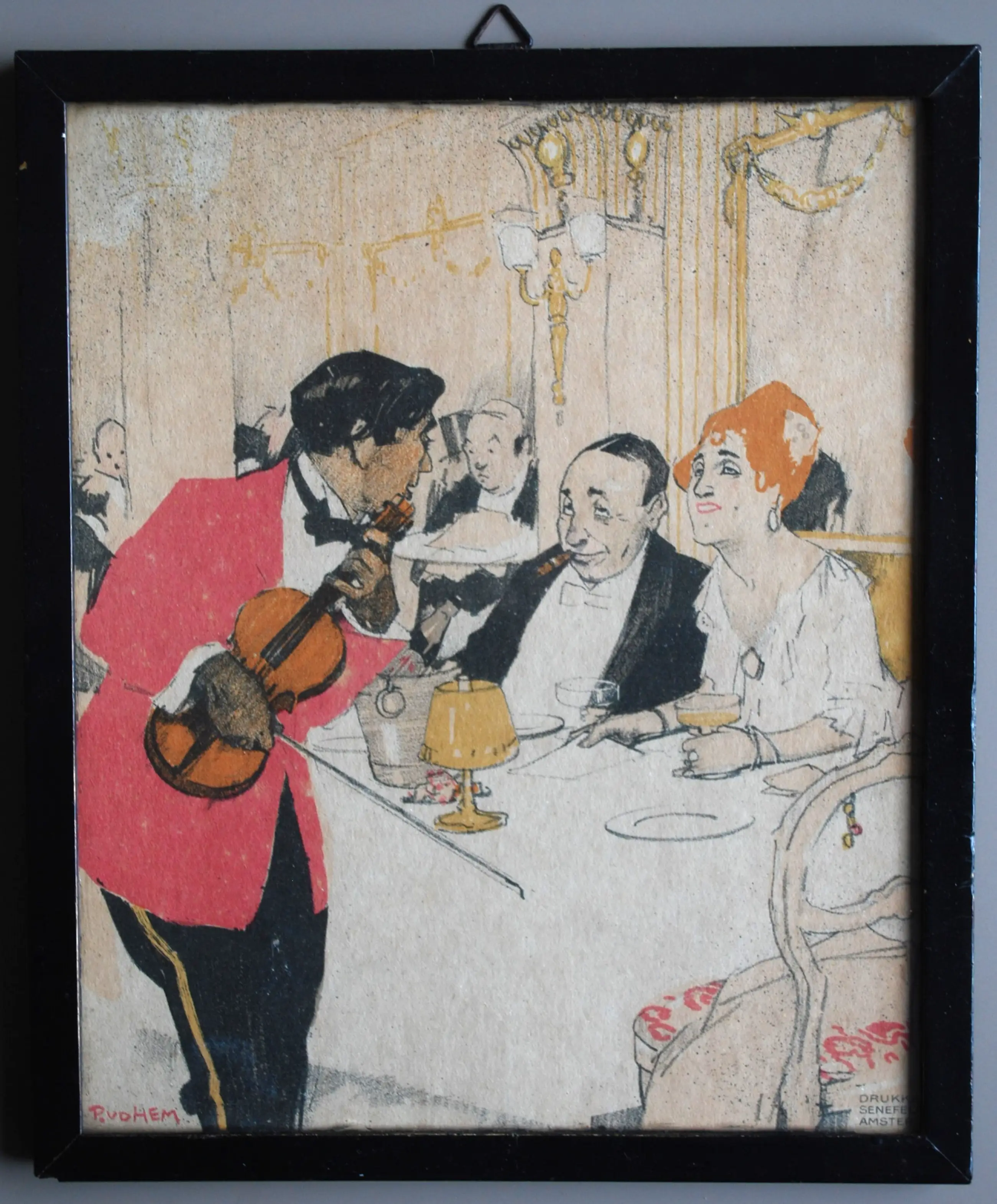 De litho meet ca 21x17.5 cm. Waarschijnlijk uit 1915. Geplaatst in de originele houten lijst achter glas. Klaar om op te hangen.